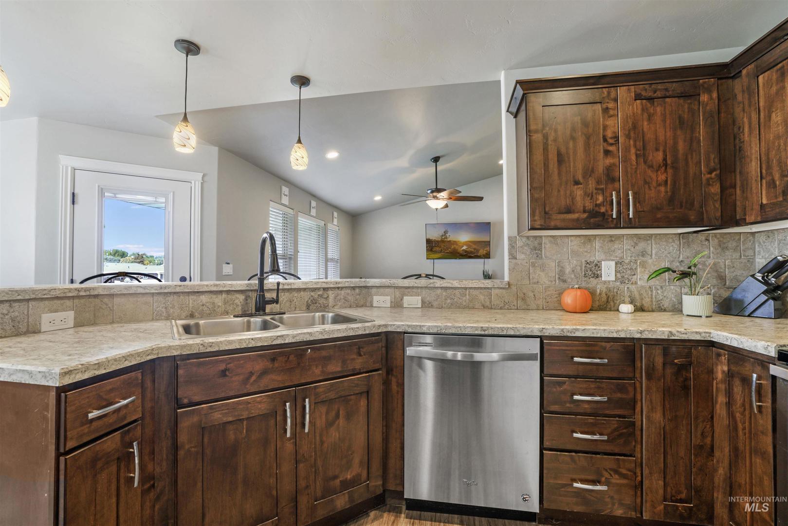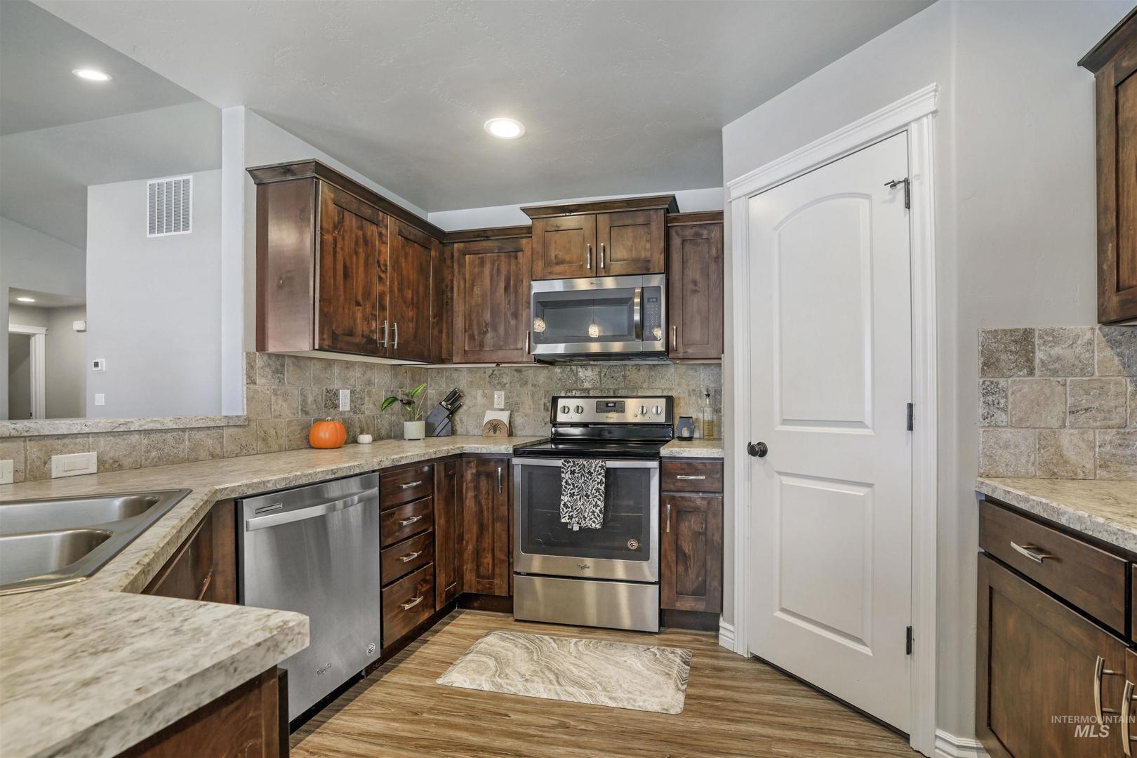 This well-kept single-level home offers 3 spacious bedrooms, 2 full bathrooms, and 1,496 sq ft of comfortable living space. Built in 2017, it features an open-concept layout with vaulted ceilings, LVP flooring, and a modern kitchen with stainless steel appliances, solid-surface counters, and an island. The primary suite includes a walk-in closet and dual-sink bathroom. Enjoy a fully fenced backyard, covered patio, and attached 2-car garage. Located in a quiet neighborhood close to schools, parks, and shopping. Move-in ready and low maintenance—don’t miss this one!