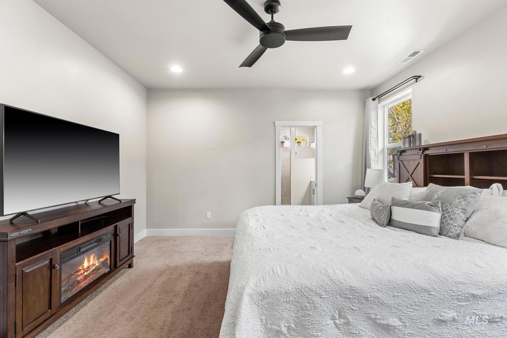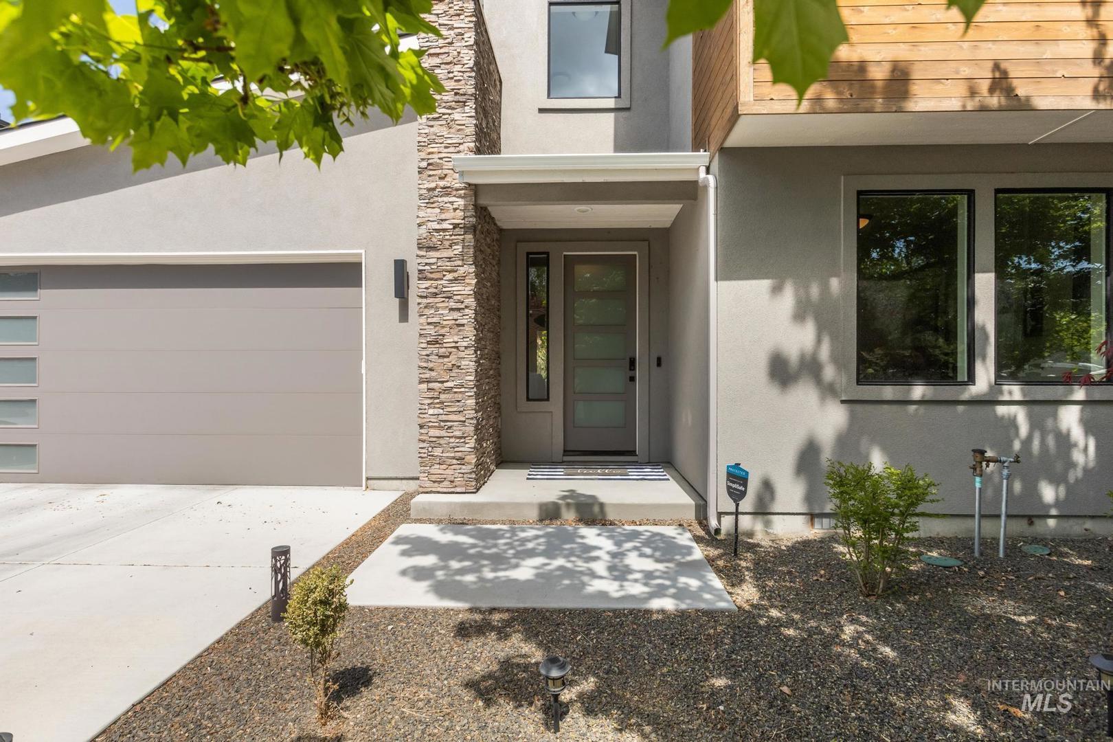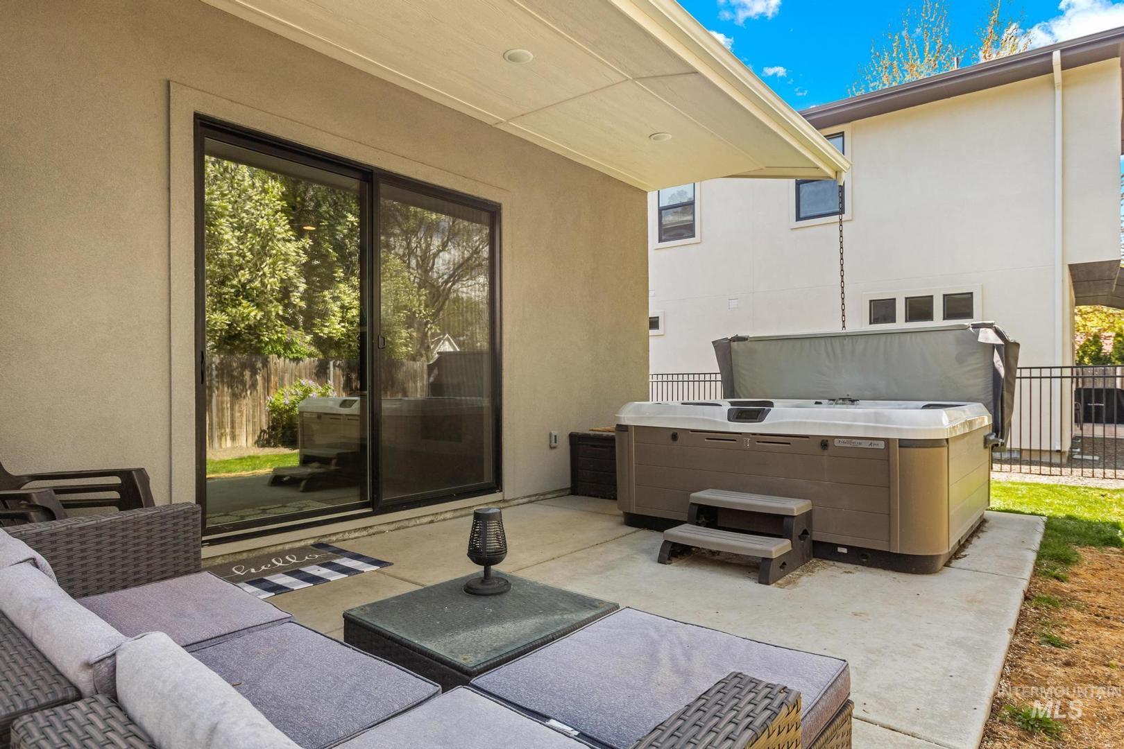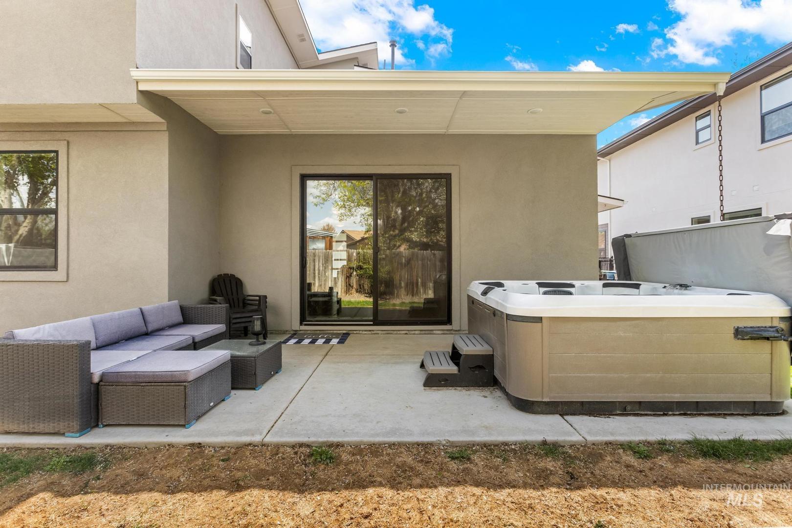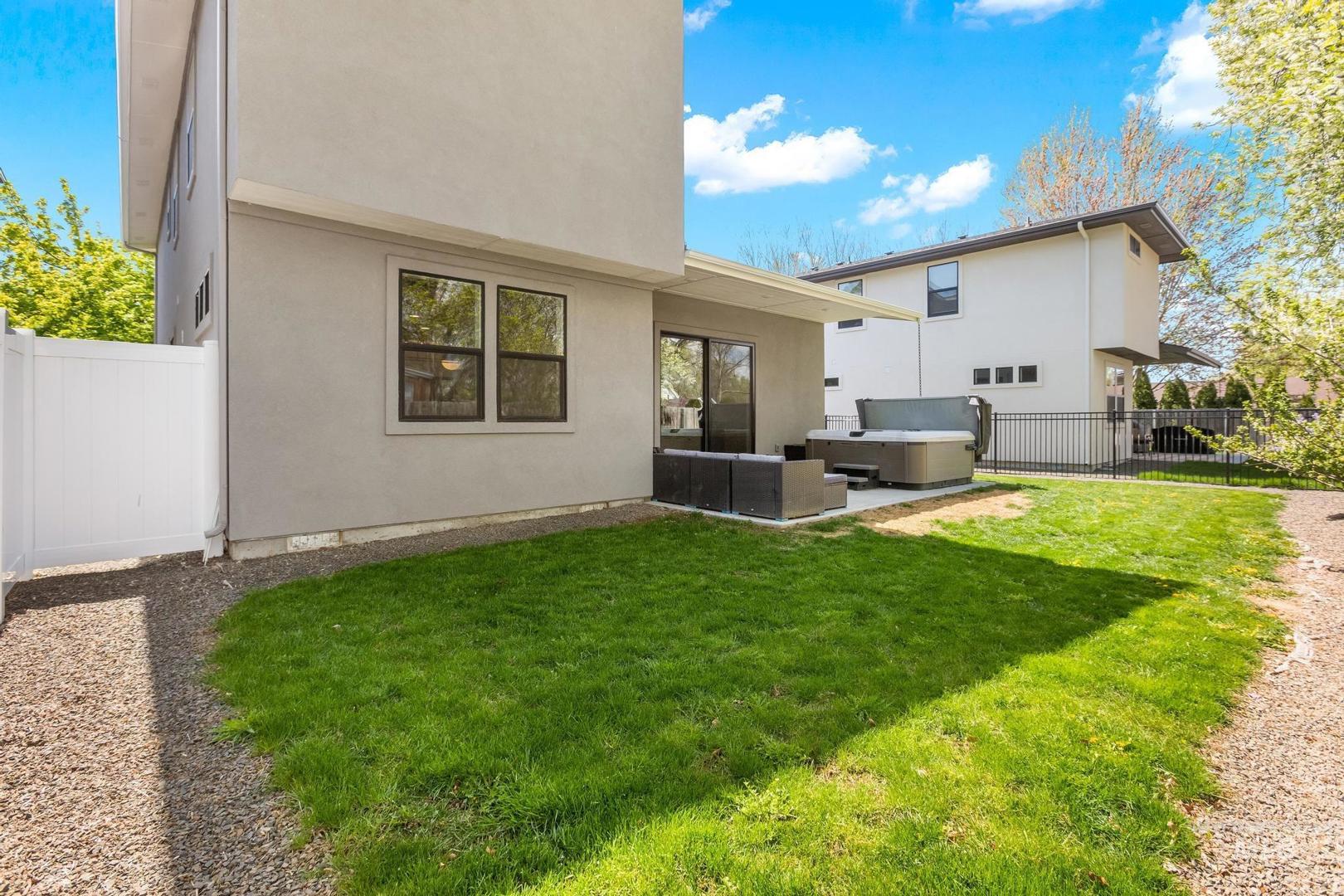Set back from the street along a long private driveway, this stunning West Boise home offers enhanced peace and quiet, while delivering a stylish, functional layout designed for modern living. The open-concept main level features soaring ceilings, a beautifully appointed kitchen with a quartz island, stainless steel appliances, and a butler’s pantry—perfect for extra prep space and hidden storage. The living area is both warm and sophisticated, with a striking floor-to-ceiling fireplace and custom built-in cabinets. An 8ft sliding glass door brings in abundant natural light and opens to a private backyard with a covered patio and hot tub—ideal for relaxing or entertaining year-round. Upstairs, you’ll find three spacious bedrooms, two full baths, and a versatile loft space perfect for work or play. Additional upgrades include dual-zone HVAC, an insulated garage, and 220V EV charging. With no HOA and a prime location, this home offers the perfect balance of comfort, style, and convenience.