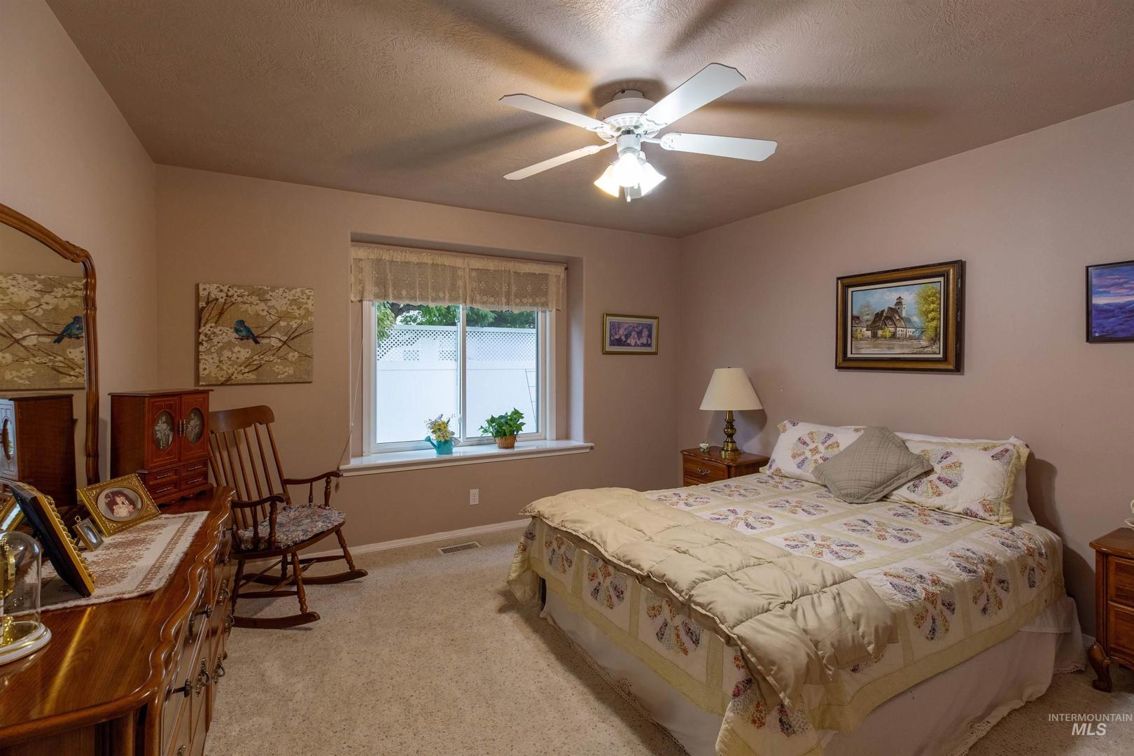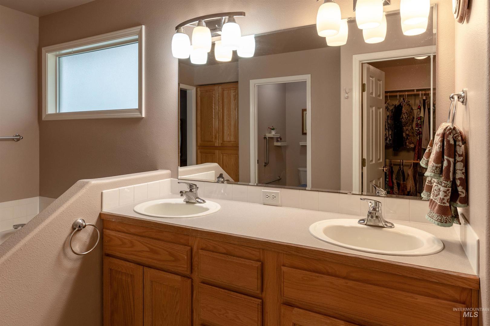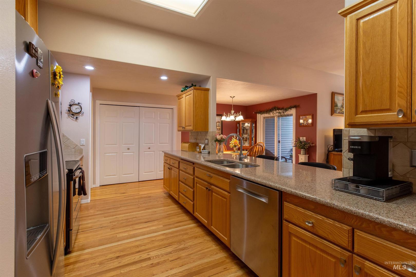 Oh so cute and well maintained townhome in popular 55 & Up community La Playa! Large kitchen with quartz countertops, stainless appliances including the refrigerator, pantry, full tile backsplash, tons of cabinetry, breakfast bar & barstools. Breakfast nook opens to patio. Oak hardwood throughout entry & kitchen. Living Rm with cozy gas fireplace and automatic blinds. Split bedroom plan with primary bedroom boasting window seat, ceiling fan, jetted tub & water closet with grab bars, dual vanities, step-in tiled shower and a walk-in closet. Bedroom 3 w/window seat. Laundry room with storage cabinetry, folding area/countertop. Washer/dryer included. Window blinds throughout too! Extra deep, finished garage with storage hooks. Nice light throughout with the covered back patio & North facing windows. Fully fenced backyard with clematis, peonies and included lawn care! La Playa offers monthly gatherings and clubhouse use for community owners use.