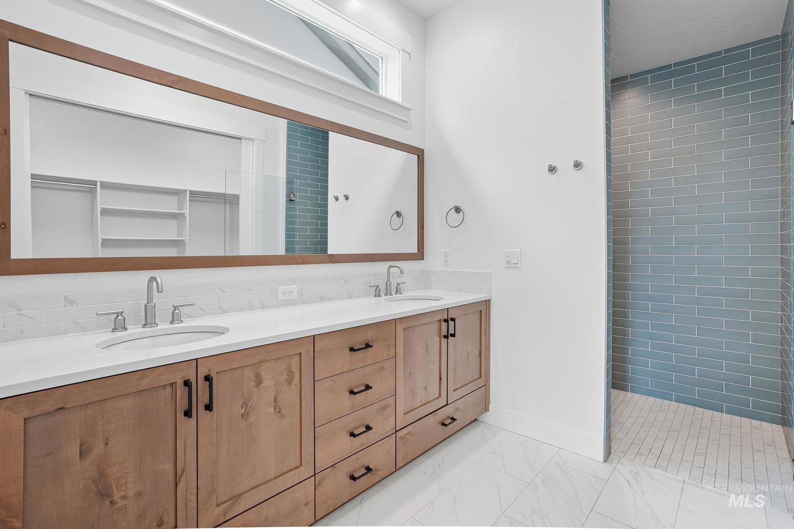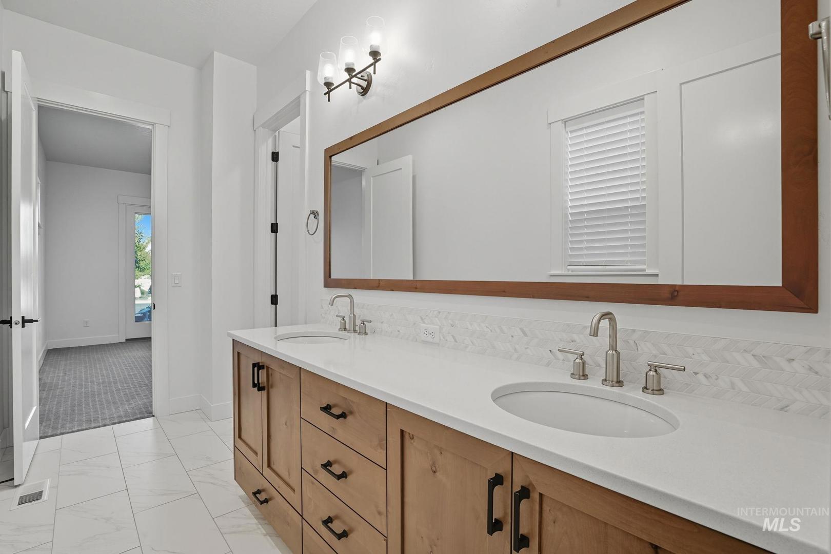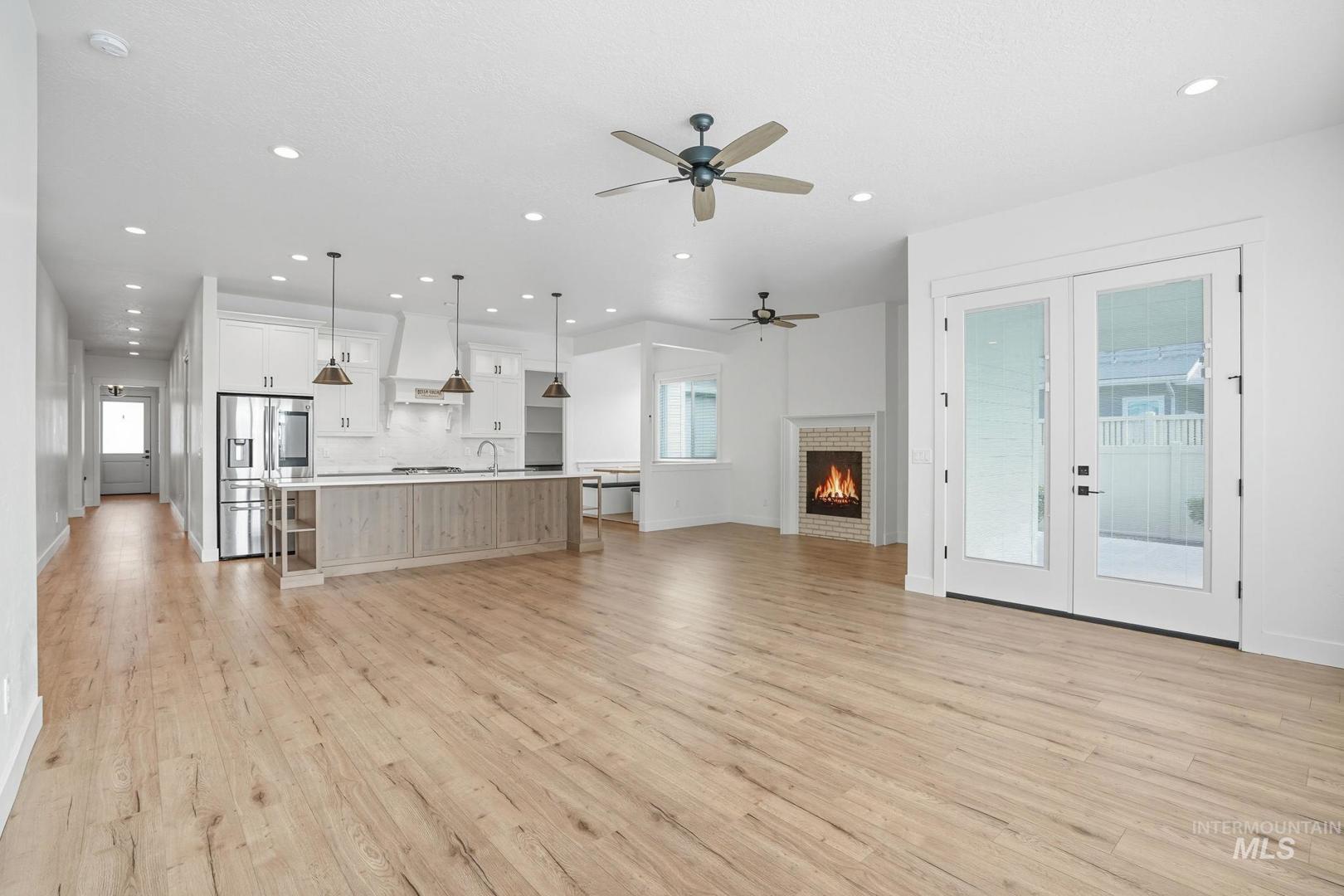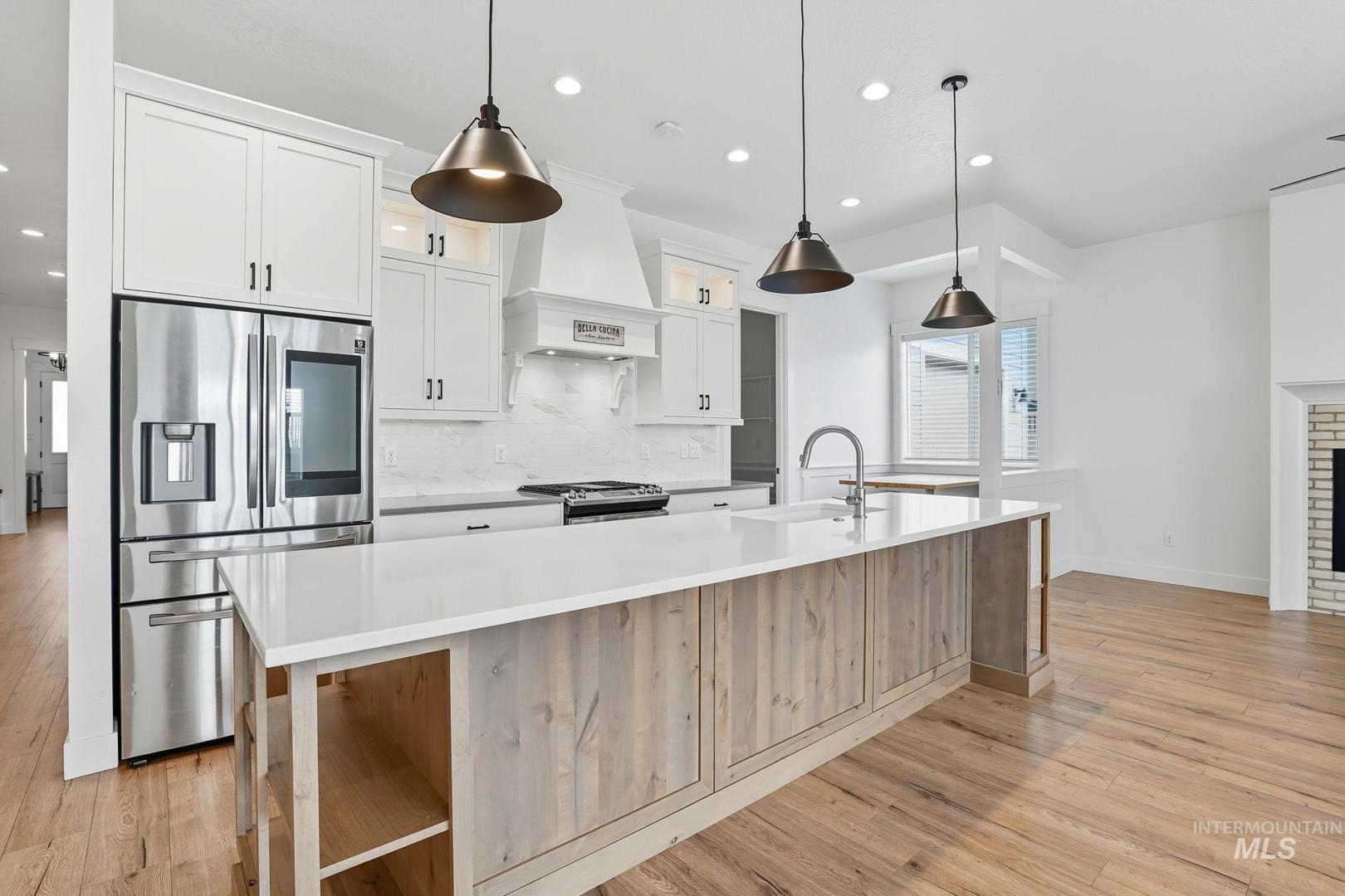 Must see custom built single level home w/finished 4 Car Garage w/37` RV/Boat Bay w/pull-thru door to extended 33` pad, Polyurea coated flooring (stronger than epoxy), 220v, LED lighting, overhead storage, fully insulated, H2O softener/filtration & wifi sprinklers & opener! Light & bright split floorplan w/10`ceilings, 8` doors, Jack & Jill bath + 1/2 guest bath, laundry w/sink, mudroom w/bench, entry bench, extensive trim & laminate, high window count, blinds & window treatments, high-end finishes throughout & guest suite (2nd Master) w/full bath & French doors to patio. Open kitchen features, spacious island w/side shelving, quartz counters, ss Bosch & GE appliances, gas oven, full tile backsplash, stunning cabinets w/glass inlays & LED lighting, drop pendant lighting, giant 71sq.ft. walk-in pantry, & raised eating area + formal dining area w/fireplace! Huge living area w/expansive windows. 220 sq.ft. Primary suite w/elegant bathroom which features tile flooring w/seamless entry into huge walk-in floor-ceiling tiled shower w/bench seat, beautiful vanity w/dual sinks & quartz counter, transom window, private commode, floating storage area & massive 15x6 walk-in closet w/dual pocket doors! Low maintenance landscaping, no rear-neighbors, vinyl fencing, full gutters, covered front & rear patios & gas bbq. line. Convenient location, close to shopping, schools, parks & more.