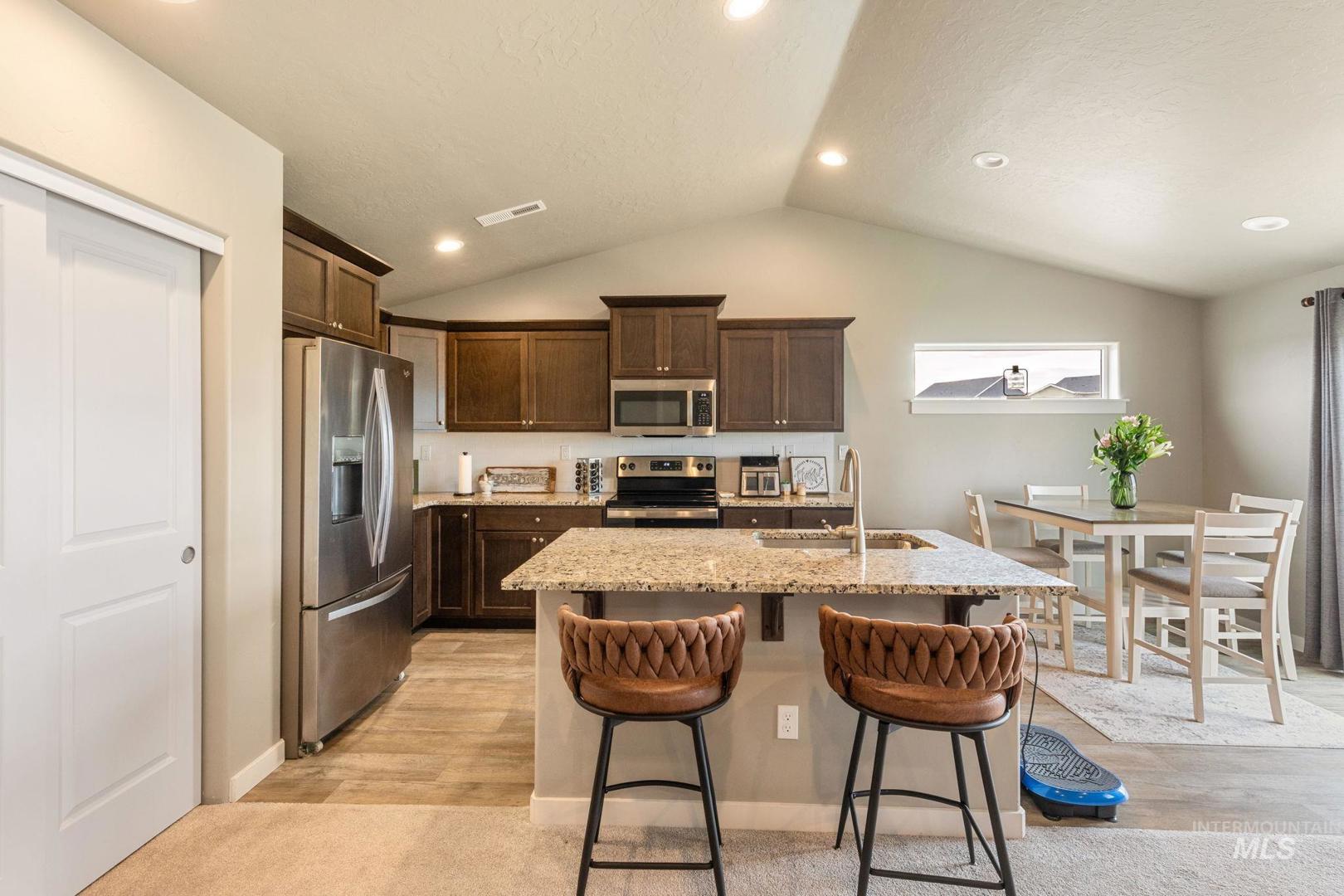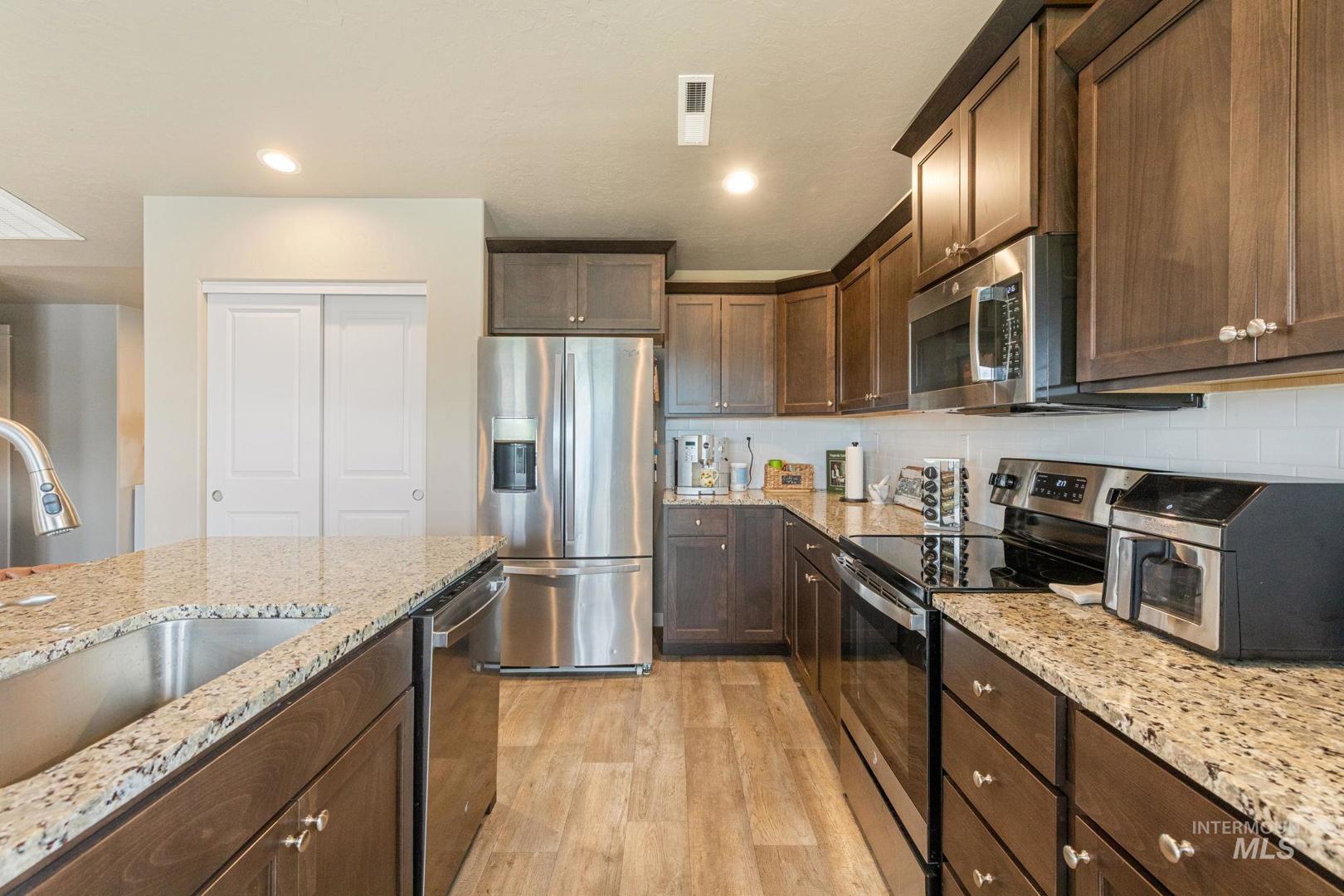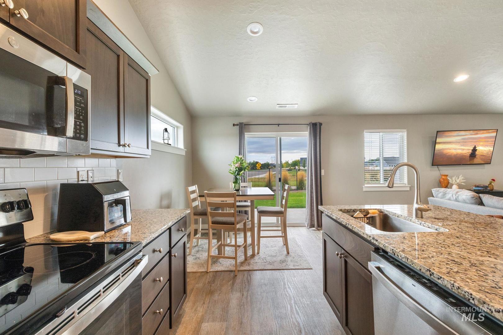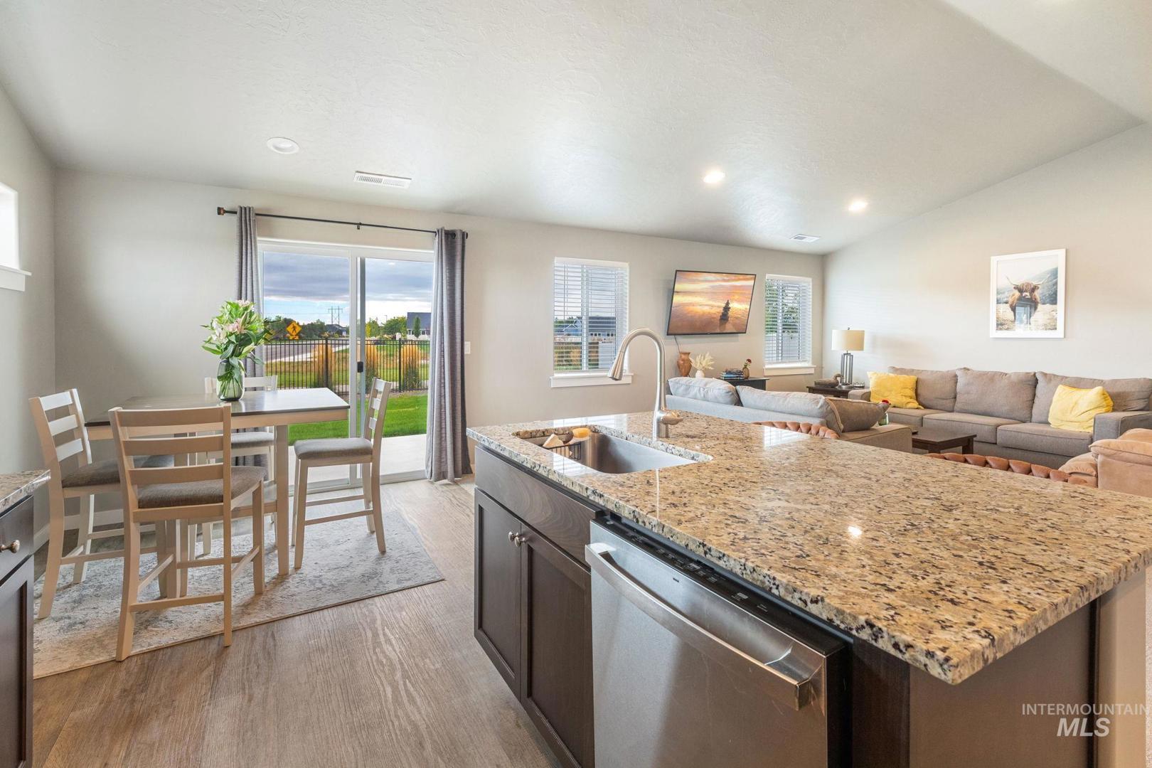 Fully furnished and fabulously move-in ready, this single-level stunner is the definition of effortless living. The kitchen is complete with granite counters and a breakfast bar, it practically dares you to host brunch (or at least look like you do). The open-concept living and dining area is perfect for entertaining, lounging, or showing off your impeccable taste. The private primary suite offers dual closets (yes, both can be yours) and a dual vanity because sharing sinks is so last season. Two additional bedrooms flex beautifully for guests, a home office, or your yoga retreat. Step outside to a huge fenced yard ready for gatherings, pets, or a future putting green. Enjoy a boutique neighborhood of just 25 homes with a park, walking paths, pickleball, and a gazebo for your evening unwind. Close to downtown and schools, this one’s got it all—just bring your suitcase and your sense of style.