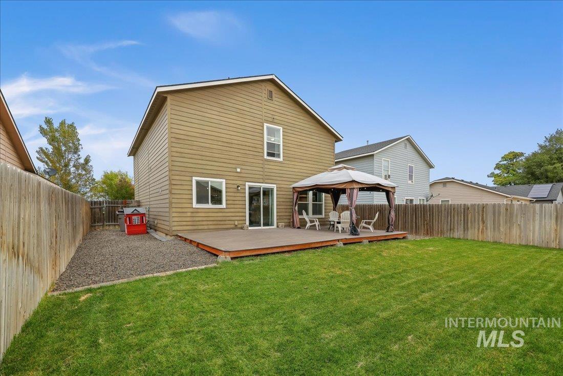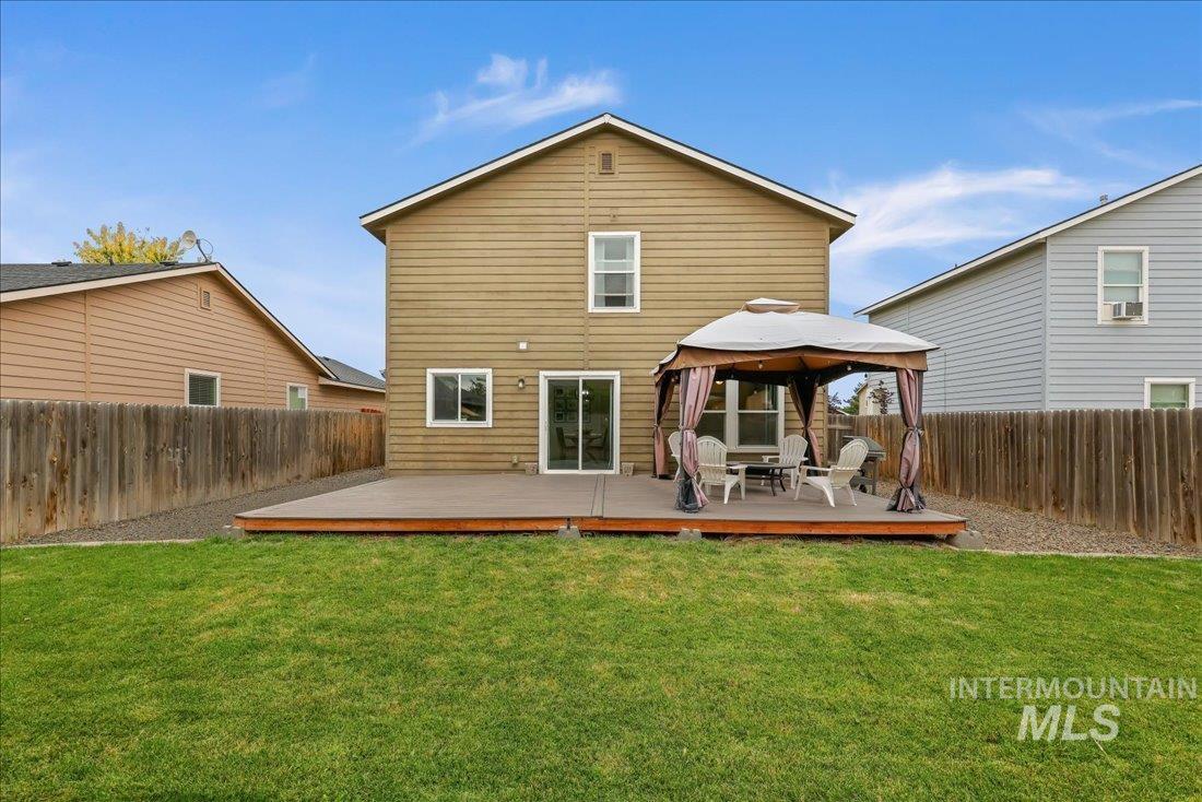 Welcome to this well-maintained 3-bedroom, 2.5-bath, 2-story home offering 1,662 sq. ft. of comfortable living space. The main level great room showcases stylish engineered vinyl plank flooring, painted cabinetry, and solid-surface countertops, with a spacious pantry for added convenience and half-bath. Upstairs, a thoughtfully designed floor plan offers a versatile family/bonus/den space, perfect for relaxing, home office or play area. The large primary suite offers a peaceful retreat, complete with plenty of space to unwind, and a large walk-in closet. There is a centrally located laundry room for convenience. The spacious extra bedrooms are located opposite the primary bedroom for added privacy. Outside, enjoy beautifully landscaped grounds, an extended back patio with outdoor decking, and a charming pergola — perfect for outdoor living.