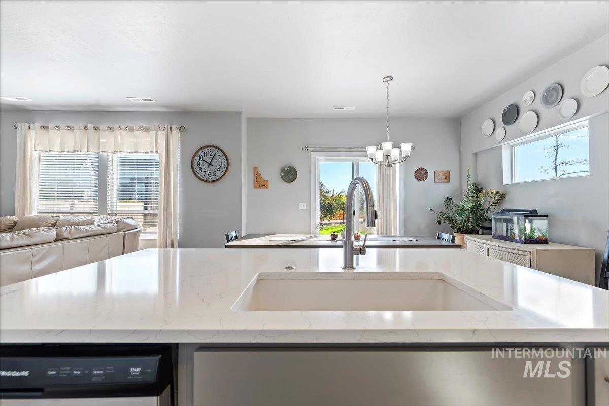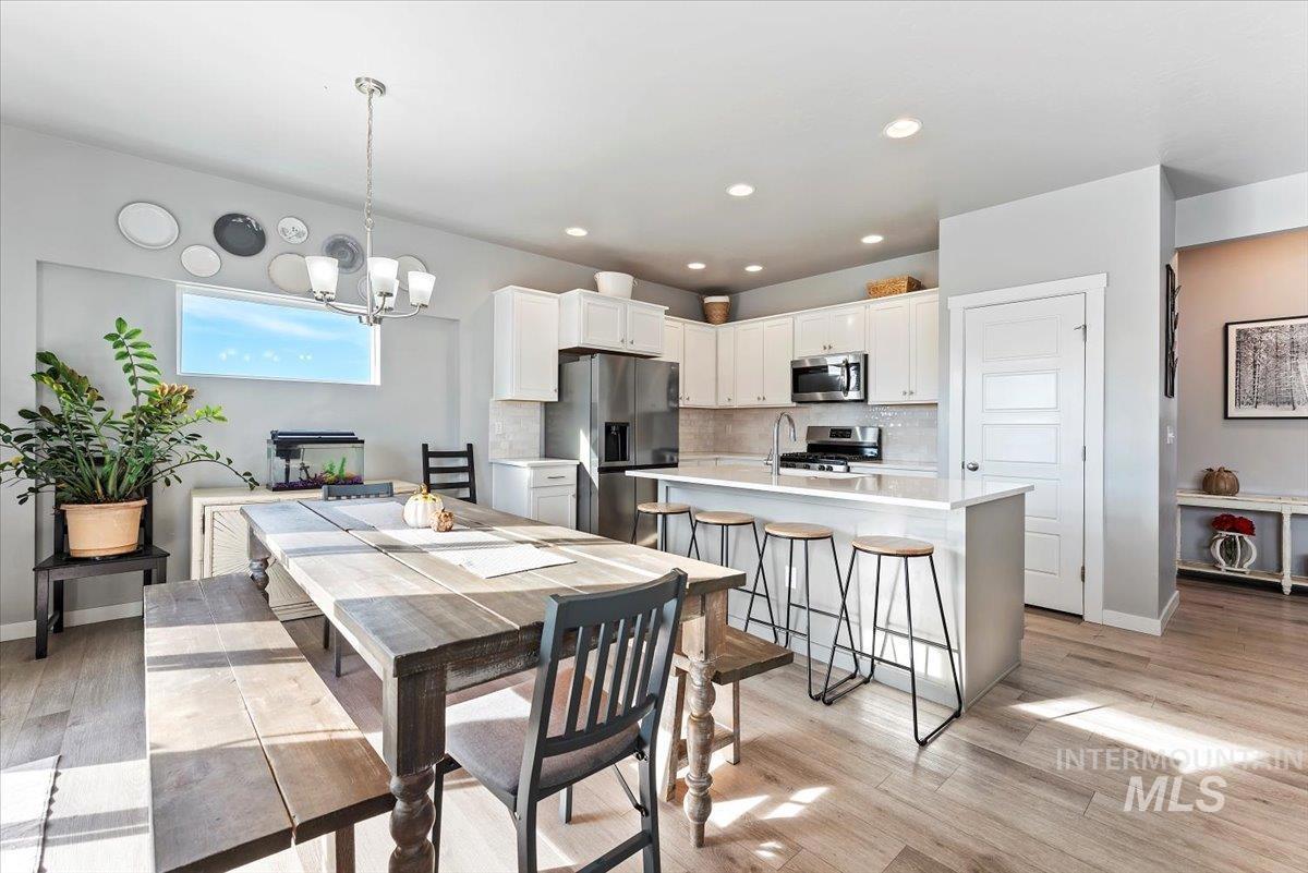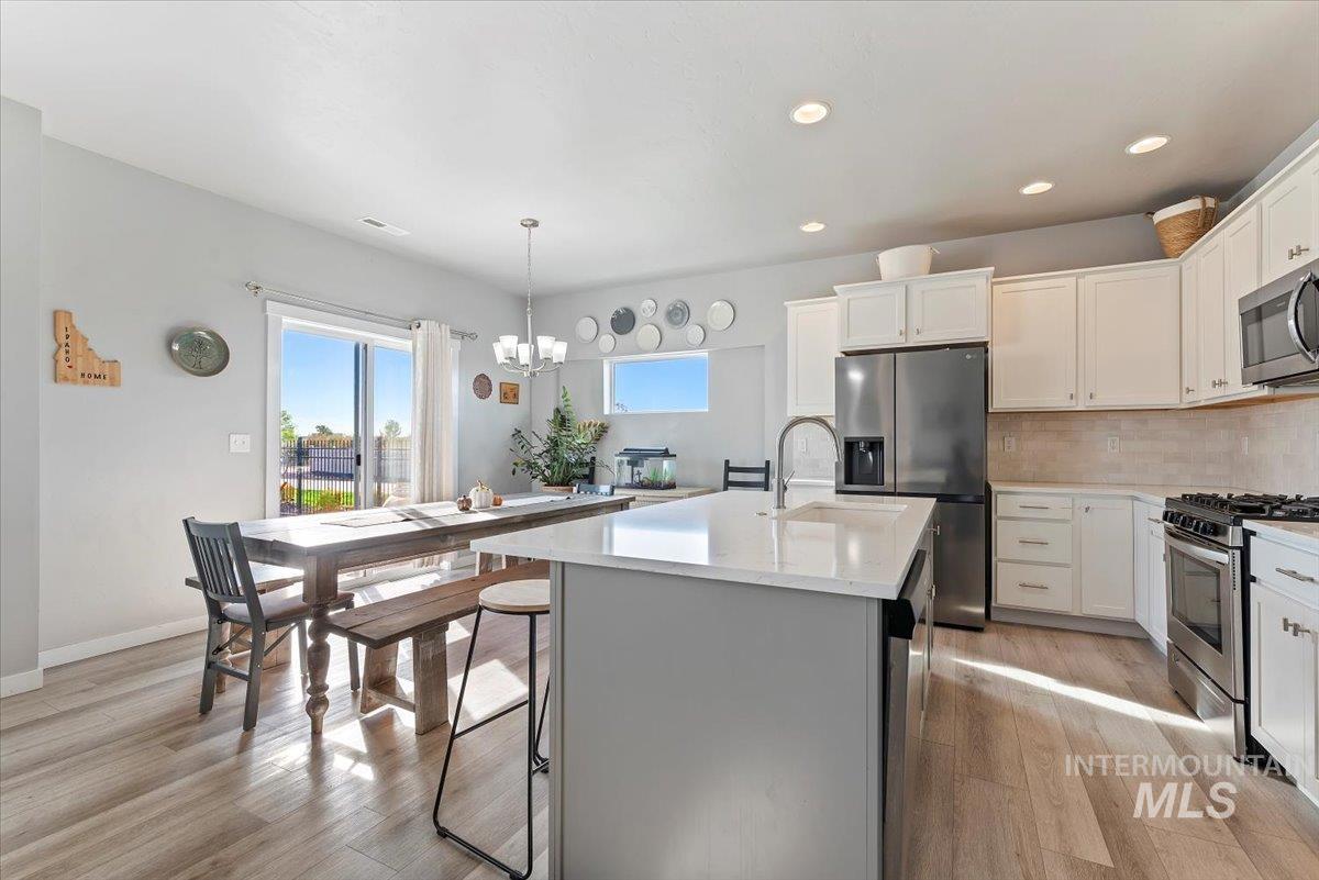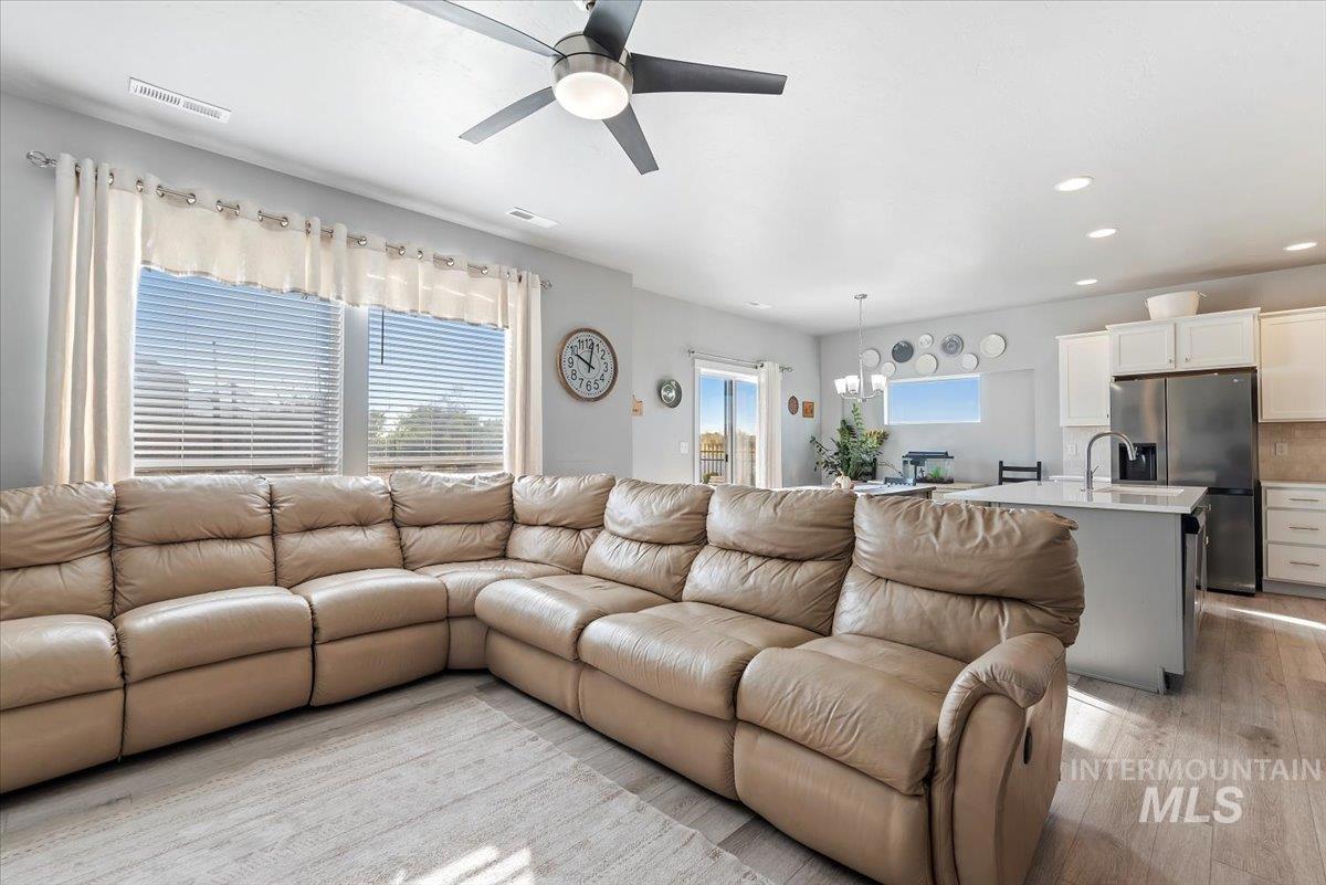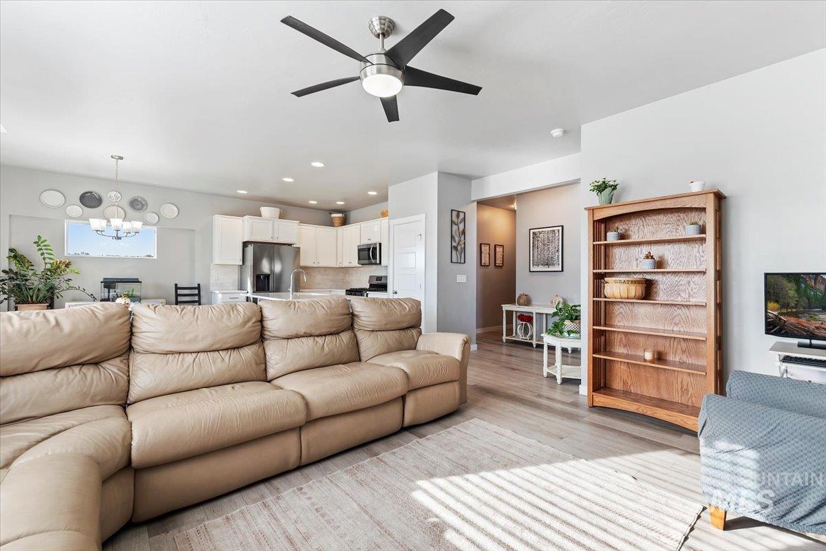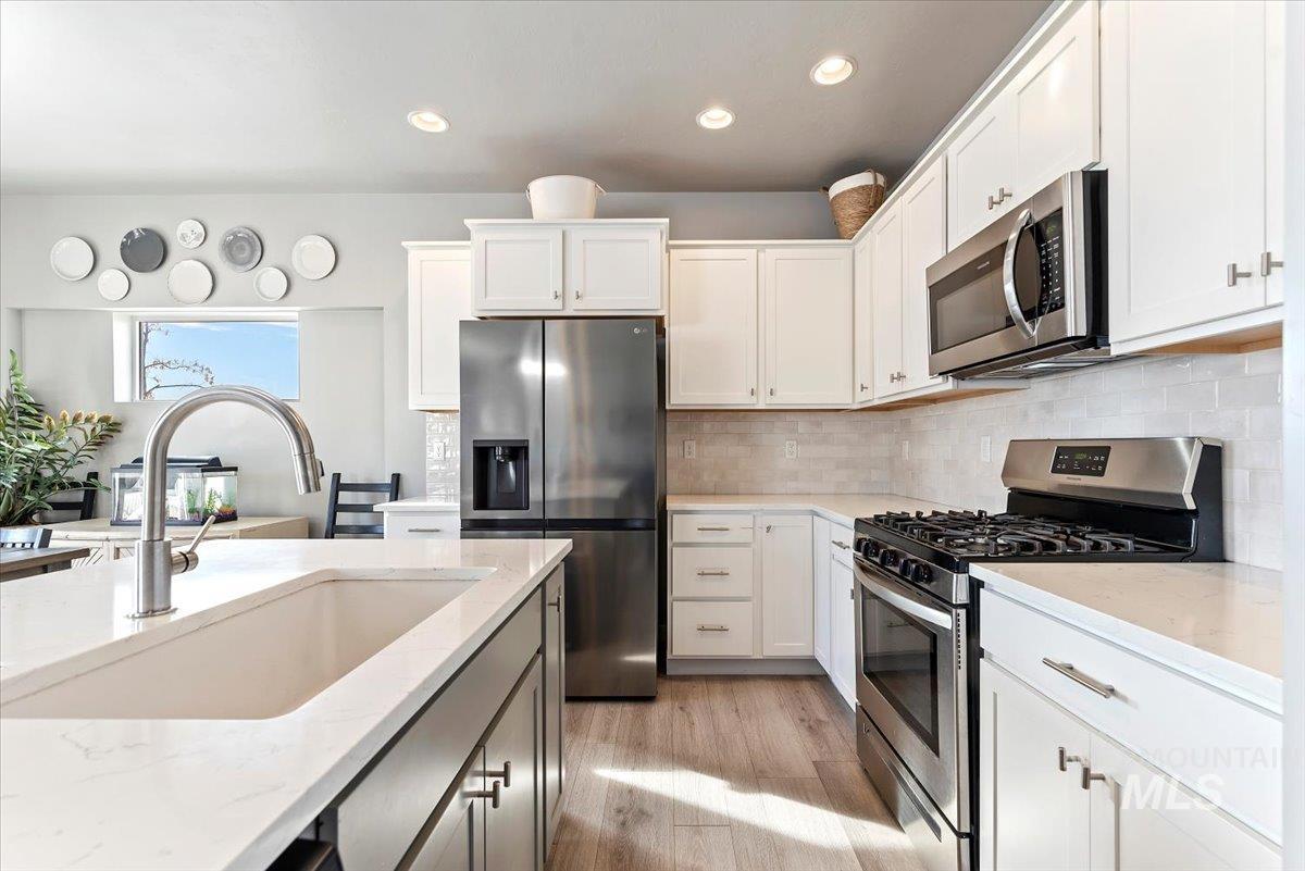 Imagine living in a home where the best of Meridian is growing up around you - all while you enjoy the privacy and security of a semi-mature neighborhood. Placed on the cusp of one of the largest lifestyle, shopping, entertainment, and housing developments in Idaho history — the $1 billion District at 10 Mile project - 400 S. Sunset Point Way is everything you want in the perfect family home. Tucked away in the quiet corner of the Baraya Subdivision with just one neighbor this home boasts direct access to walking trails and two parks and two playgrounds. Inside, you’ll find a design that’s both modern and welcoming. Open living spaces on the ground floor add to the cozy yet contemporary feel. The one bedroom downstairs could also be used for a home office. Upstairs provides a well laid out plan that includes a spacious master bedroom, a large loft area, and two additional bedrooms. This newer four bedroom home is perfectly located in what is a premier location. Seller is offering a credit at close for carpet stretching and cleaning.
