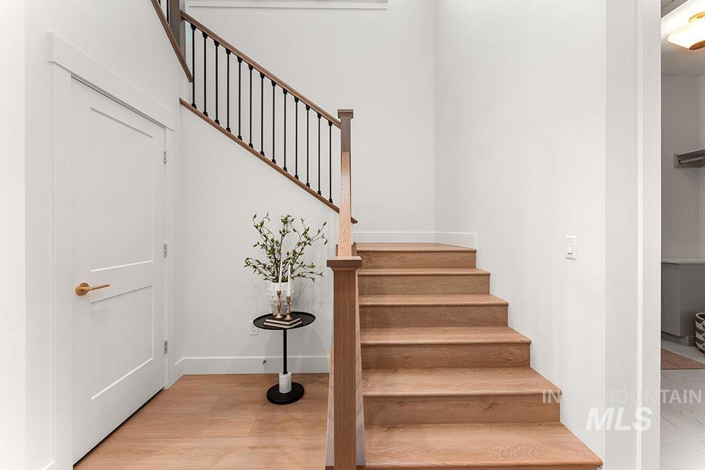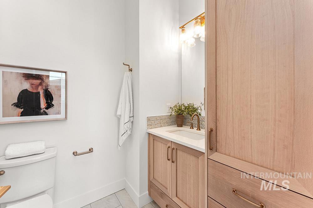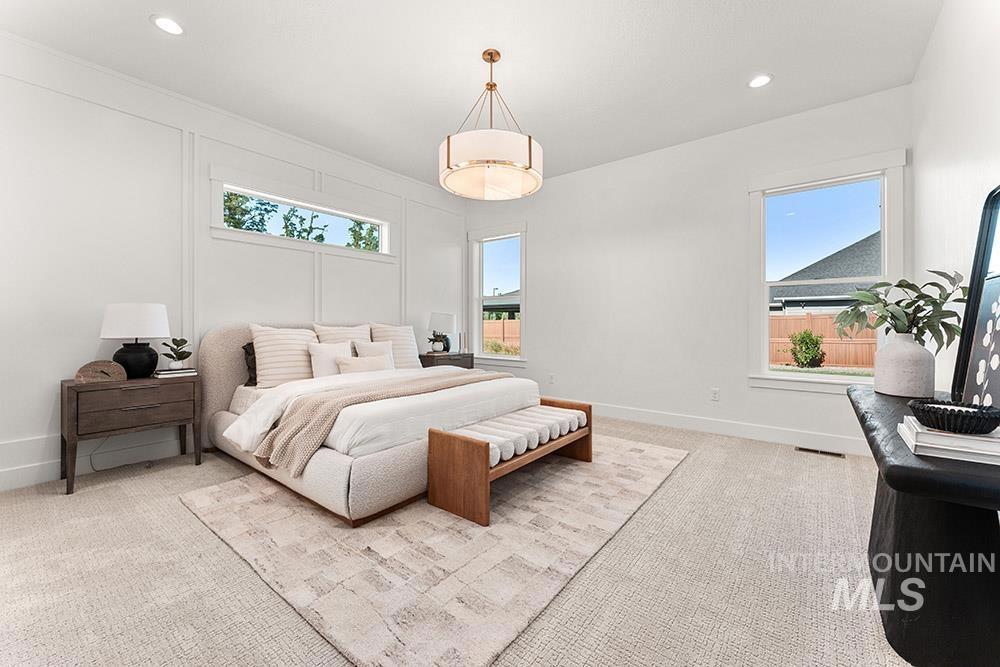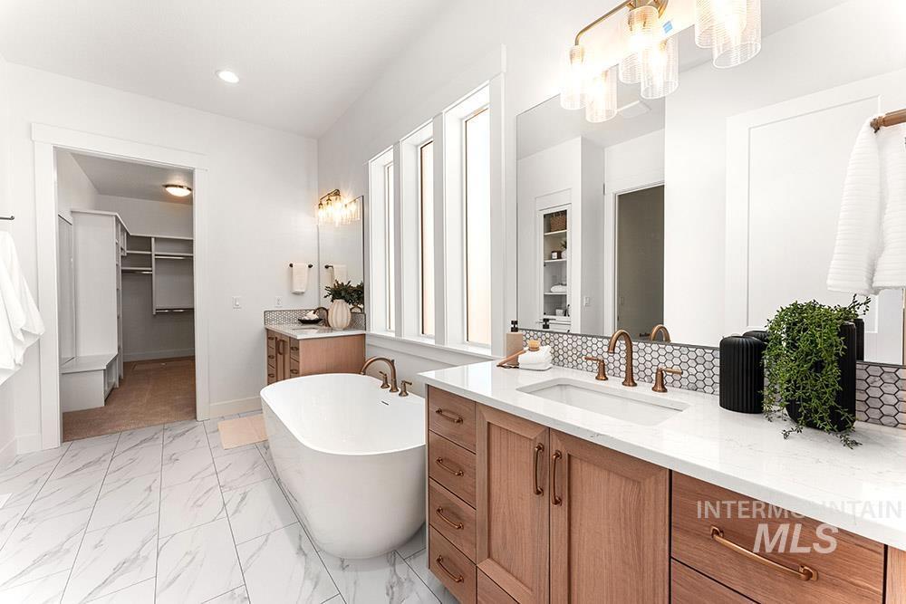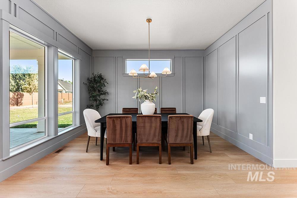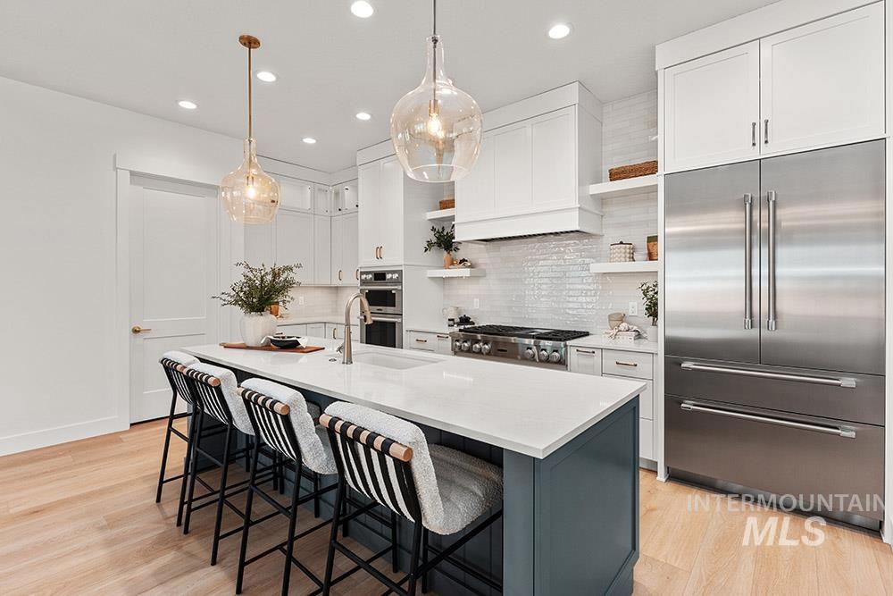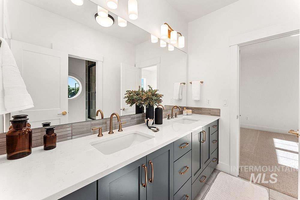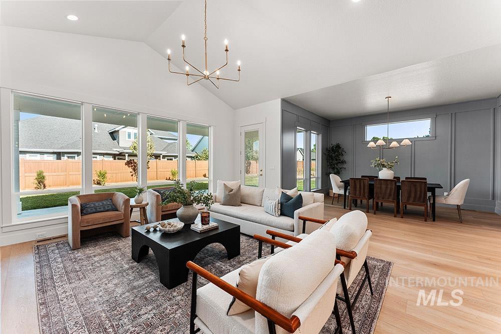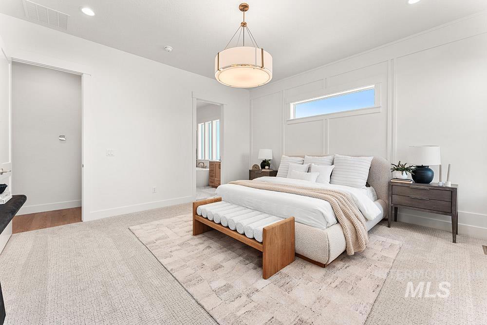 Experience designer luxury in the stunning Banquette by award-winning Asbury Homes. This stunning home showcases warm wood plank flooring, a curated designer color palette, & custom lighting throughout. The vaulted great room features a striking stacked stone fireplace & opens to a charming dining space & chef’s kitchen, complete with full-height cabinetry, quartz countertops, Zellige backsplash, professional-grade gas cooktop, dual ovens (incl steam), & a large island for entertaining. The owner’s suite enjoys its own private wing with a spa-inspired bath, dual vanities, freestanding soaker tub, & large walk-in closet w/ direct laundry access. A main-level guest suite adds convenience, while the upper level includes a generous bonus room and two bedrooms with Jack&Jill bath. Enjoy the oversized covered patio, expansive lawn, and the 2-car garage with an additional 32` x 13`6" RV bay. Located in the vibrant Centerra community with a pool, walking paths, and close proximity to Eagle High & downtown Eagle!