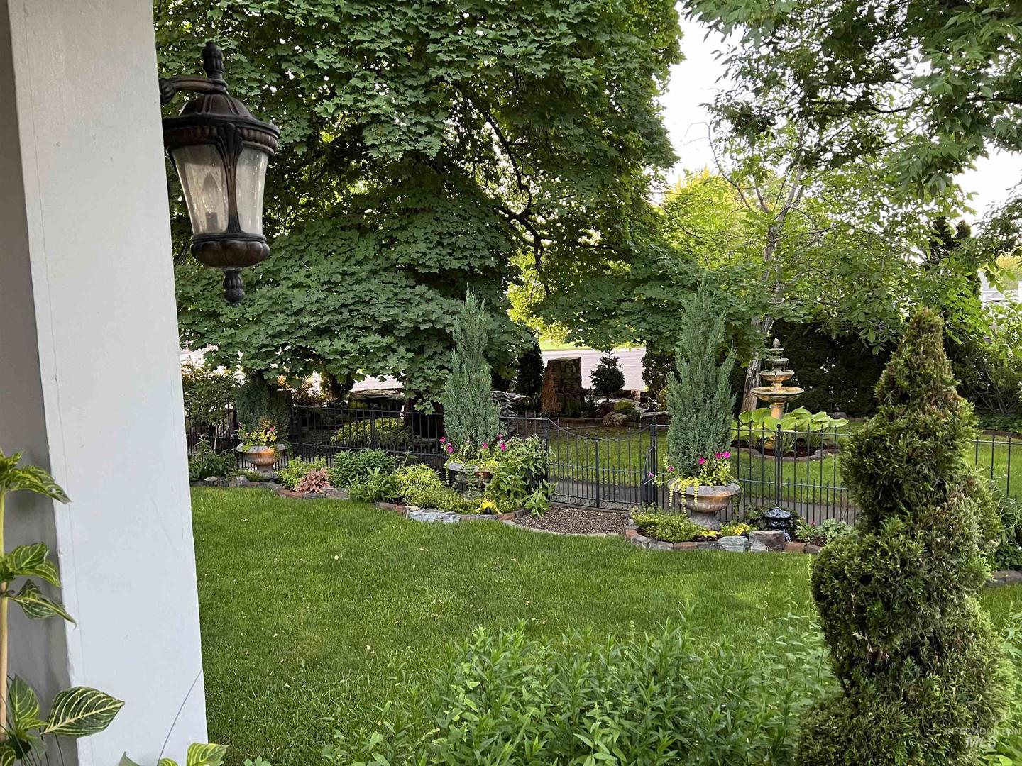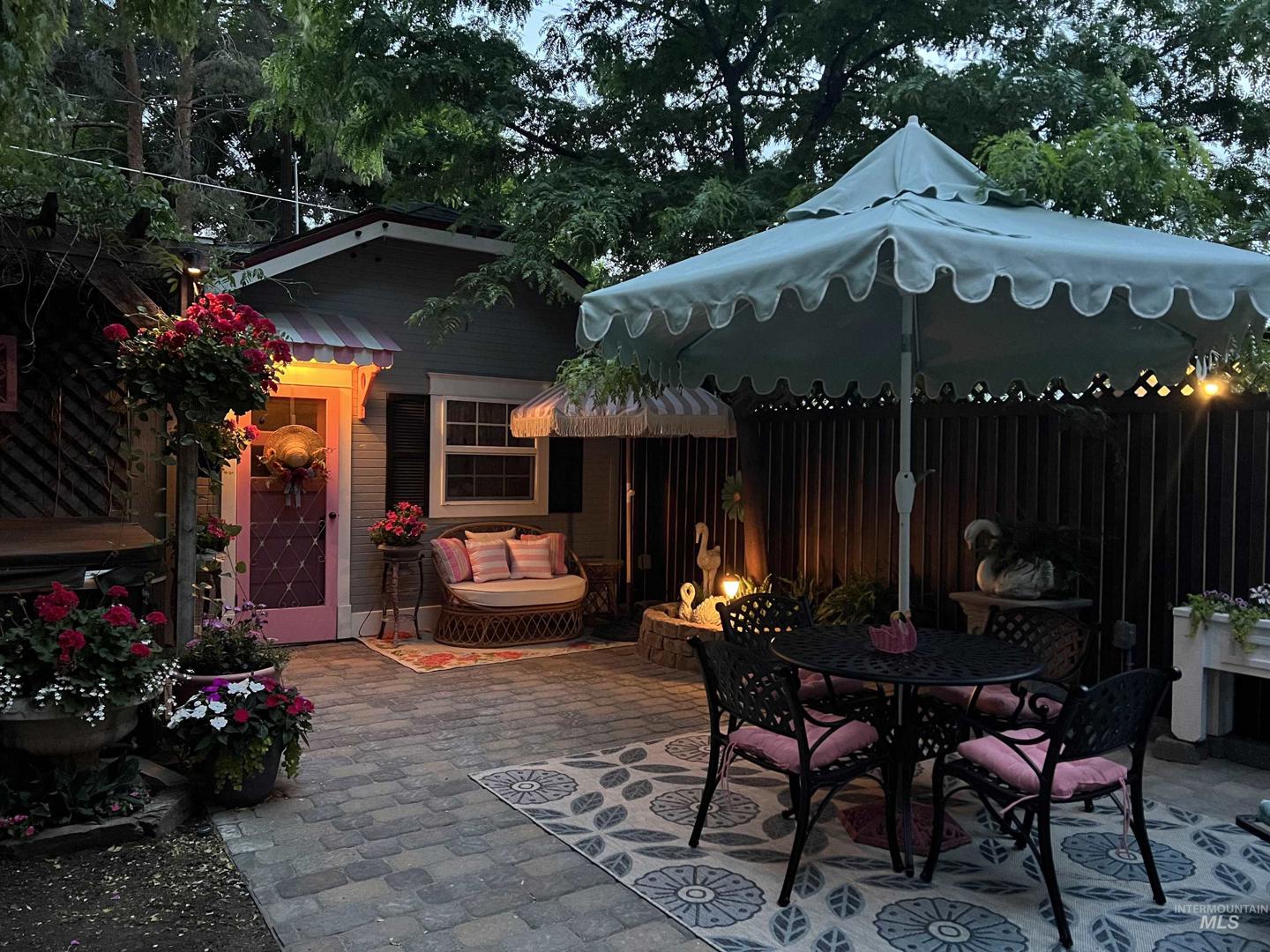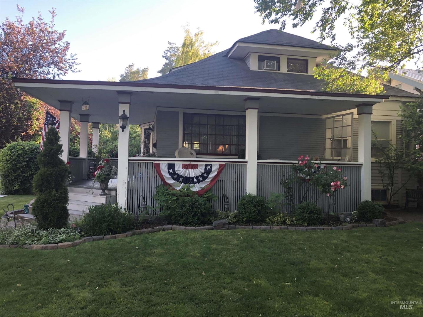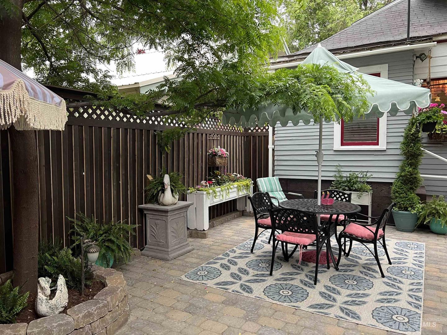 Vintage charm meets everyday comfort, boosting approximately 2,495 square feet corner-lot home with incredible mature landscaping and a welcoming covered front porch. Inside, you’ll find white kitchen cabinets, granite countertops, and a formal dining room. Durable luxury-vinyl plank flooring in the kitchen, dining room, and a large main-level bedroom. Hall bath features a tile surround and slate flooring. The lower level includes a beamed-ceiling family room with an egress window and built-ins surrounding the TV. A spacious suite with an attached bath featuring vintage-inspired tilework. Energy efficient comforts include gas heat with central air, and a gas water heater. Outdoors, a custom-built-fence backyard frames the space, and a paver patio connects to a detached, cozy studio/guest space with exterior lighting—ideal for hobbies, guests, or a quiet office. A 6-person hot tub, sprinkler system with drip irrigation, and a detached garage complete the package. Truly a must-see property! Call to schedule a private showing today.