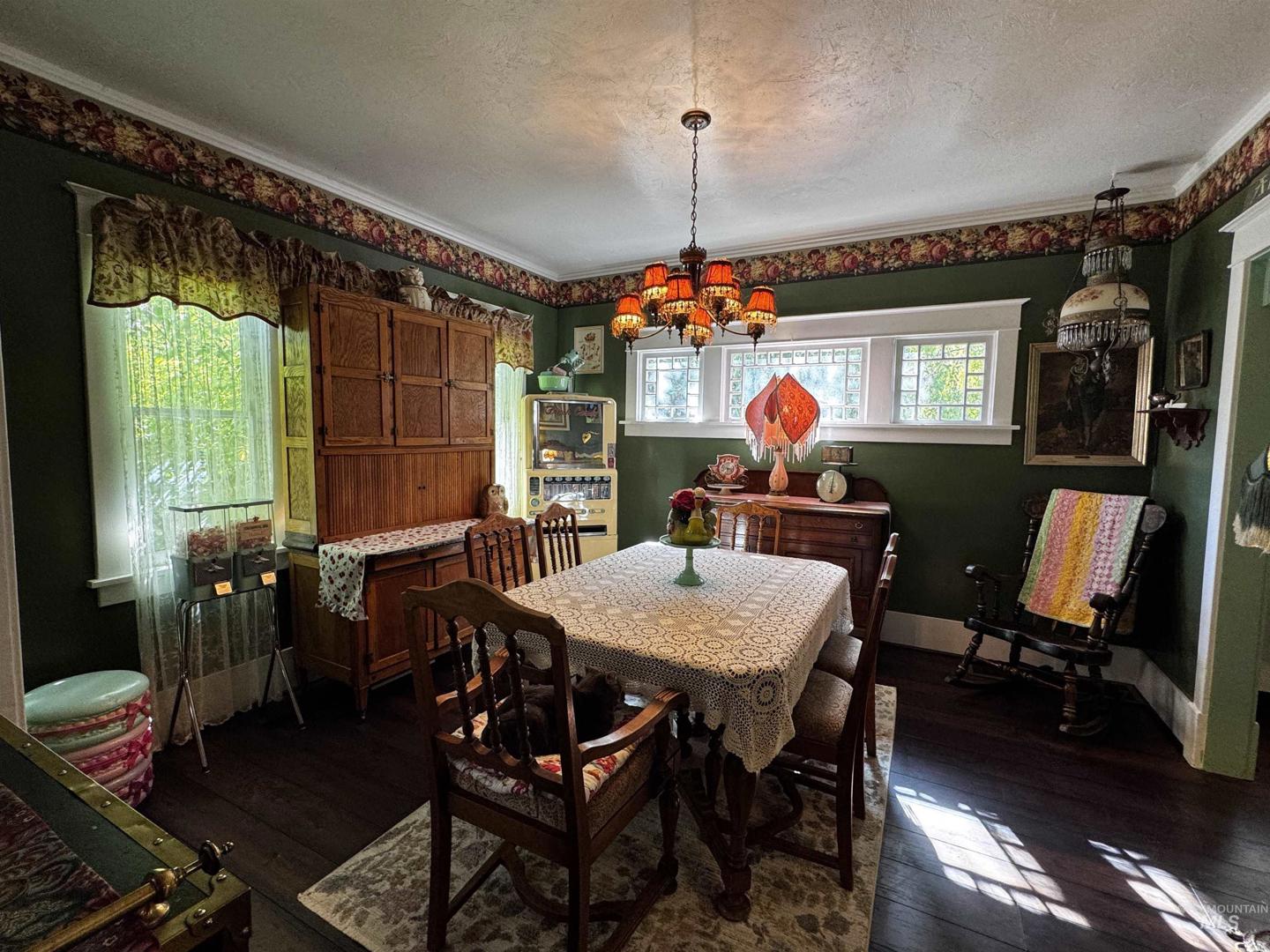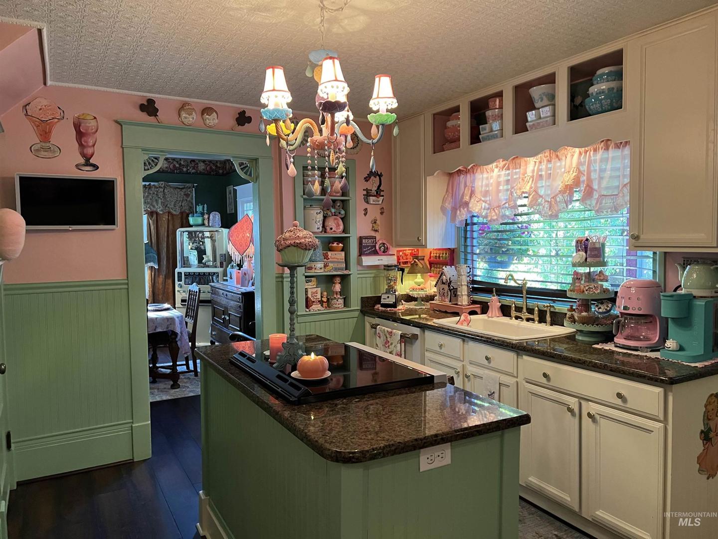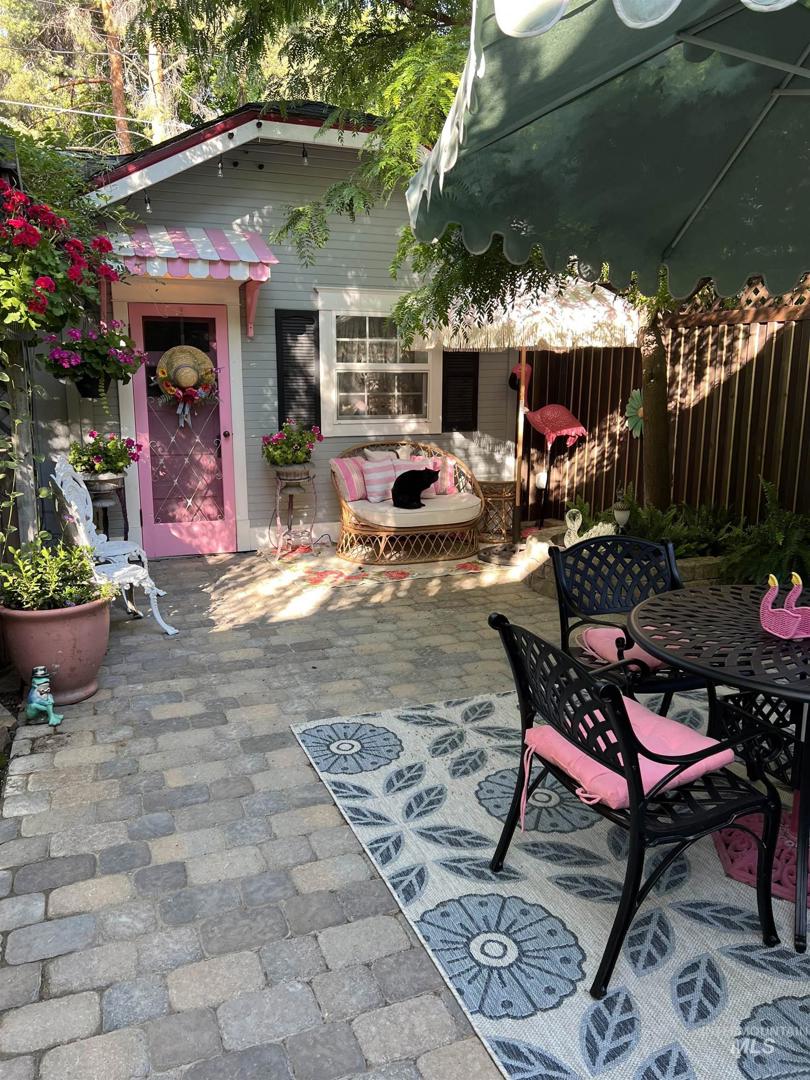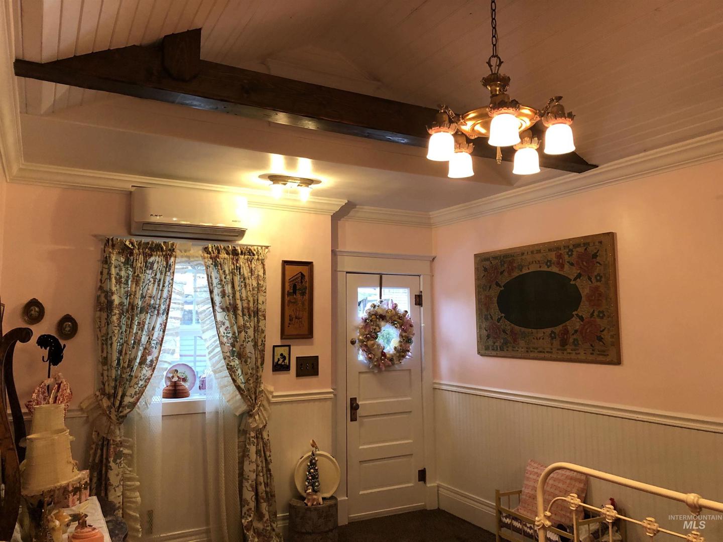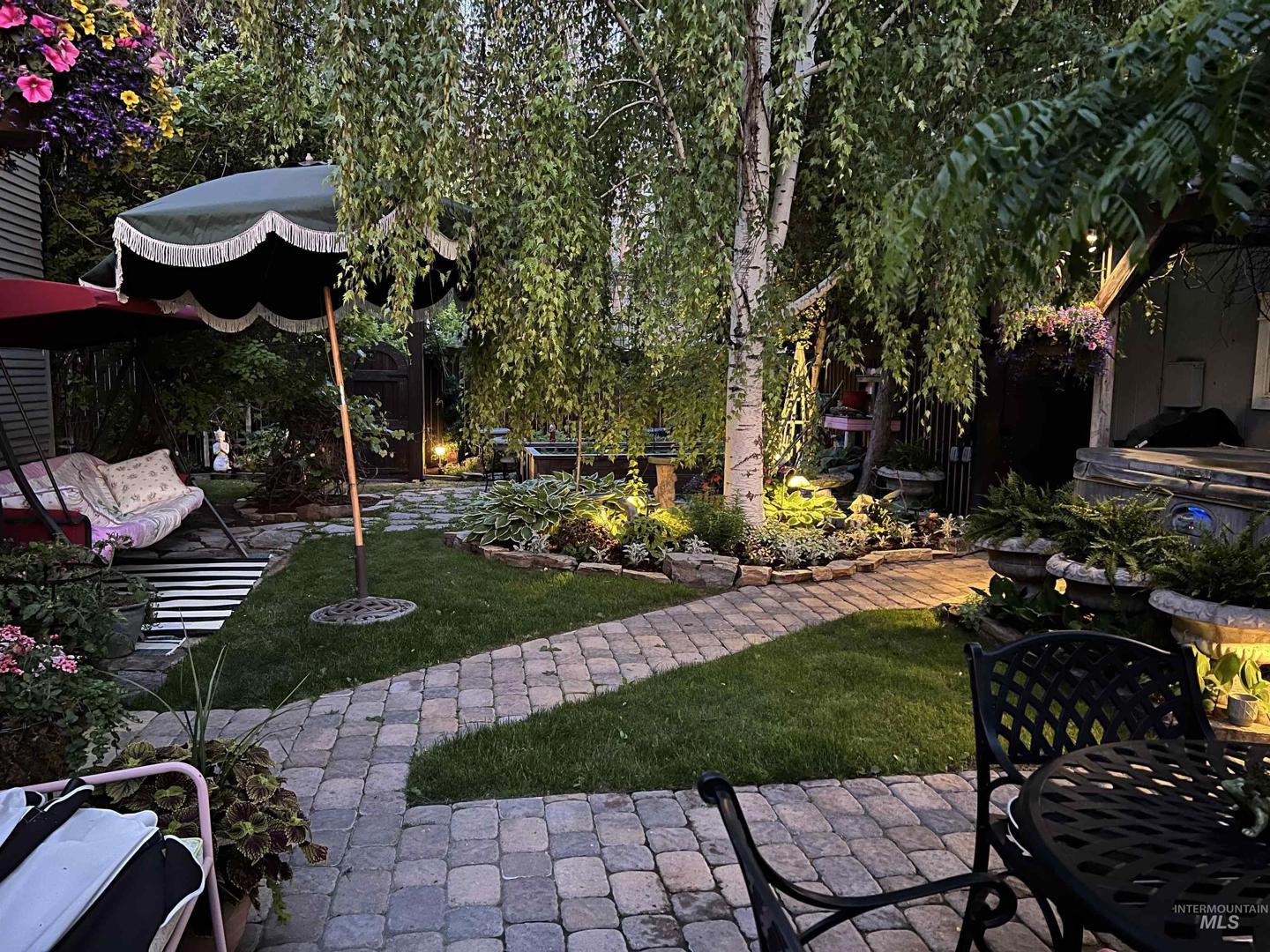 Vintage charm meets everyday comfort, boosting approximately 2,495 square feet corner-lot home with incredible mature landscaping and a welcoming covered front porch. Inside, you’ll find white kitchen cabinets, granite countertops, and a formal dining room. Durable luxury-vinyl plank flooring in the kitchen, dining room, and a large main-level bedroom. Hall bath features a tile surround and slate flooring. The lower level includes a beamed-ceiling family room with an egress window and built-ins surrounding the TV. A spacious suite with an attached bath featuring vintage-inspired tilework. Energy efficient comforts include gas heat with central air, and a gas water heater. Outdoors, a custom-built-fence backyard frames the space, and a paver patio connects to a detached, cozy studio/guest space with exterior lighting—ideal for hobbies, guests, or a quiet office. A 6-person hot tub, sprinkler system with drip irrigation, and a detached garage complete the package. Truly a must-see property! Call to schedule a private showing today.