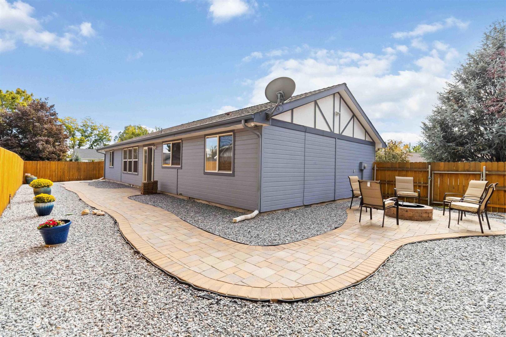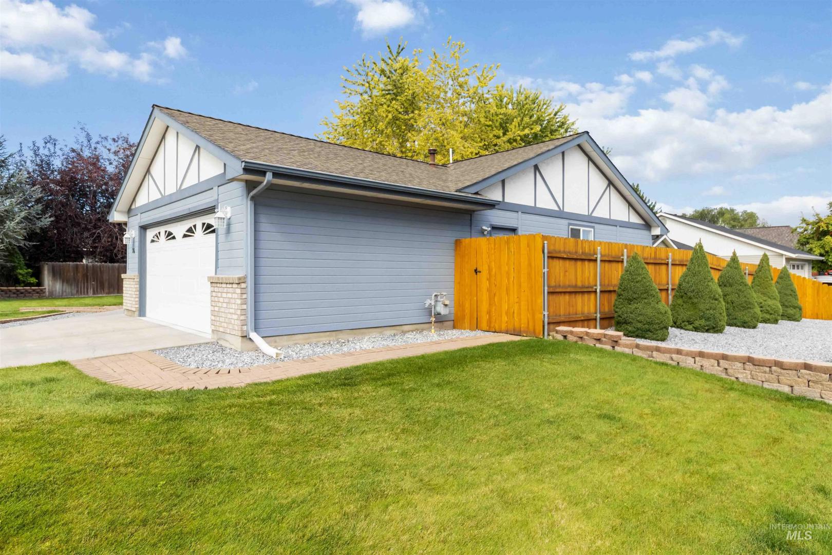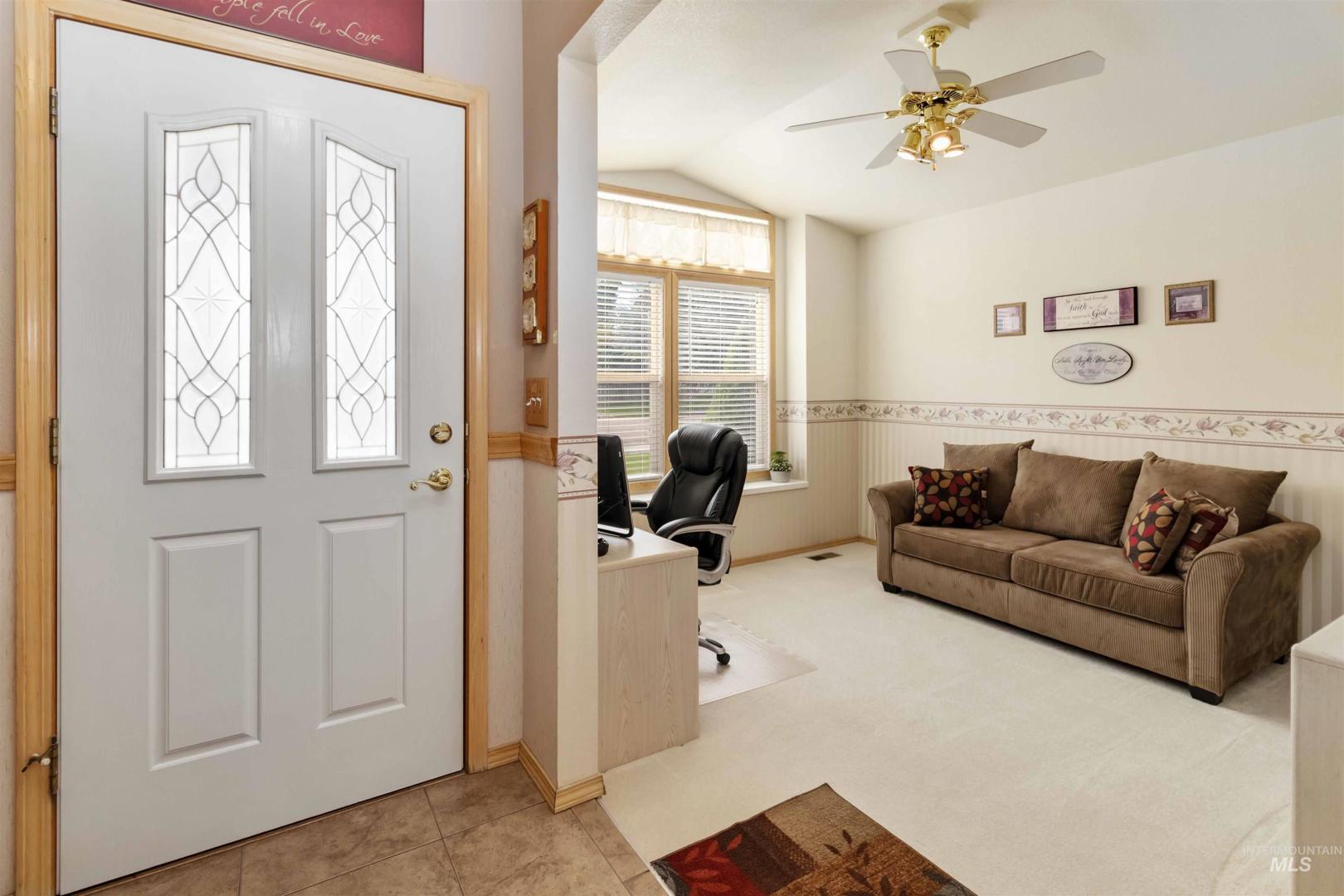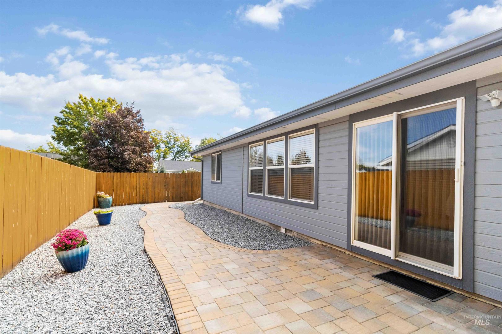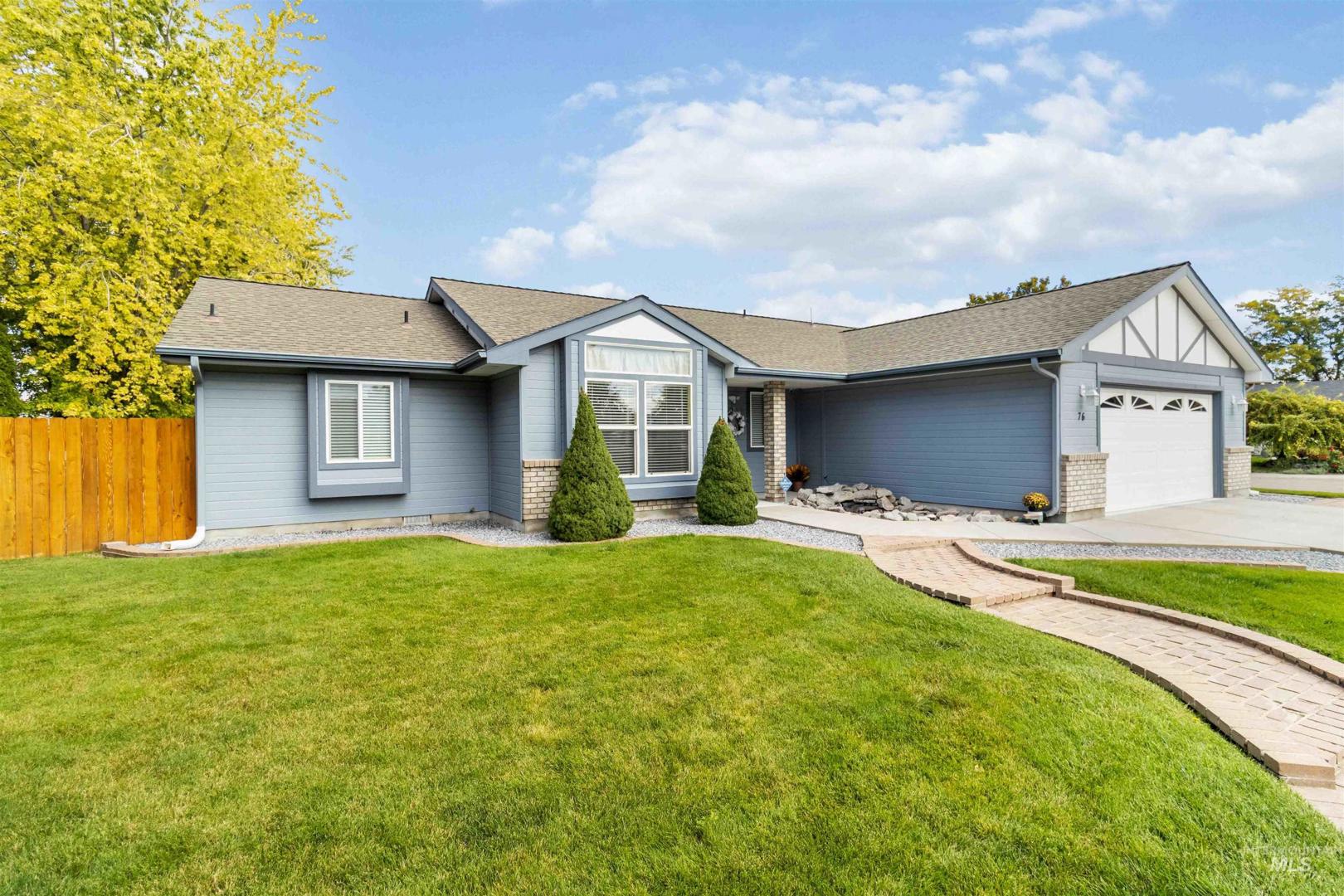 Immaculate and beautifully maintained, this corner-lot home is a rare find! Before you enter, a stunning stone-paved walkway leads to a water feature and covered patio. Just off the entry is a versatile front room, perfect as an office or den, along with a spacious laundry room with sink. The open floor plan boasts vaulted ceilings, tile floors, and quartz finishes throughout. The large kitchen and island, with a picture window over the sink, are perfect for entertaining. Retreat to the primary suite with its walk-in marble shower. Pride of ownership is evident at every turn, from the pristine carpet to the spotless garage with newly applied concrete chip coating. The low-maintenance, zero-scaped backyard provides a private retreat with gas hookup for your BBQ, yet sprinklers remain in place should the buyer wish to add grass back in. Every detail has been cared for, making this home truly move-in ready and the perfect blend of comfort, style, and meticulous upkeep.