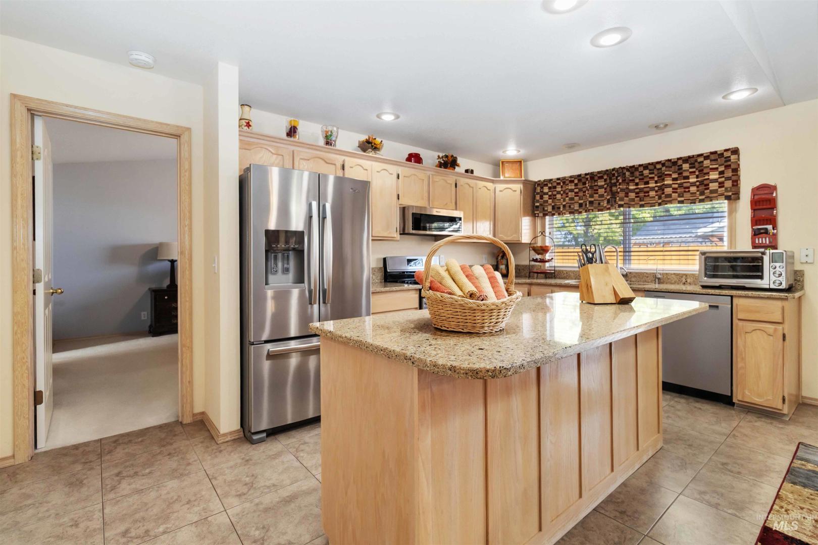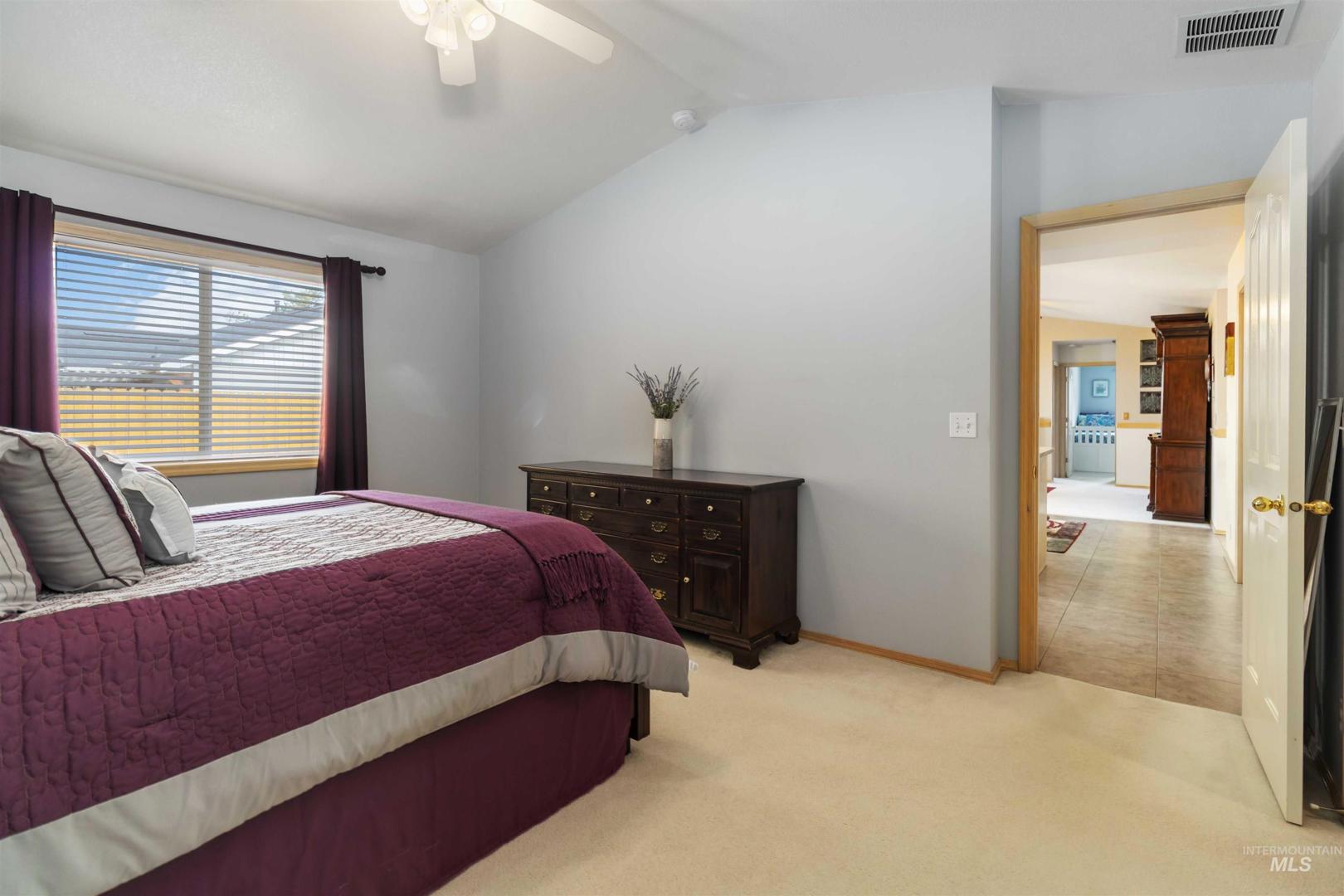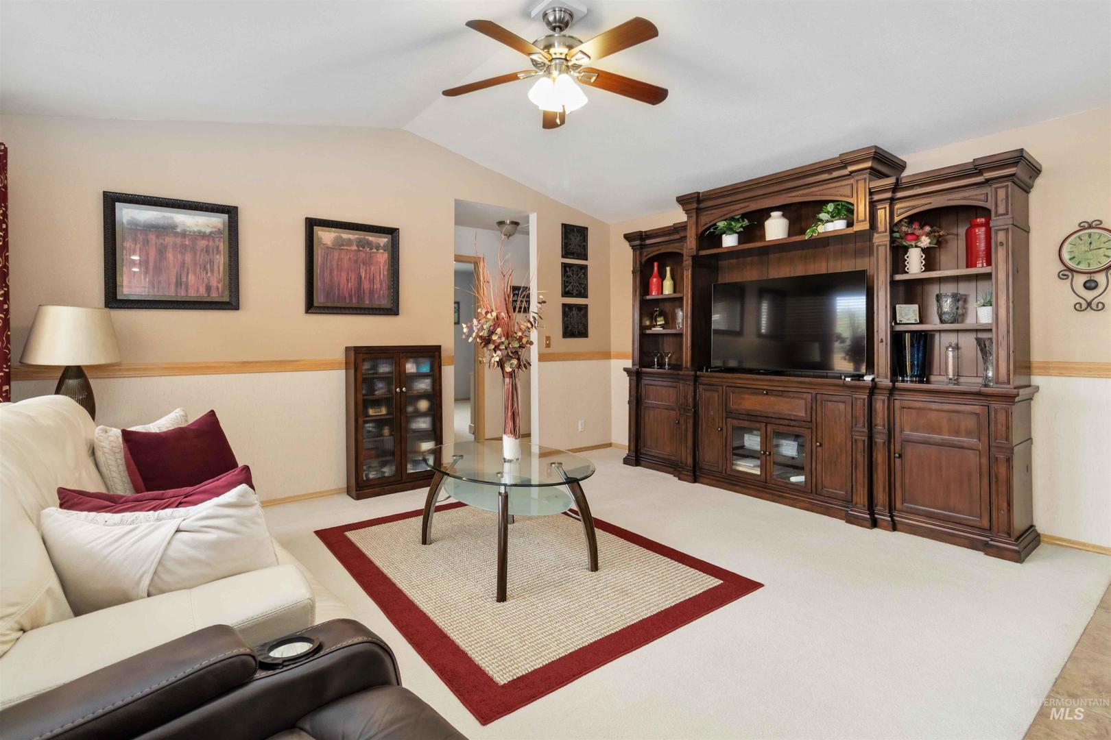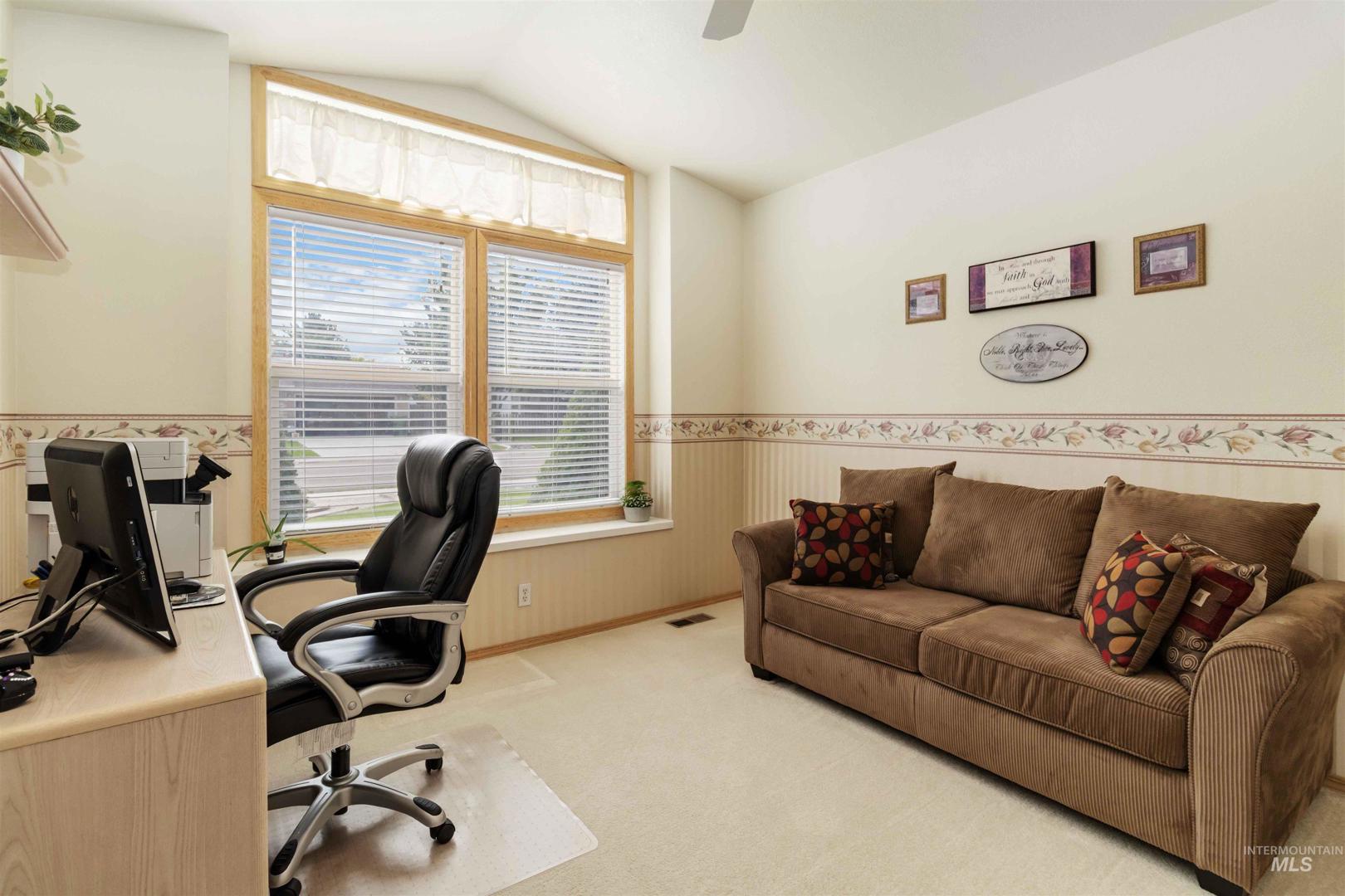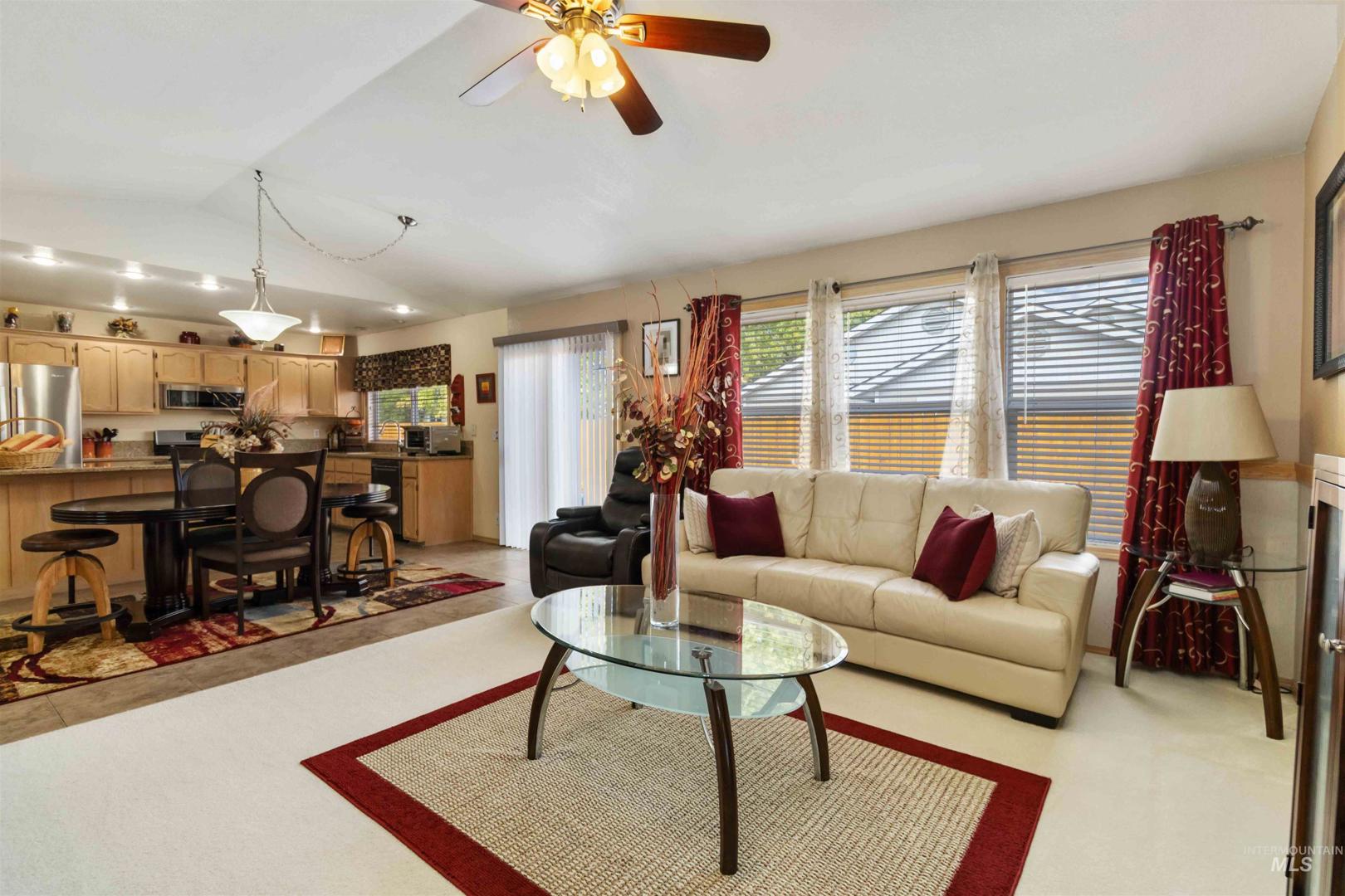 Immaculate and beautifully maintained, this corner-lot home is a rare find! Before you enter, a stunning stone-paved walkway leads to a water feature and covered patio. Just off the entry is a versatile front room, perfect as an office or den, along with a spacious laundry room with sink. The open floor plan boasts vaulted ceilings, tile floors, and quartz finishes throughout. The large kitchen and island, with a picture window over the sink, are perfect for entertaining. Retreat to the primary suite with its walk-in marble shower. Pride of ownership is evident at every turn, from the pristine carpet to the spotless garage with newly applied concrete chip coating. The low-maintenance, zero-scaped backyard provides a private retreat with gas hookup for your BBQ, yet sprinklers remain in place should the buyer wish to add grass back in. Every detail has been cared for, making this home truly move-in ready and the perfect blend of comfort, style, and meticulous upkeep.