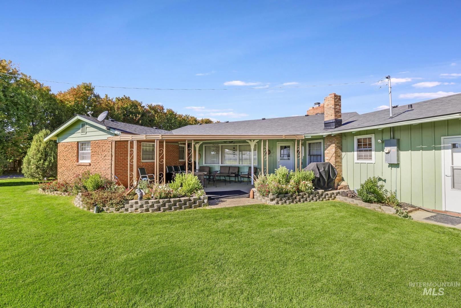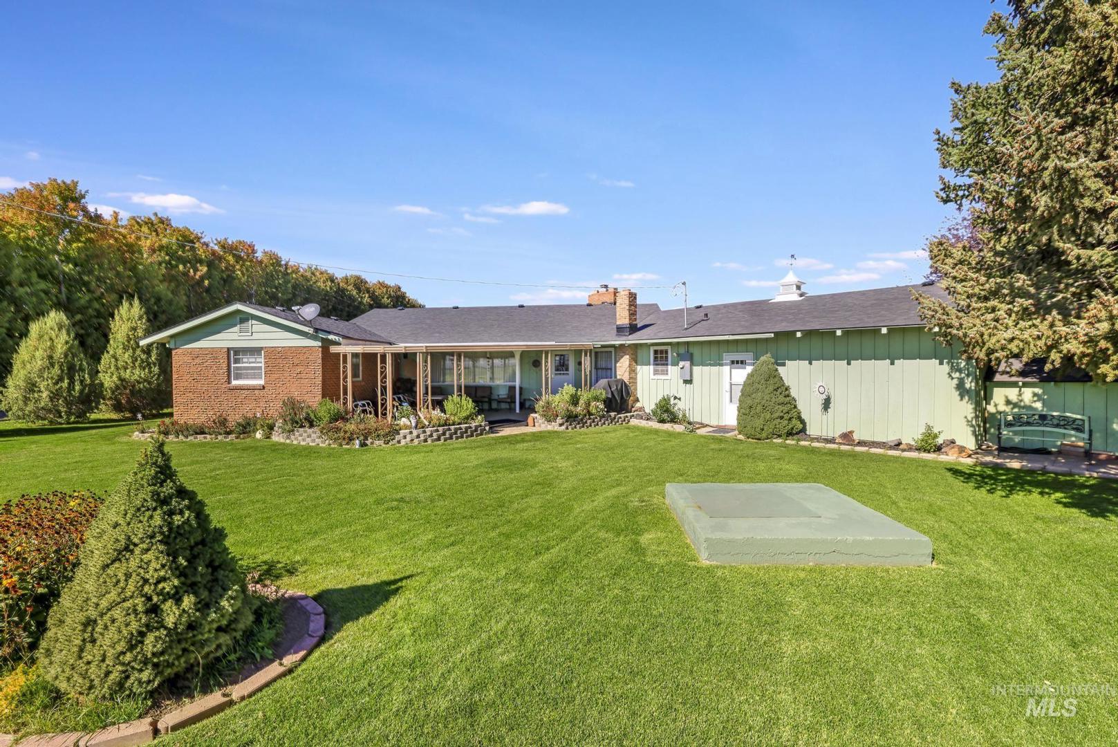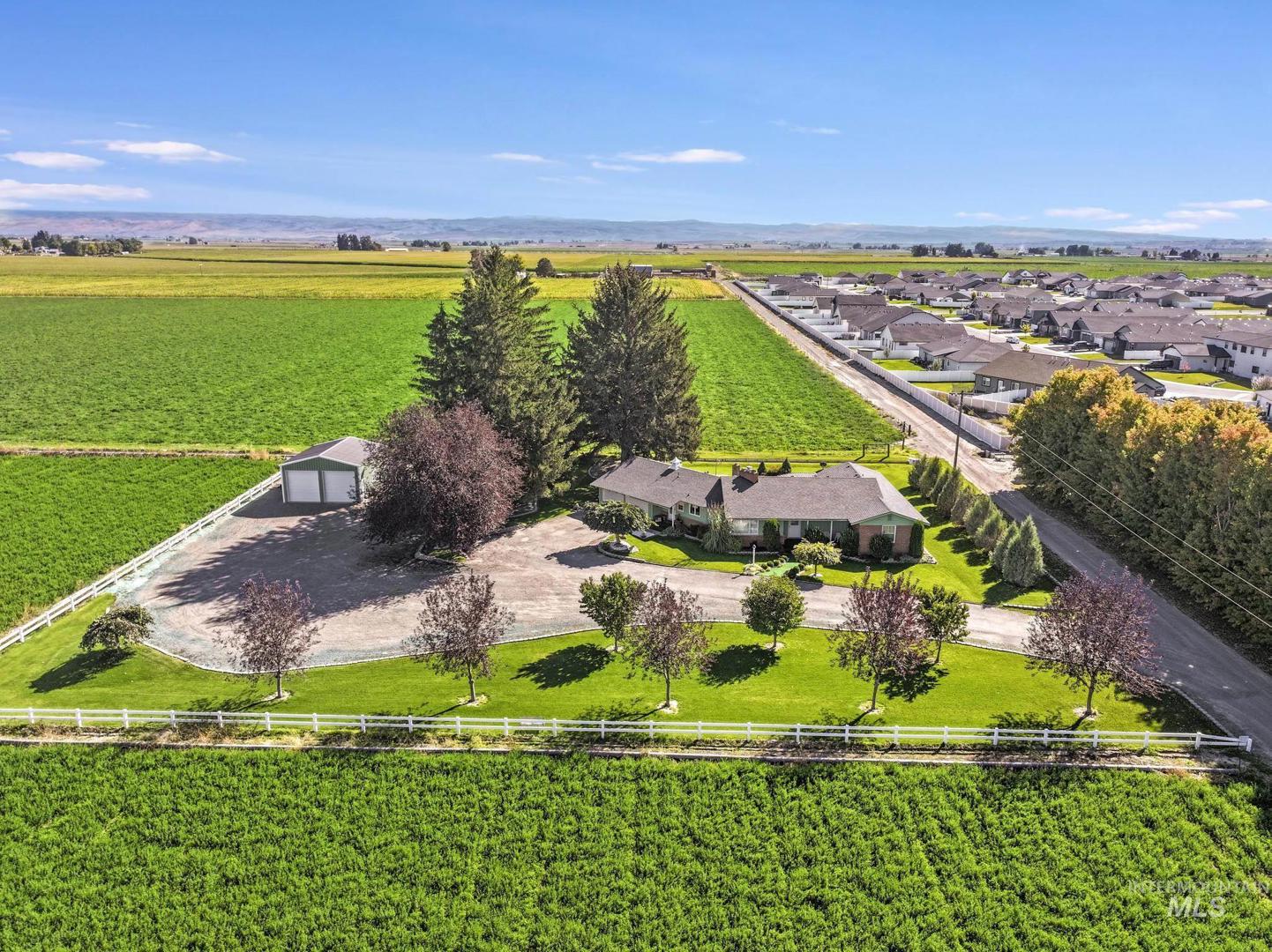 Welcome to your dream home — a beautifully landscaped 1-acre property offering peace, privacy, and picture-perfect views of the beautiful countryside that we brag about.This quality-built 4-bedroom, 2-bath ranch-style home combines timeless charm with modern updates. The fully updated kitchen is perfect for the home chef, while the formal dining room features large windows that let in the morning light — the ideal spot to enjoy your coffee and soak in the view.The spacious living area has custom wood ceilings and opens directly onto a large covered patio, where you can unwind in the evening with a glass of wine as the sun sets over the rolling fields. Downstairs, you`ll find a fully finished basement — a blank canvas ready to become the ultimate man cave or media room. Outside, the pride of ownership is on full display. The grounds are meticulously landscaped, and the property includes one full water share, giving you peace of mind and room to grow as well as a new roof installed in 2022. The newer two-door insulated pole barn/shop features concrete floors and is ready for your toys, tools, or hobbies. Located on a quiet country road yet just minutes from local schools, charming eateries, and the conveniences of Twin Falls — this home offers the perfect blend of rural beauty and everyday convenience. It’s more than a home — it’s a lifestyle.
