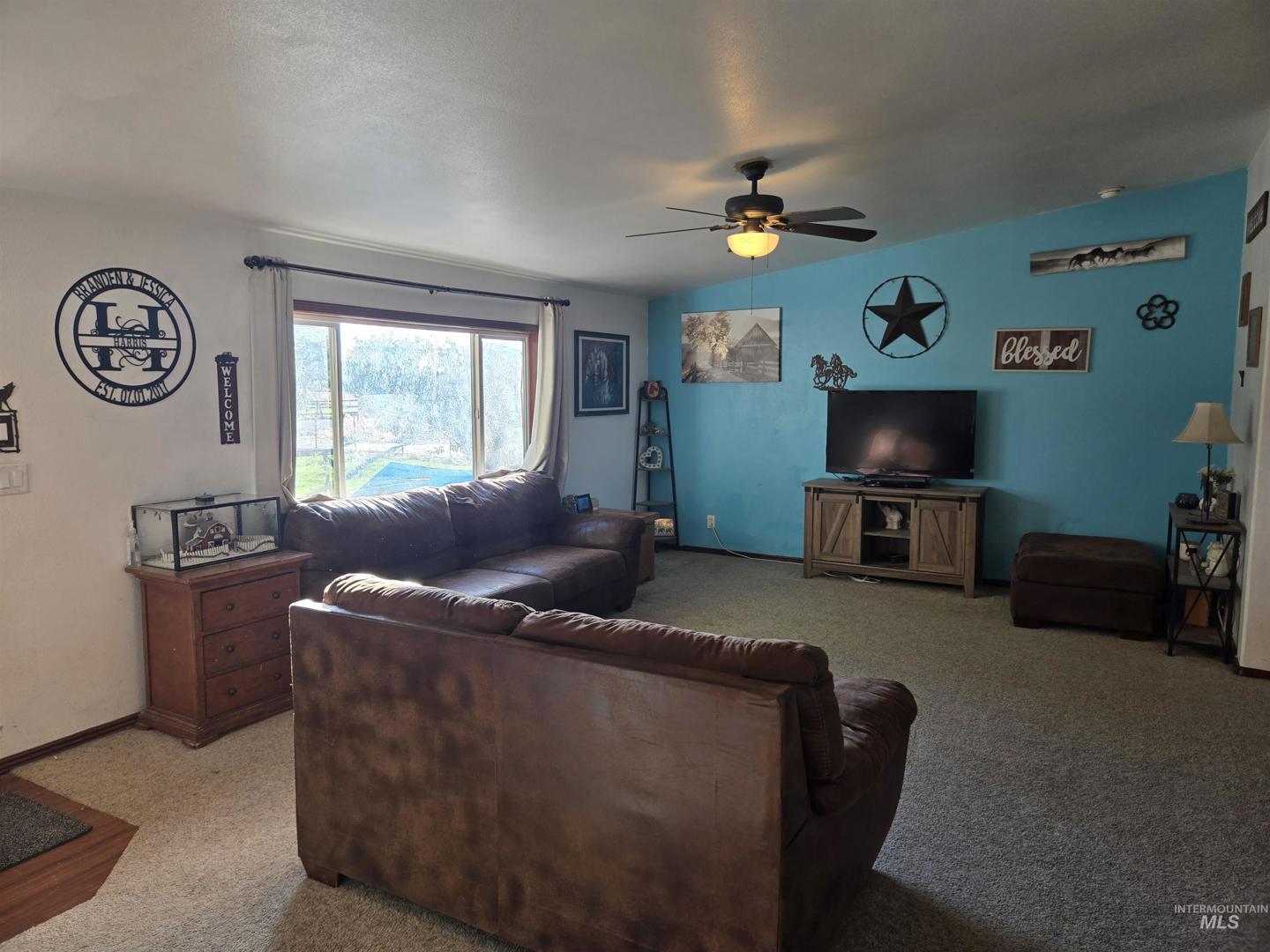 Welcome to Your Slice of Idaho Heaven! This stunning 5.69-acre property sits perfectly between Sun Valley & Twin Falls. With ample room inside and out, escape to wide-open skies, mountain views, & endless adventure. This is more than a home — it’s a lifestyle. The property backs up to thousands of acres of BLM land waiting to be explored with immediate access to trails for walking, biking, dirt biking, horseback riding, or even cave exploring. Come home to peaceful privacy with two lush lawns & mature trees that offer shade all day. The property is fenced & animal-ready! Space for horses, goats, chickens, & more. There’s pasture for grazing or growing your own hay. Plus plenty of room for trailers, RVs, & outdoor toys! Inside, welcome home to a spacious open floor plan with 4 bedrooms, 2 full bathrooms, & panoramic views. The expansive kitchen offers tons of cabinet space & room to cook/entertain. The open layout flows into the dining area, living room, & second family room. The primary suite feels like a private retreat with a huge walk-in closet, dual sinks, soaking tub, & separate shower. You’ll love the brand-new AC unit! Watch Idaho sunsets (or even the Northern Lights) light up the mountains from your windows. Don’t miss this rare opportunity to own a beautifully maintained home on a permanent foundation with acreage (eligible for financing). Come see it before it’s gone!