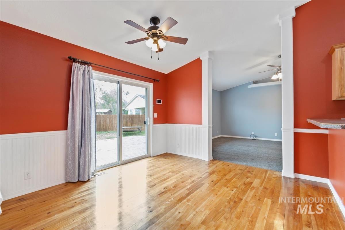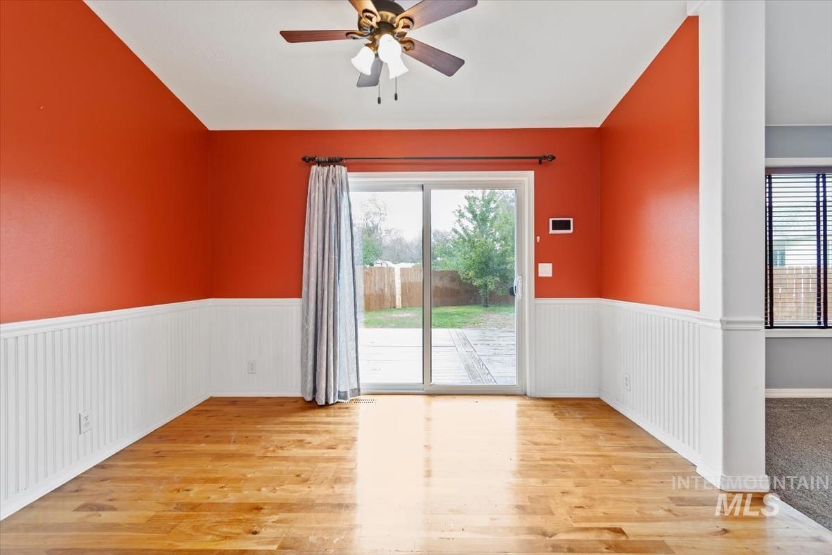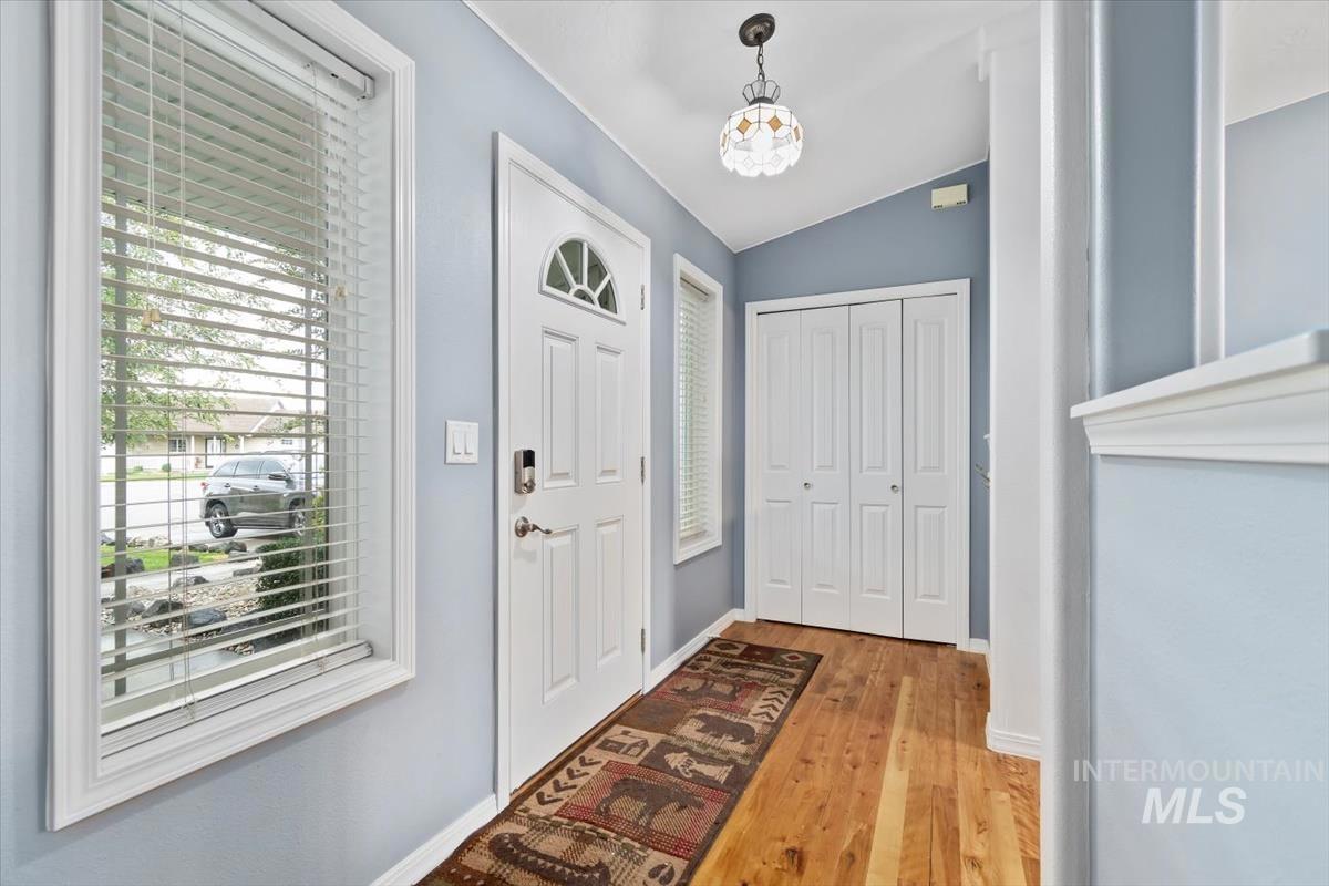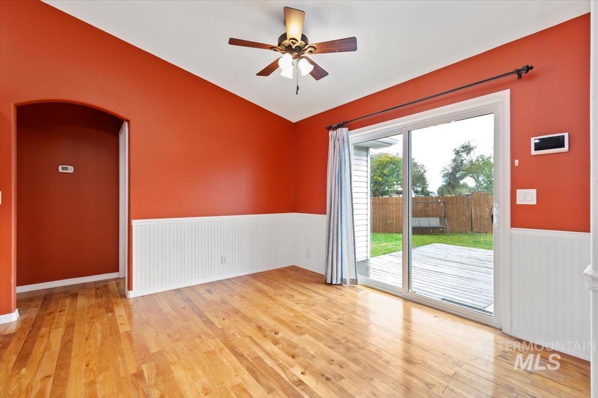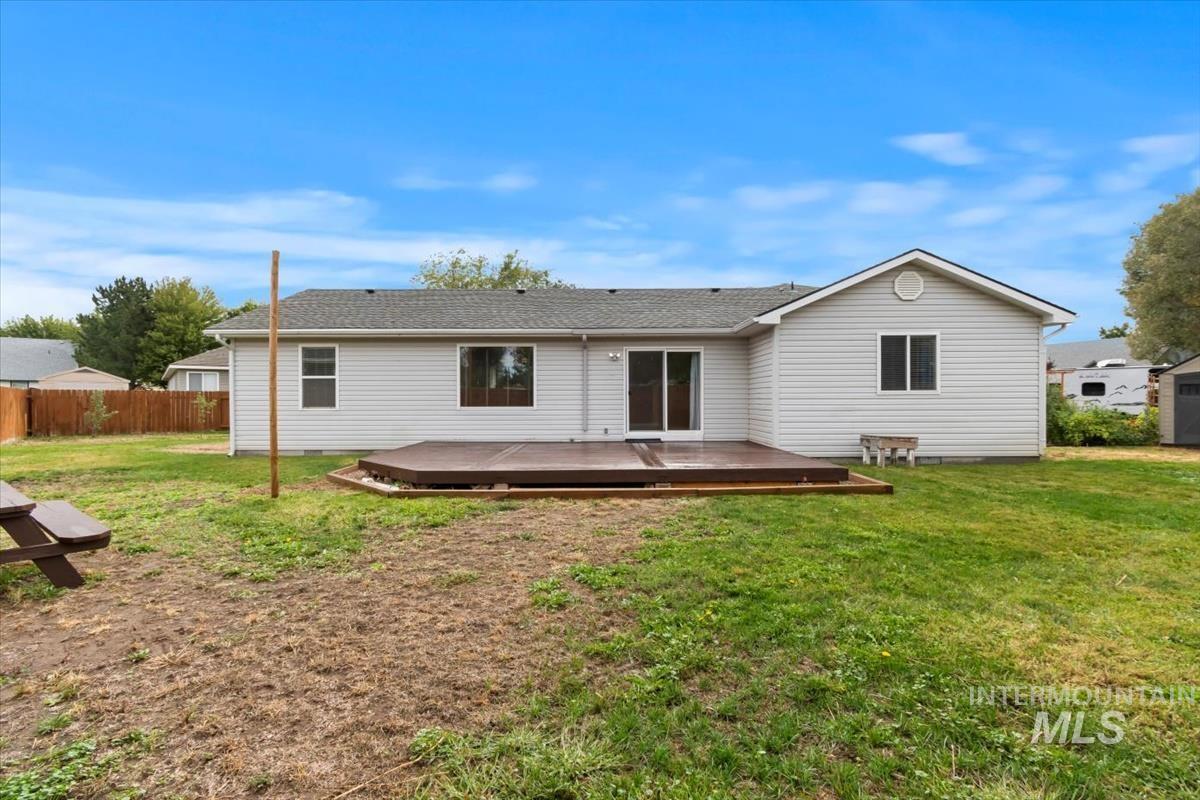Tucked at the end of a peaceful cul-de-sac on a spacious ¼-acre lot, this home is a rare find having NO HOA fees, RV/boat parking, and space for all your toys without paying for storage! Built in 2005, this 3-bed, 2-bath home spans 1,618 sq ft with hardwood floors, wainscoting accents, and vaulted ceilings creating an inviting, open feel. The kitchen with stainless steel appliances, has a breakfast bar, pantry, and a great amount of storage! The primary suite offers a walk-in closet, his and hers vanities, walk-in shower, and a soaking garden tub—your own private retreat! Two additional bedrooms provide flexibility for guests, an office, or hobbies. Step outside to a large raised deck overlooking a spacious fenced backyard—a true outdoor retreat complete with young fruit trees, garden beds, and a storage or gardening shed. There’s plenty of room to entertain, relax, or simply enjoy the open air in your own private haven. The 3-car garage and wide side access make parking easy for your RV, boat, &/or trailer etc. Located in a quiet, sidewalk-lined neighborhood just a 2-minute walk to Legacy Park, near schools, shopping, and dining—plus only 20 minutes from Mountain Home Air Force Base. Spacious, well cared-for, and impossible to find at this price—this one’s worth moving fast for! Please click the tour link and see the 3D tour and park photos.