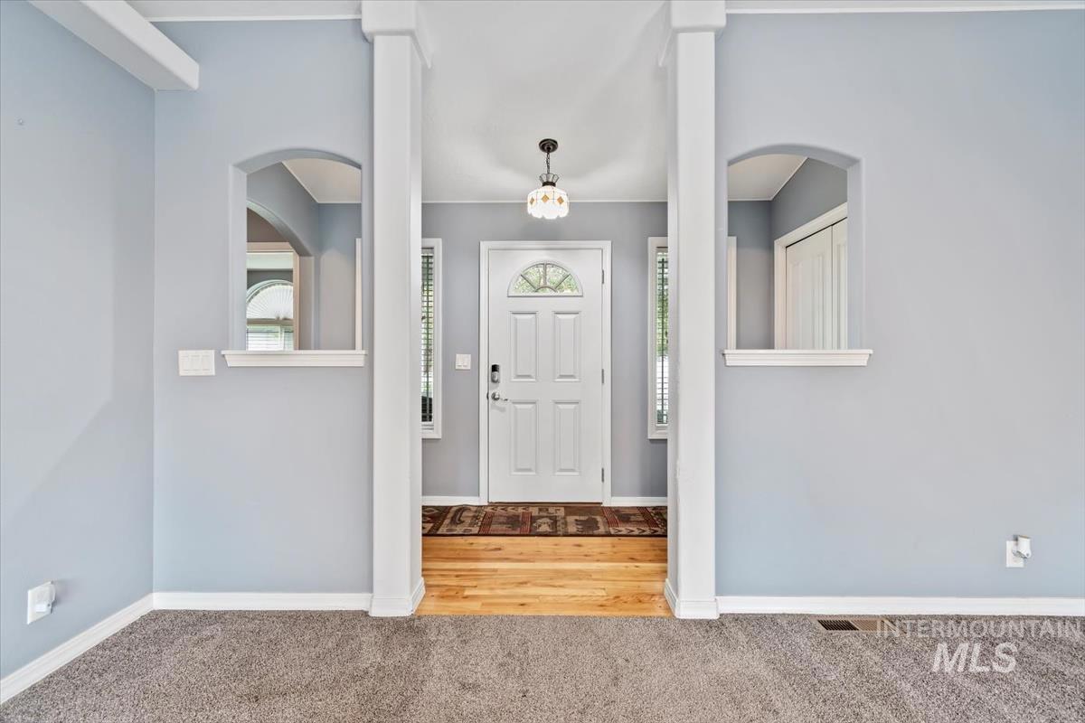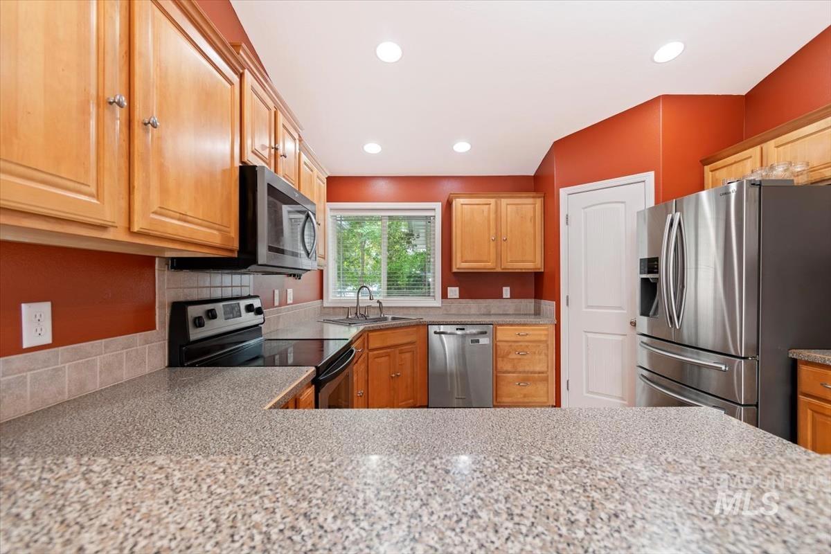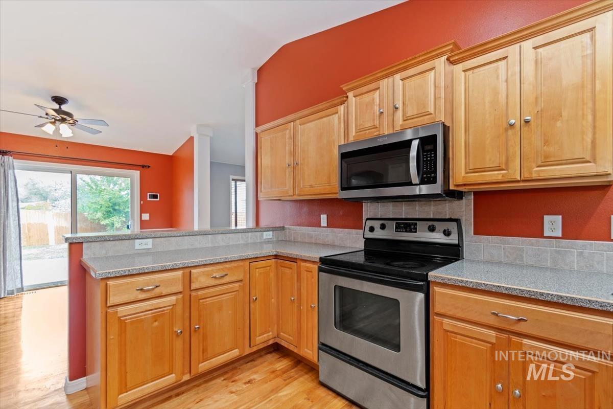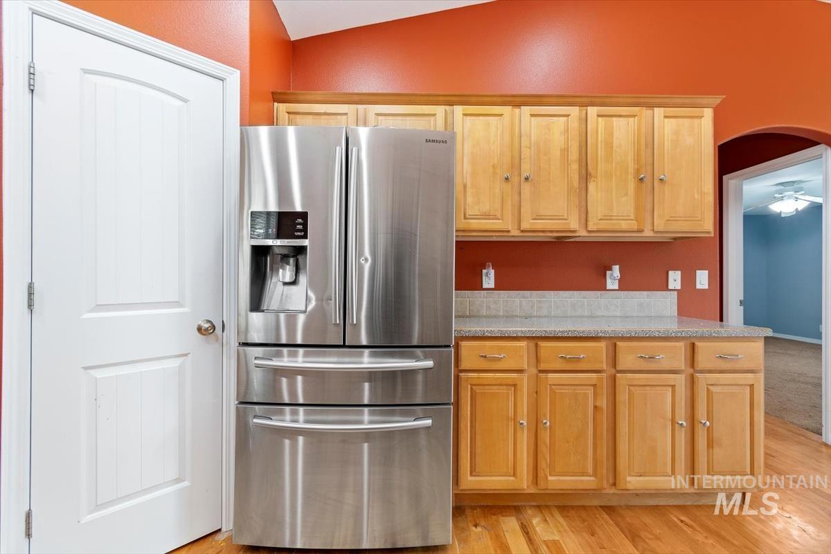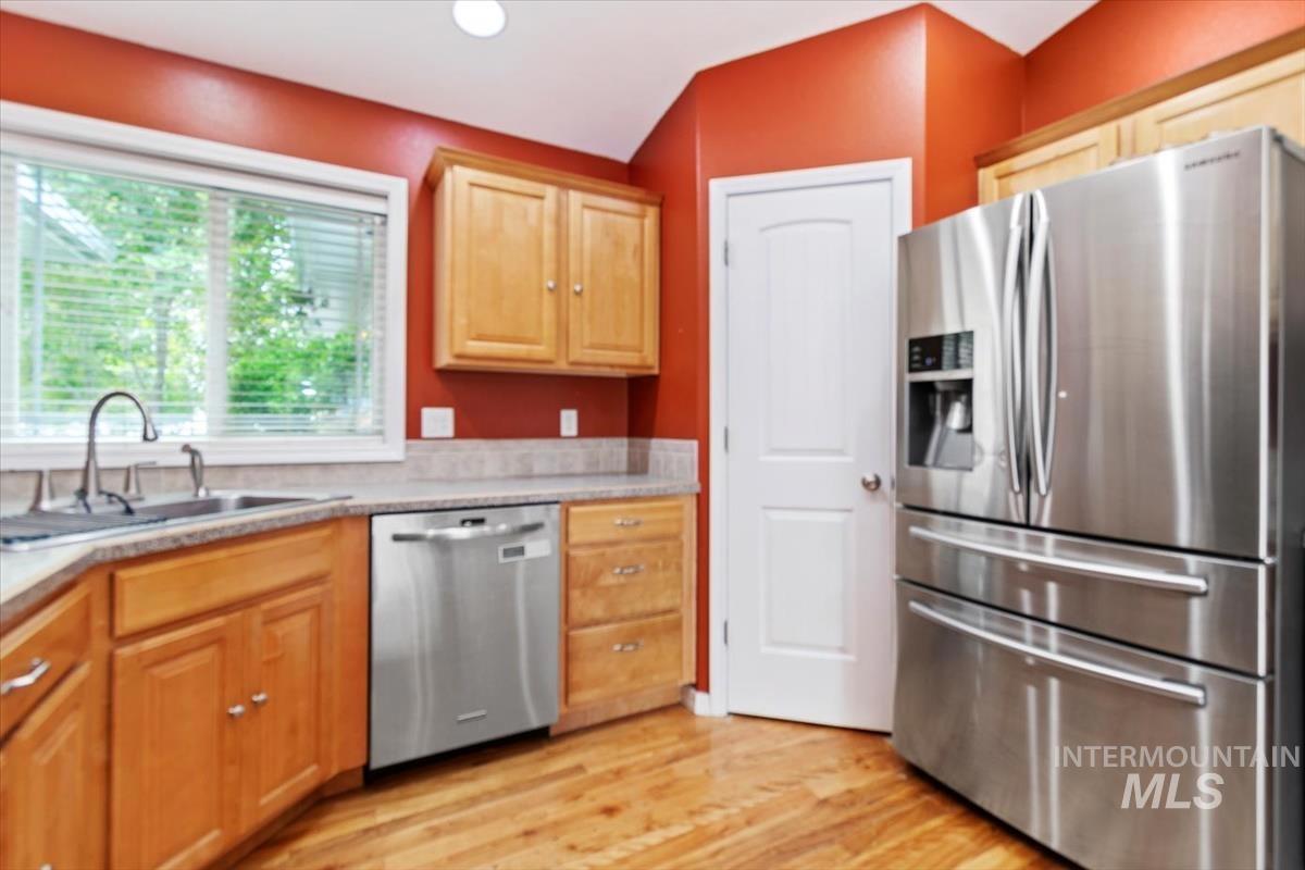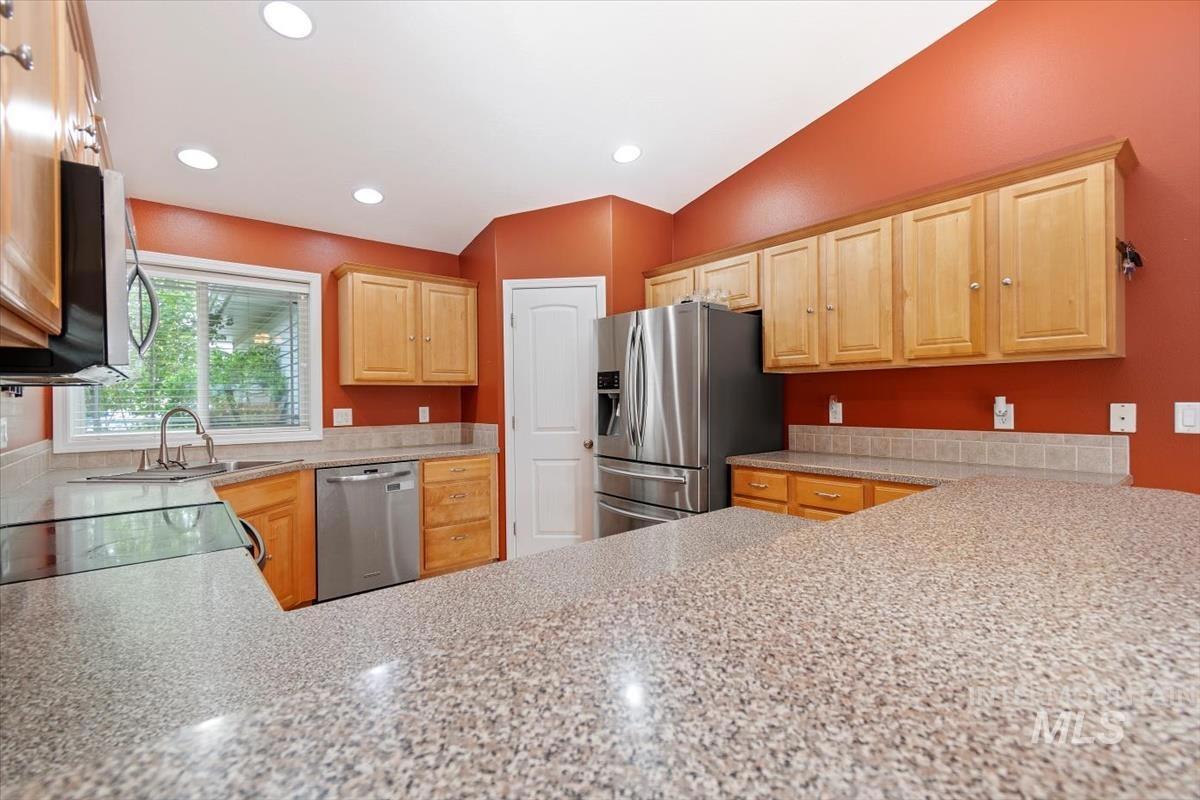 Tucked at the end of a peaceful cul-de-sac on a spacious ¼-acre lot, this home is a rare find having NO HOA fees, RV/boat parking, and space for all your toys without paying for storage! Built in 2005, this 3-bed, 2-bath home spans 1,618 sq ft with hardwood floors, wainscoting accents, and vaulted ceilings creating an inviting, open feel. The kitchen with stainless steel appliances, has a breakfast bar, pantry, and a great amount of storage! The primary suite offers a walk-in closet, his and hers vanities, walk-in shower, and a soaking garden tub—your own private retreat! Two additional bedrooms provide flexibility for guests, an office, or hobbies. Step outside to a large raised deck overlooking a spacious fenced backyard—a true outdoor retreat complete with young fruit trees, garden beds, and a storage or gardening shed. There’s plenty of room to entertain, relax, or simply enjoy the open air in your own private haven. The 3-car garage and wide side access make parking easy for your RV, boat, &/or trailer etc. Located in a quiet, sidewalk-lined neighborhood just a 2-minute walk to Legacy Park, near schools, shopping, and dining—plus only 20 minutes from Mountain Home Air Force Base. Spacious, well cared-for, and impossible to find at this price—this one’s worth moving fast for! Please click the tour link and see the 3D tour and park photos.