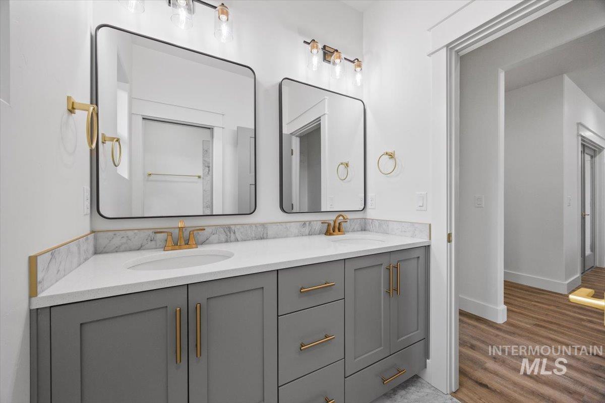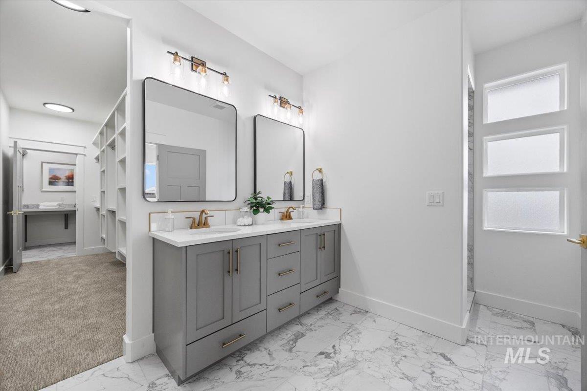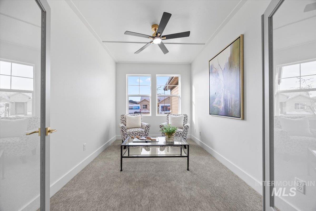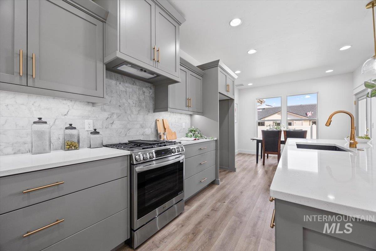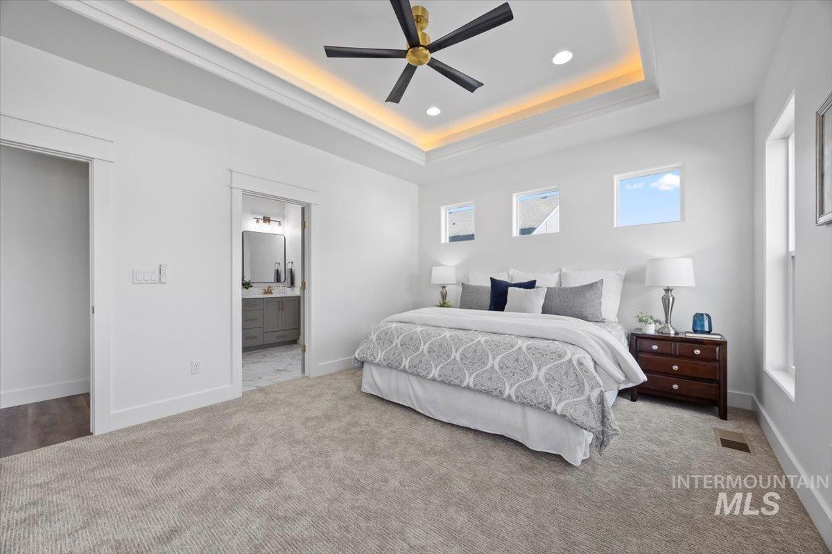 Ask about our current Fall promo! Introducing The Denali by Sunrise Home! This thoughtfully designed single-level residence offers an open-concept layout, ideal for entertaining. The great room stands out with its impressive 10-foot coffered ceilings accented with beams and large windows, allowing natural light to flood the main living areas. Designed with functionality in mind, the split-bedroom floor plan includes three spacious bedrooms and a generous office space. The kitchen is a chef’s dream, featuring custom cabinetry with plenty of storage, quartz countertops, a full-tile backsplash, stainless steel appliances, and a sizable walk-in pantry. The primary suite is a true retreat, complete with dual vanities and a beautifully tiled walk-in shower. The home also has an oversized 42-foot deep RV bay, providing ample space for all your storage needs, nearly 1,000 sq. ft. of garage space! Step outside to enjoy fully landscaped front and back yards with an automated sprinkler system. Nestled in Emmett’s Dagger Falls Subdivision.