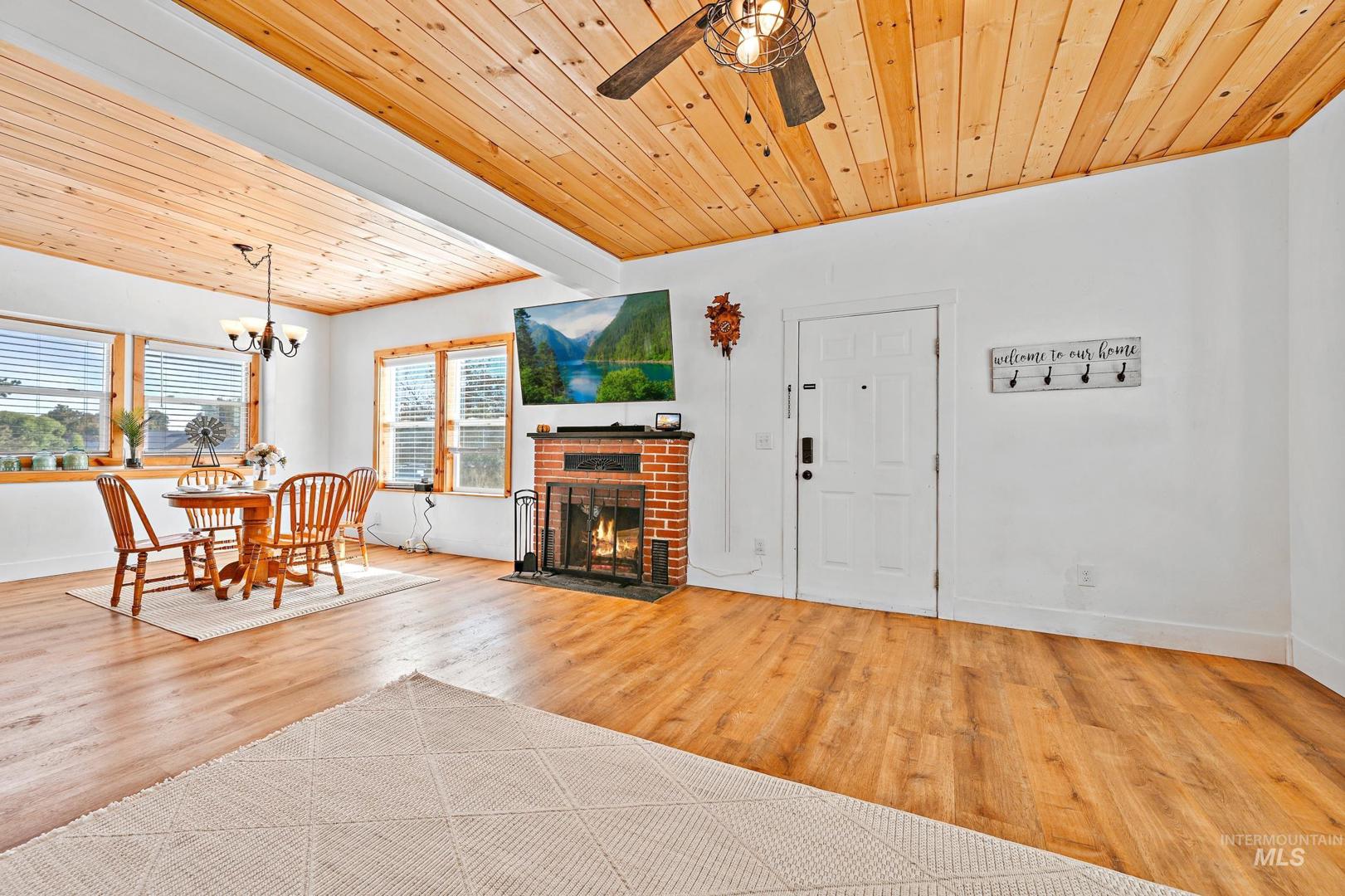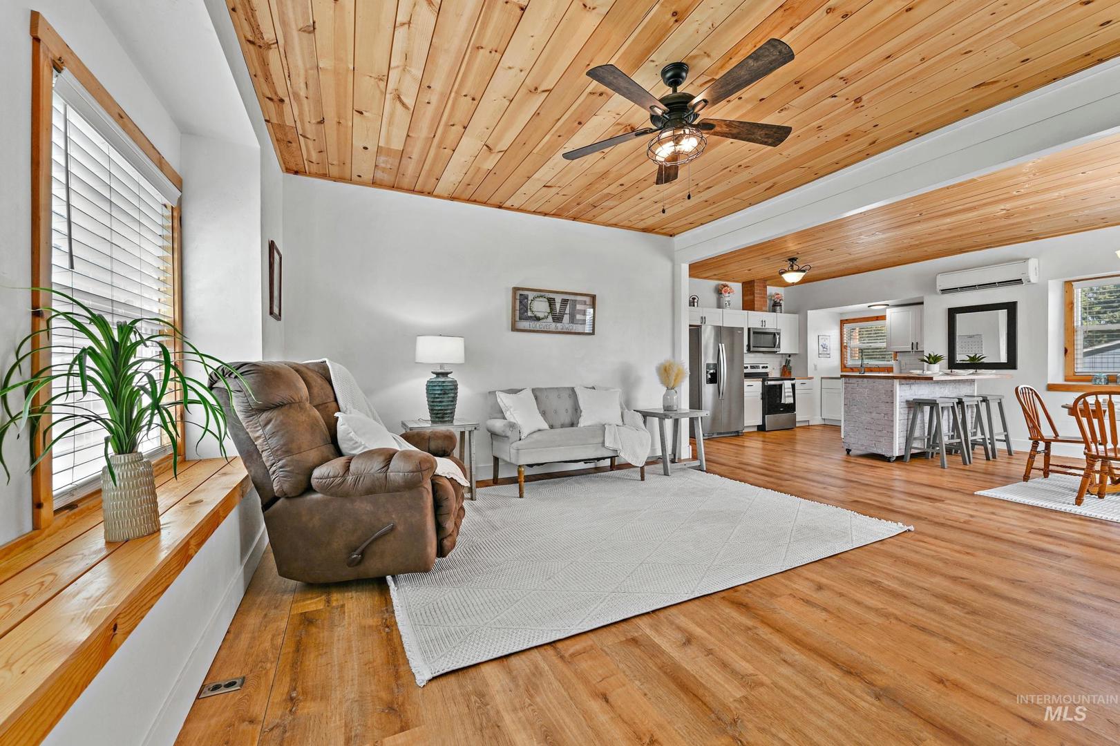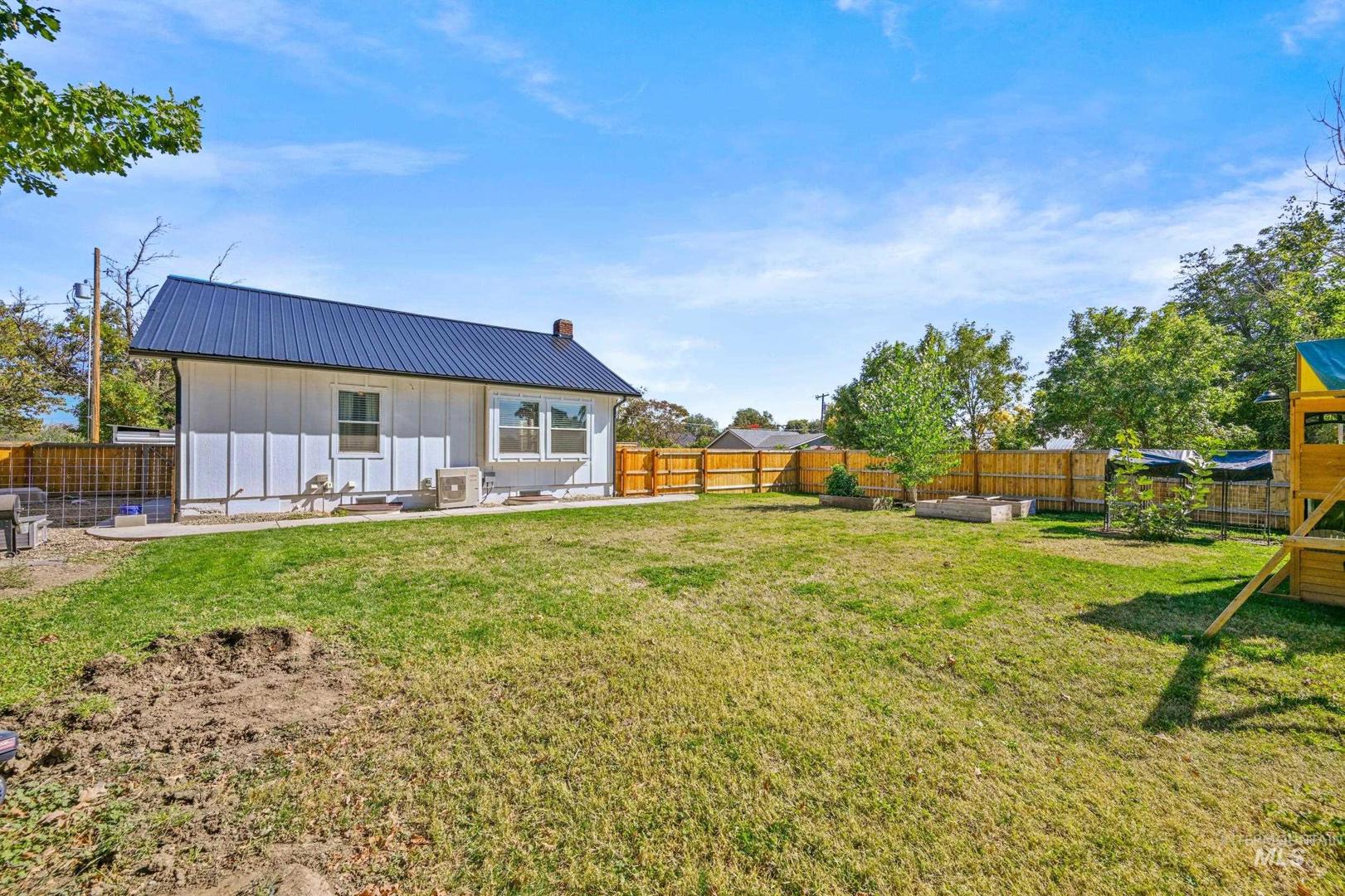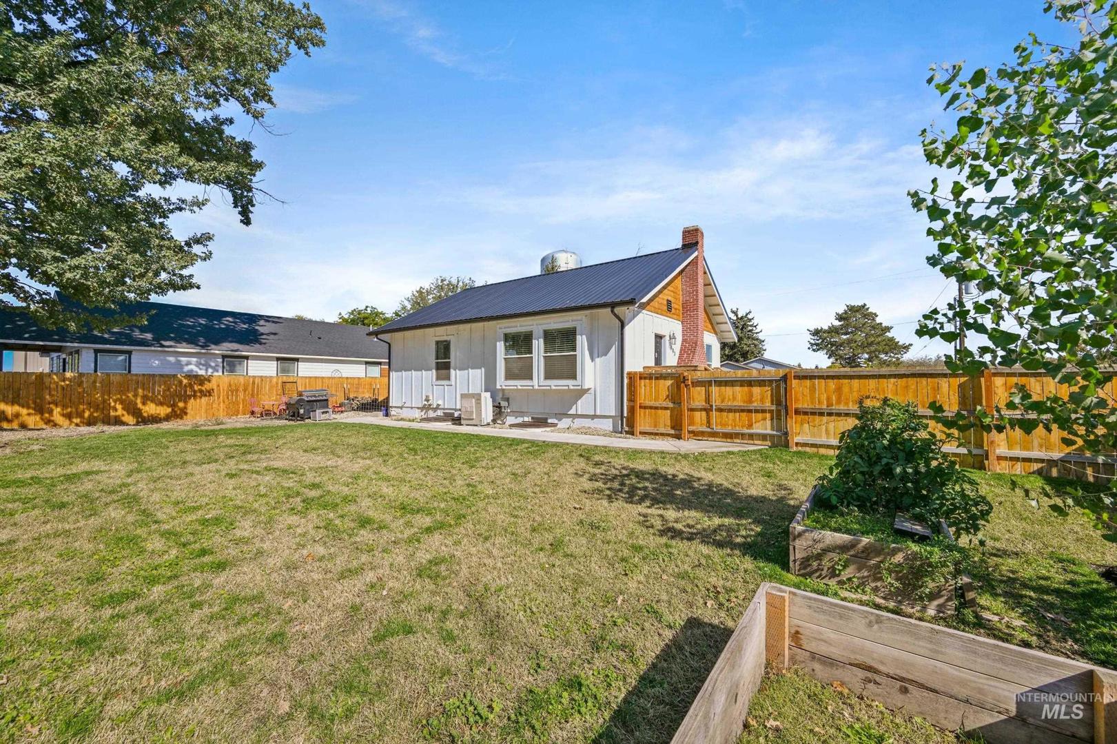 The seller is offering a $5,000.00 credit/allowance at closing on this beautifully remodeled farmhouse, situated on a spacious corner lot in the heart of Parma! This gorgeous 3 bedroom, 2.5 bath home blends timeless charm with modern updates throughout with the primary suite on the main floor. Enjoy an open, light-filled floor plan featuring pine shiplap ceilings, barn doors and a cozy wood burning fireplace. The kitchen offers updated cabinetry, a mobile island and contemporary finishes with all appliances included. Recent upgrades include new insulation, electrical, plumbing, ductless mini split system, metal roof, siding, water and sewer lines, LVP flooring and a new sprinkler system. Bring your chickens and RV to this move in ready gem that close to schools, parks and downtown amenities.