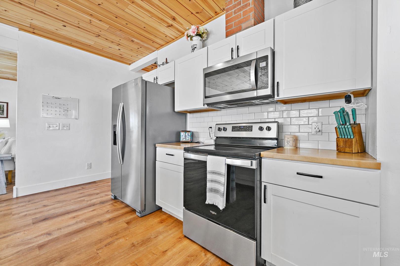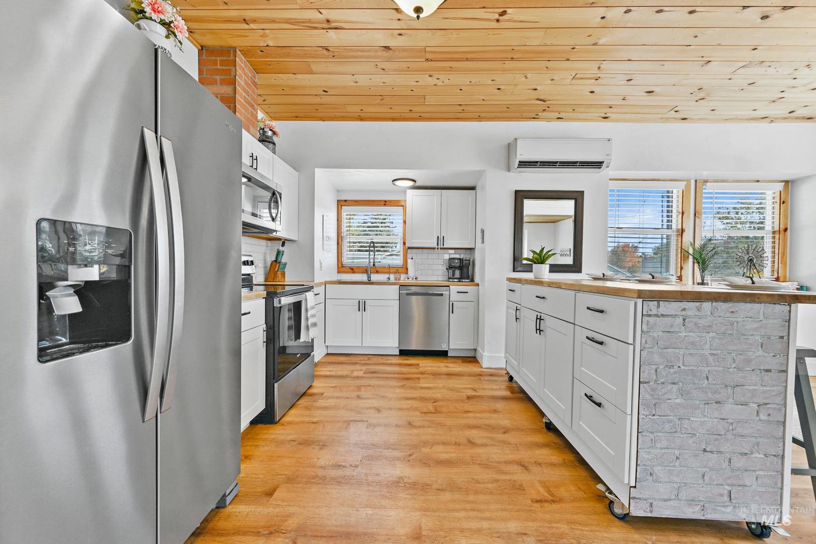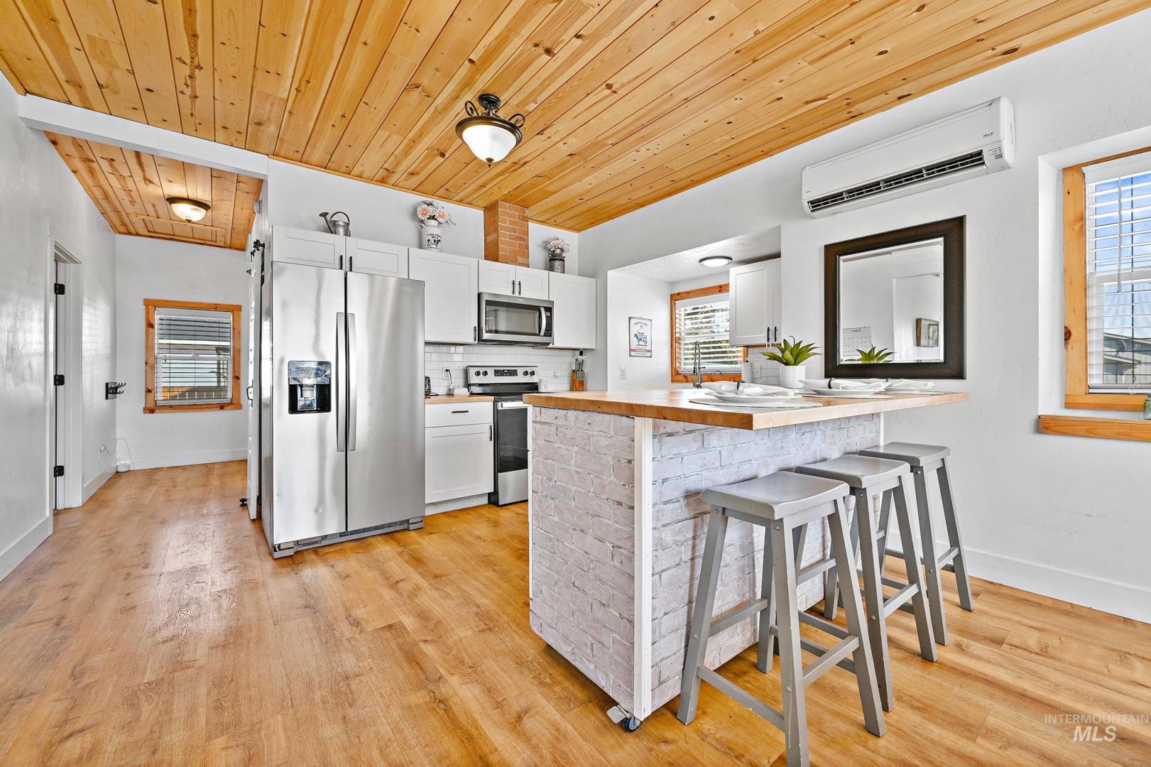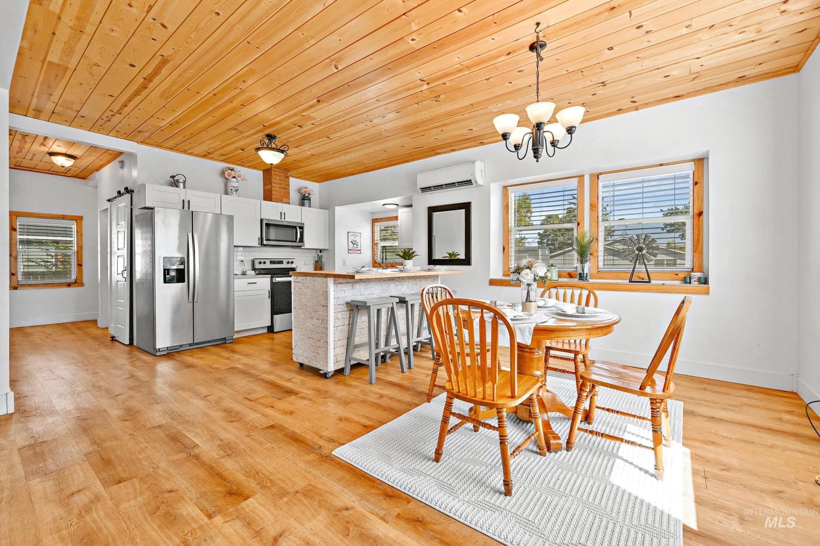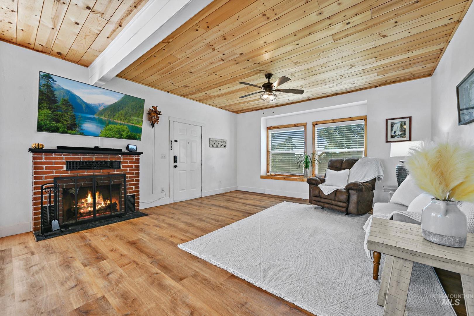 The seller is offering a $5,000.00 credit/allowance at closing on this beautifully remodeled farmhouse, situated on a spacious corner lot in the heart of Parma! This gorgeous 3 bedroom, 2.5 bath home blends timeless charm with modern updates throughout with the primary suite on the main floor. Enjoy an open, light-filled floor plan featuring pine shiplap ceilings, barn doors and a cozy wood burning fireplace. The kitchen offers updated cabinetry, a mobile island and contemporary finishes with all appliances included. Recent upgrades include new insulation, electrical, plumbing, ductless mini split system, metal roof, siding, water and sewer lines, LVP flooring and a new sprinkler system. Bring your chickens and RV to this move in ready gem that close to schools, parks and downtown amenities.