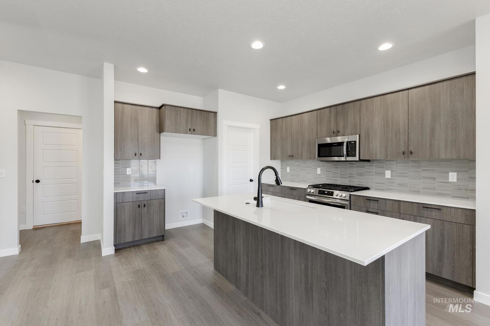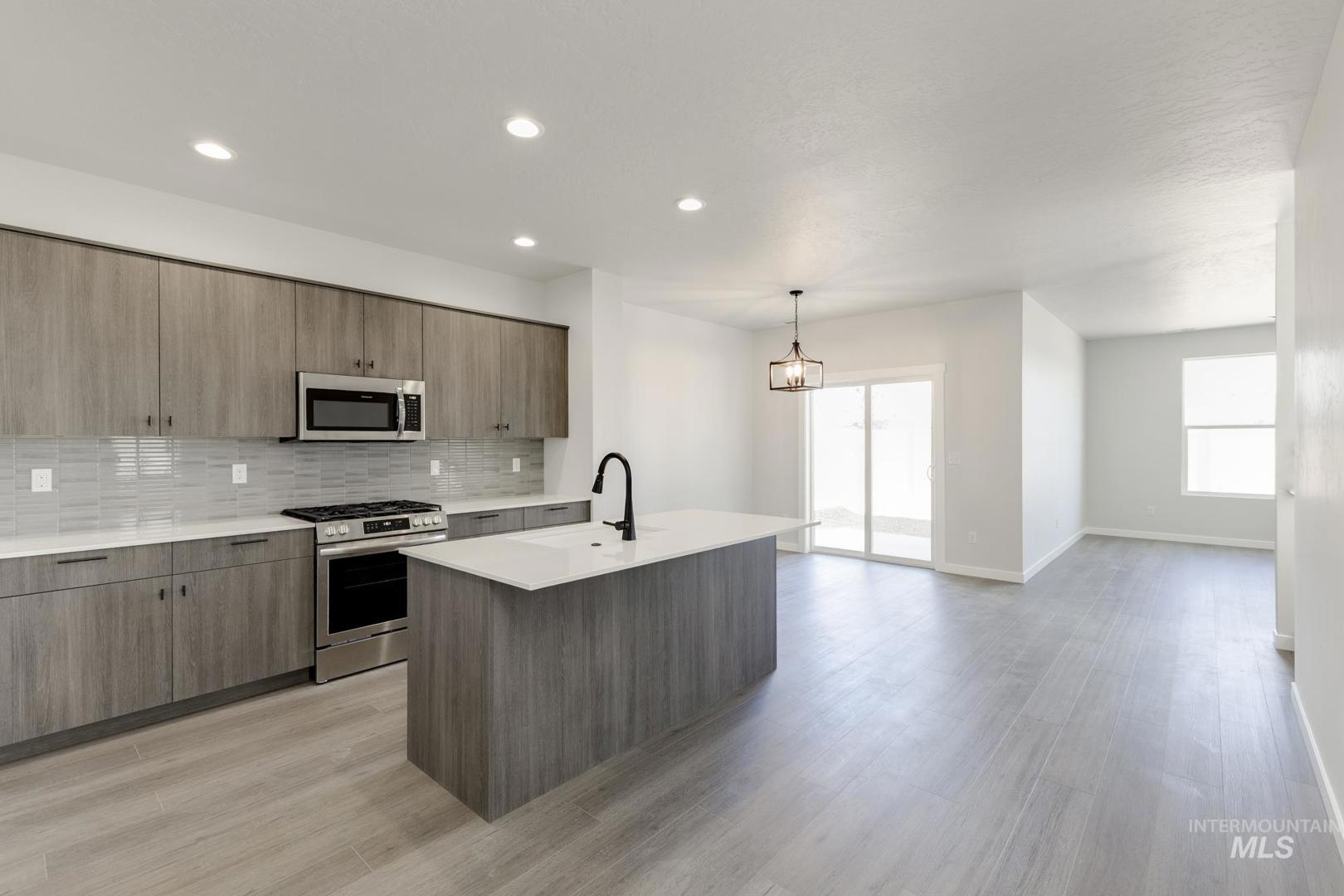 Fall in Love with Low Rates! Promotional rate as low as 2.99%. This new home located in beautiful Meridian, Idaho has all the comforts you need & more! The brand new Eliot 2318 is waiting for you! The main level`s open concept flows smoothly through the entryway, kitchen, dining area, and living room. The added bonus of a downstairs den is perfect for an office or can easily be used as a guest space. The kitchen boasts upgraded finishes, including stainless steel appliances, a gas range, and stylish solid surface countertops. Upstairs, all 4 bedrooms await, including the primary suite with a walk-in closet and en suite bathroom. Work, play, or get creative—the upstairs loft is yours to turn into whatever you want. The home also features large windows that invite natural light throughout, making every room feel bright and airy. Enjoy the flexibility of a home designed to fit your lifestyle. Photos are similar. All selections are subject to change without notice, please call to verify.