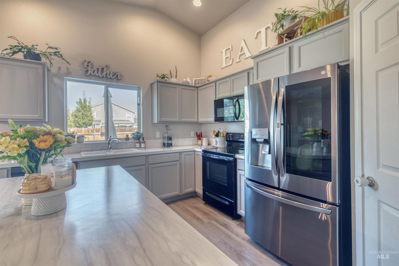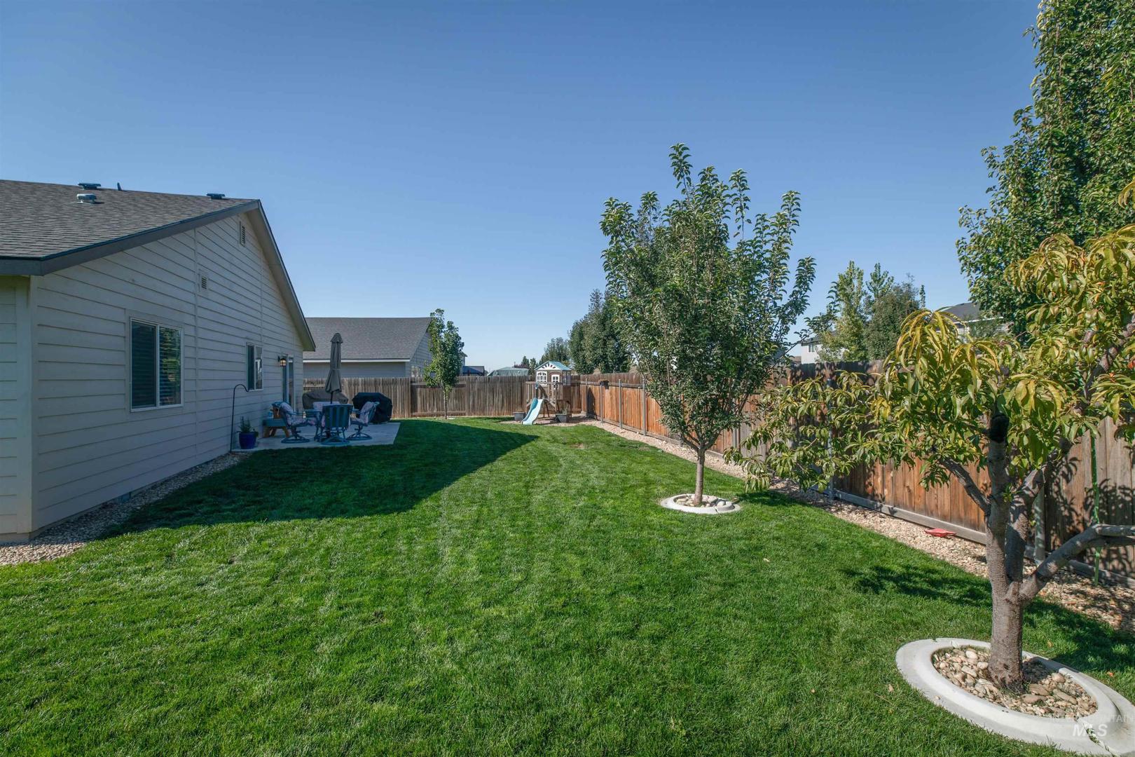 Better than new! Thousands of dollars in upgrades already done for you! This beautifully maintained single-level home offers 4 beds, 2 baths, 3 car garage, and 1860 sqft of open living space in one of Middleton`s most desirable neighborhoods. Only one set of meticulous owners since new, and it shows. Enjoy already developed features; a fully fenced backyard, complete landscaping with automatic sprinklers, flourishing garden area, 3 fruit trees, and an extended concrete patio, ideal for entertaining, relaxing and outdoor leisure time. All of these improvements are already complete, saving you thousands compared to a brand new build that starts with bare dirt and no fencing or irrigation. Inside the home, enjoy vaulted ceilings and an airy great room connected seamlessly to the kitchen and dining area with a spacious island and stainless appliances. The private primary suite features dual vanities and a walk in closet. Great Neighborhood, located moments from Middleton Soccer Complex, parks, schools, and town. This home offers a perfect blend of comfort, value, and small town charm, move in ready and waiting for you! COME AND SEE: OPEN HOUSE Saturday 1-4