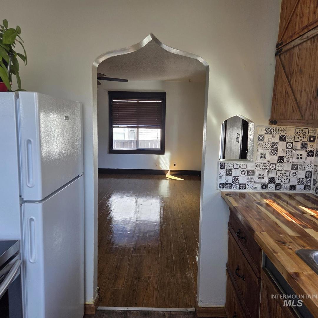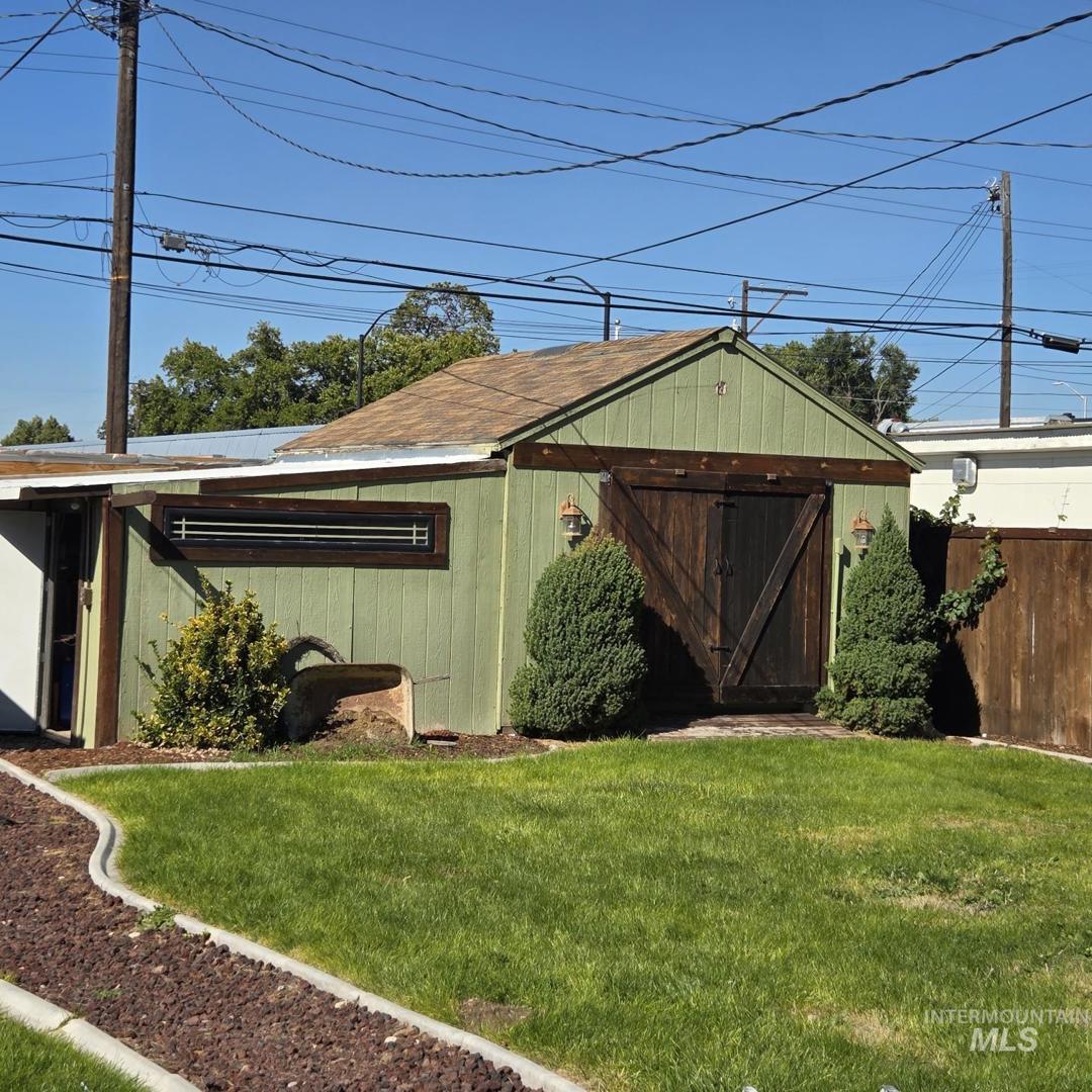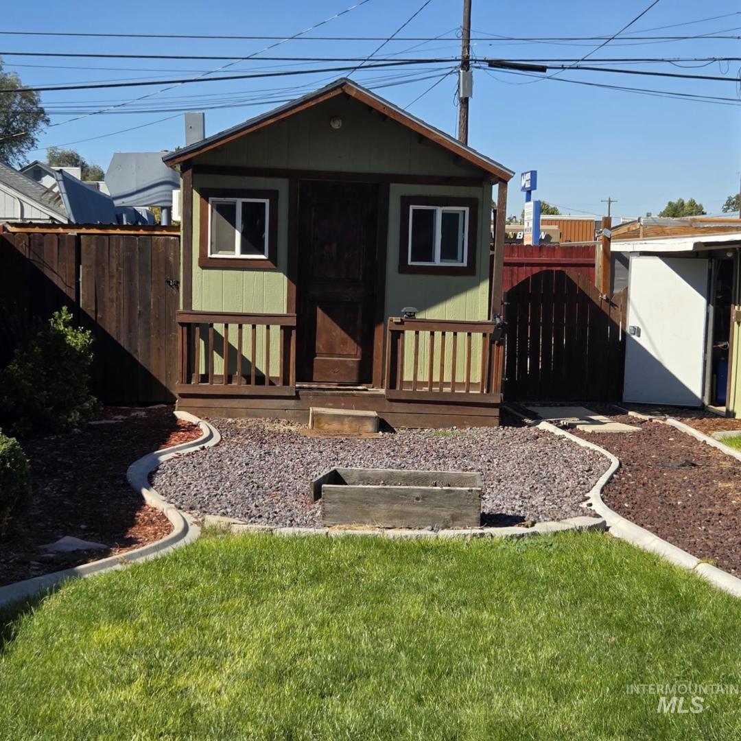 Opportunity knocks! Step into this beautifully updated 3 bedroom, 2 bathroom, 2 kitchen stucco home w/ NO CC&R`s. Both bathrooms have walk-in showers. 2-Air conditioned shops [9`X16` & 14`X16` (this one has roll up doors on front and back)], an air conditioned She-shed (10`X12`), plus a storage shed and alley access to ample parking for your toys.