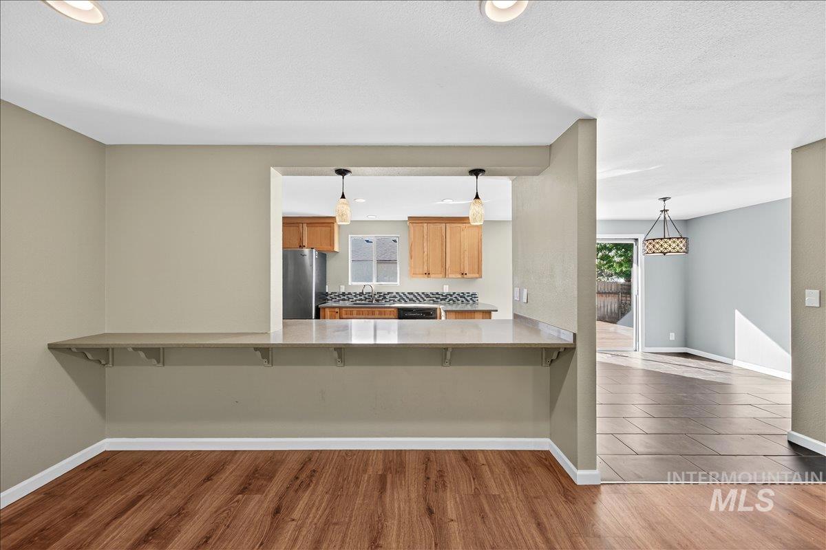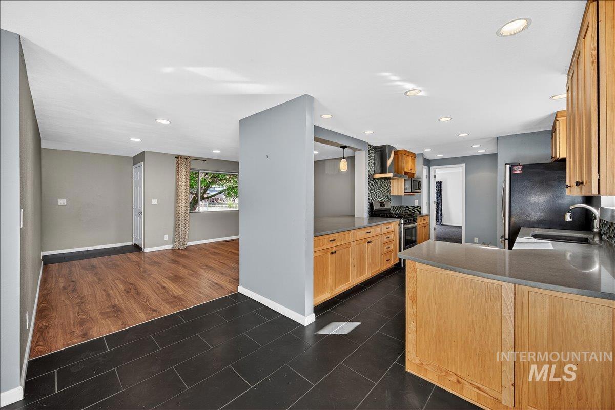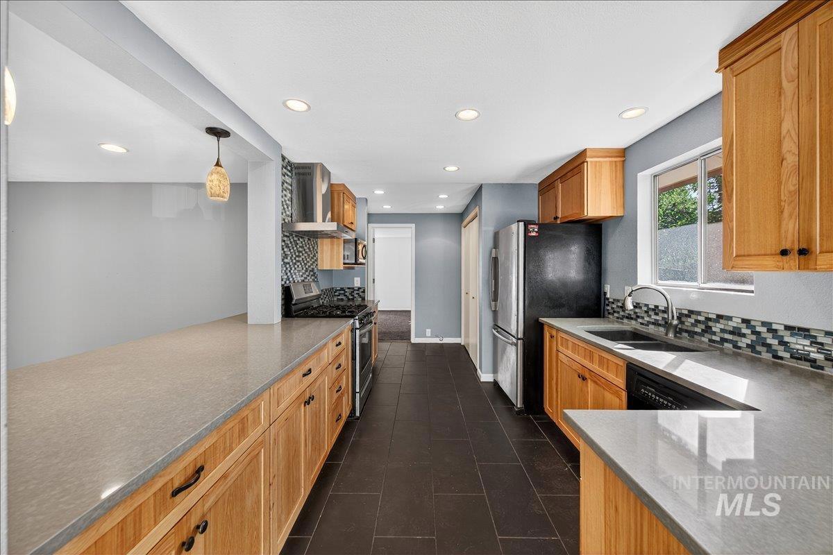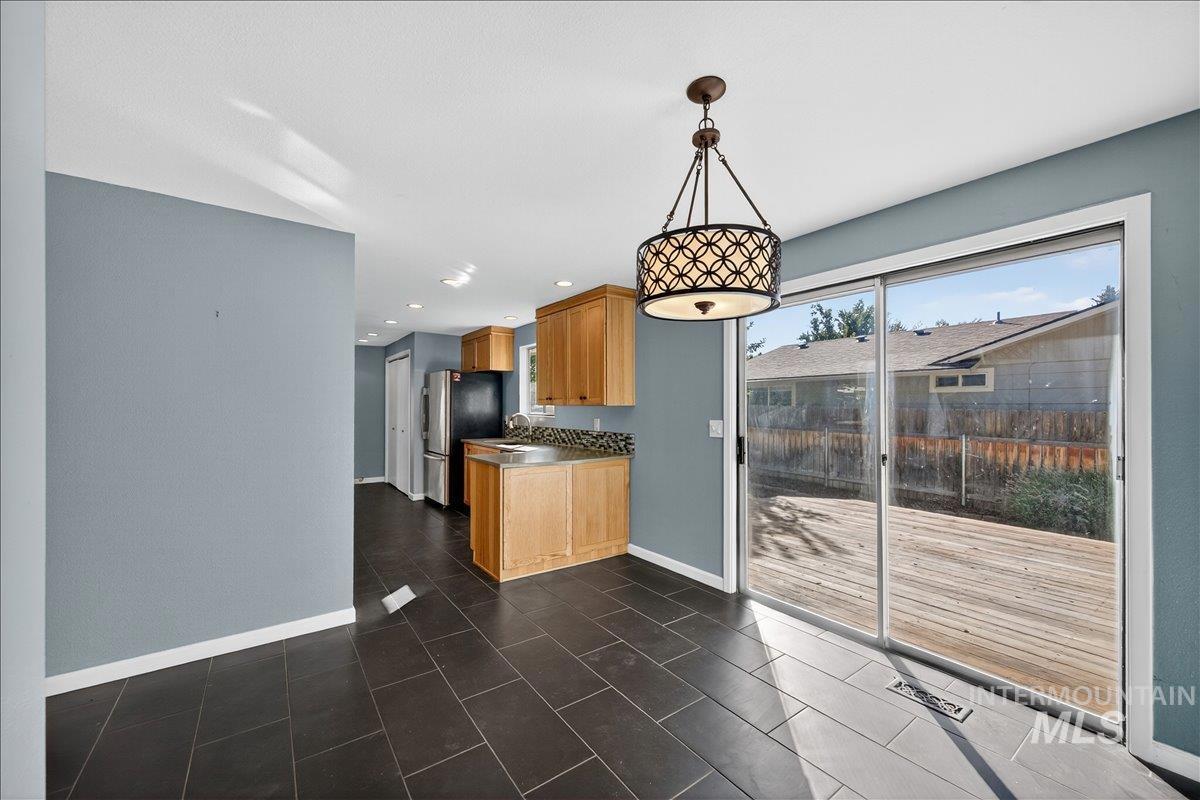 Nestled in a quiet, tree-lined neighborhood just minutes from downtown Boise, Boise State University, and the scenic Boise River, this updated single-family home offers both tranquility and convenience. Boasting 3 bedrooms and 2 remodeled bathrooms, the home provides comfortable living throughout. The thoughtfully renovated primary bathroom is a true retreat, offering modern finishes and a spa-like atmosphere. The kitchen has been upgraded with sleek countertops, contemporary cabinetry, and a breakfast bar perfect for casual meals. It opens seamlessly to the dining area, creating a flow that`s ideal for entertaining or everyday living. With two generous living areas, including a welcoming front living room and a tucked-away family room, there`s plenty of space for relaxation or hosting guests. The pass-through counter from the kitchen to the living room is perfect for serving drinks and appetizers while enjoying the company of friends and family.This home offers stylish updates, functional layout and location.