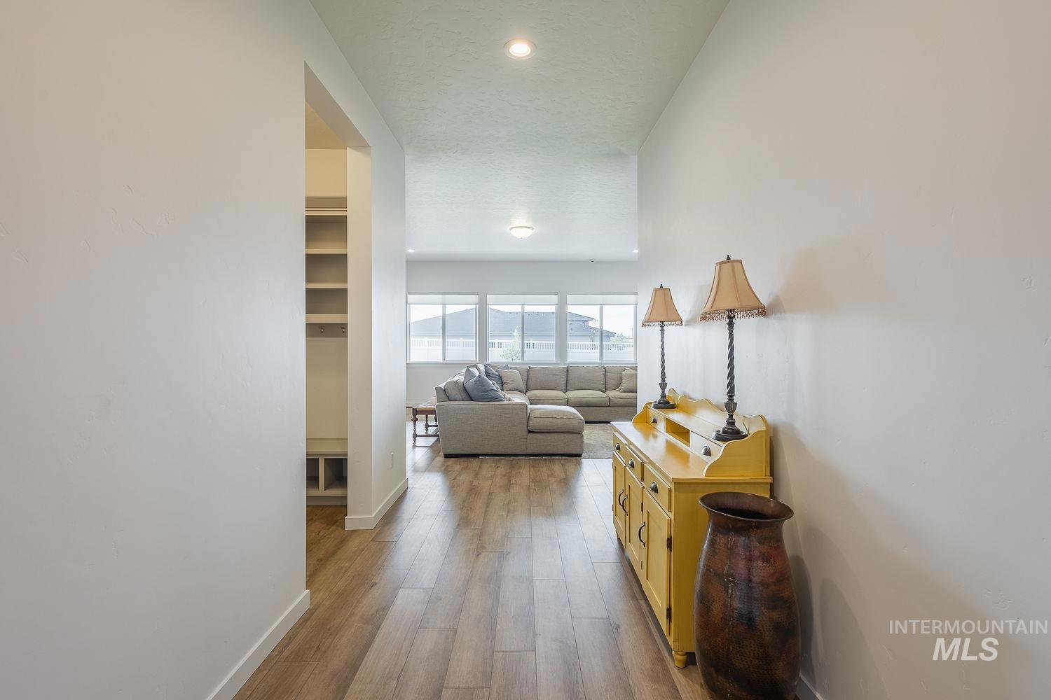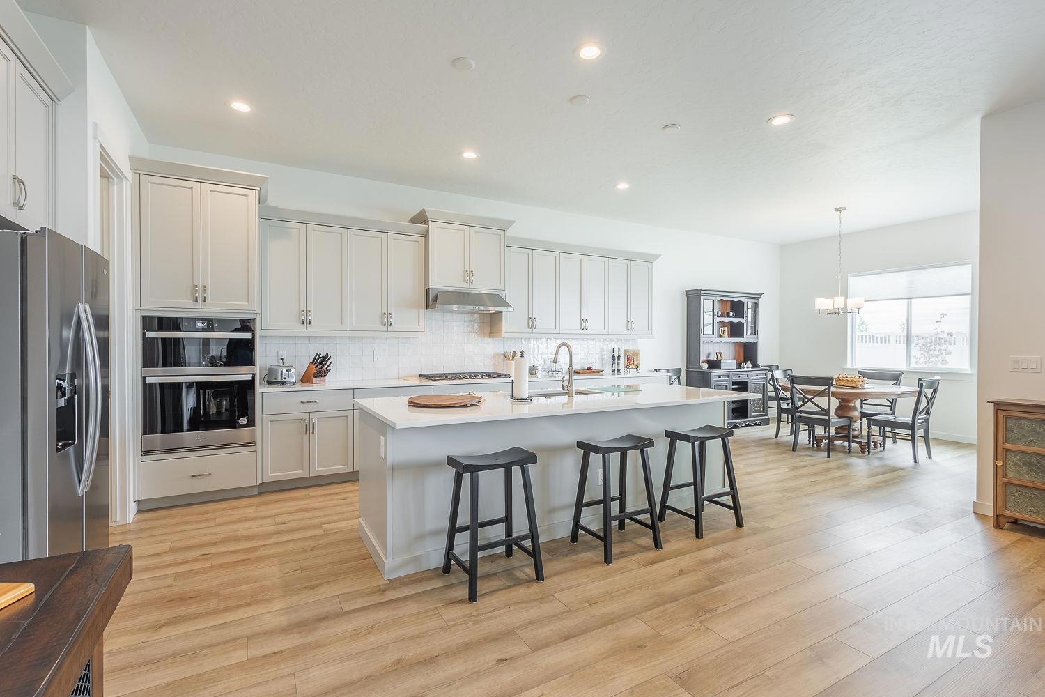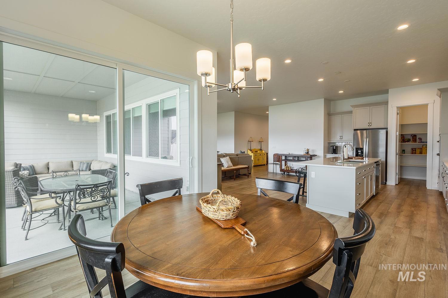 Seller is offering $10,000 in buyer closing costs! This thoughtfully crafted home perfectly balances elegance and everyday comfort. From the spacious foyer, you’re welcomed into an open-concept great room designed for both relaxation and entertaining. The gourmet kitchen showcases a large island, ideal for hosting gatherings, and a generous walk-in pantry to keep everything neatly organized. The casual dining area flows effortlessly to a covered patio, offering a comfortable space for year-round outdoor living with stunning mountain views. The luxurious primary suite features dual sinks, large walk-in closets, and a beautifully appointed bath for a true retreat experience. Additional highlights include a dedicated home office, a split three-car garage, and fully landscaped front and rear yards with added mow strips for easy maintenance. Located near Mallard Park, this community offers walking paths, a sparkling pool, and a pickleball court—ideal for recreation and connection. Inside, you’ll find no holes in the walls, a true blank canvas ready for your personal touch. This exceptional home offers refined living in a vibrant, amenity-rich neighborhood.
