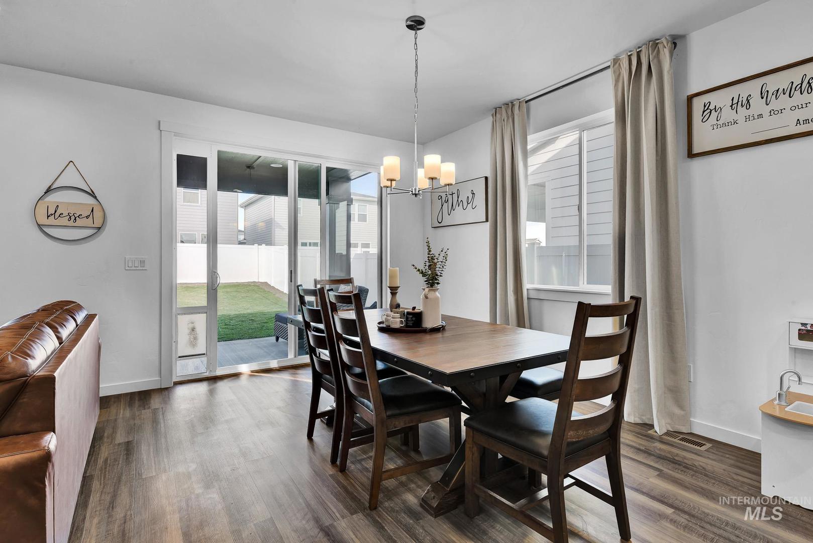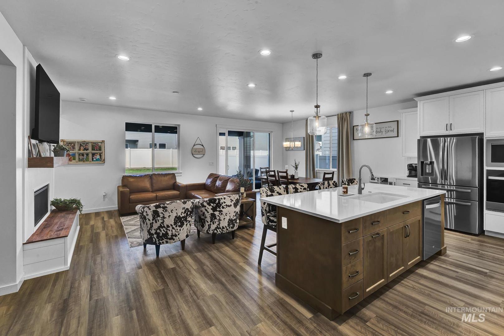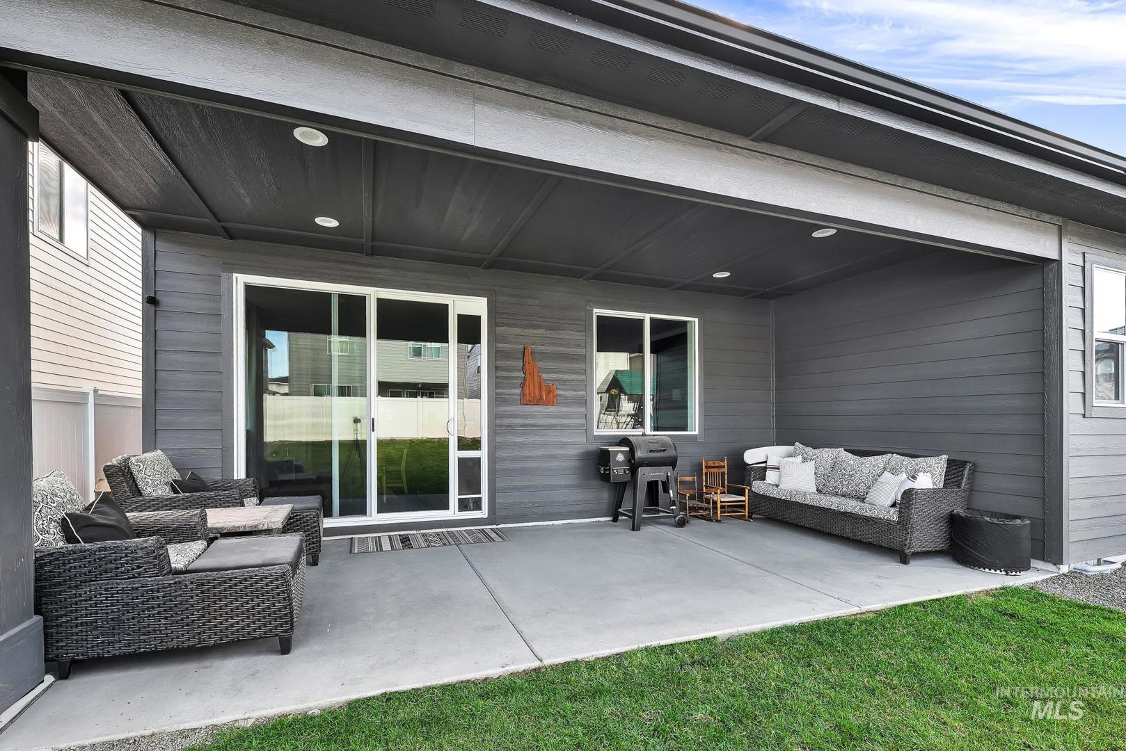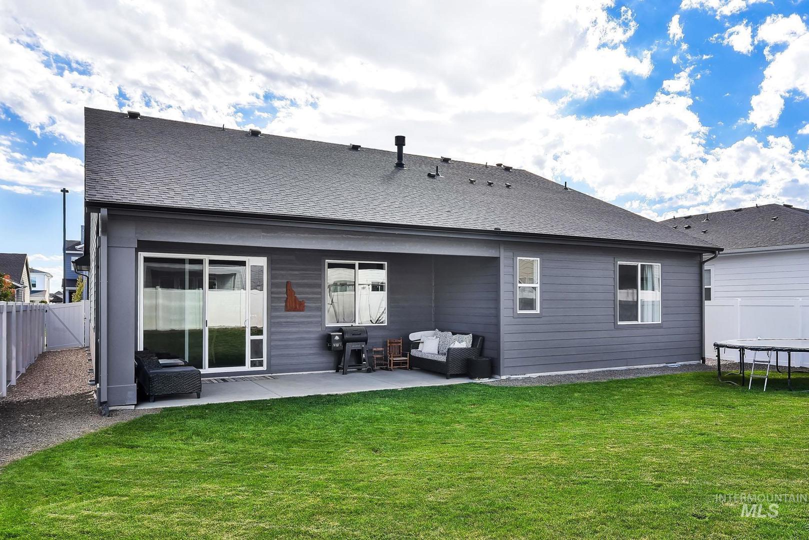 Welcome to this better than new, beautifully maintained home in sought-after South Meridian! Built just a year ago, this 3-bedroom + office home blends modern comfort with thoughtful design. The spacious, open layout features an updated fireplace with a custom hearth, perfect for cozy evenings. Enjoy the large backyard with a covered patio, ideal for entertaining or relaxing outdoors. The deep two-car garage offers extra storage or room for your toys. Located in a quiet community just outside the hustle and bustle, yet minutes from shopping, dining, and entertainment. Neighborhood amenities include a community pool, multiple parks, and a pickleball court. Don’t miss this one!
