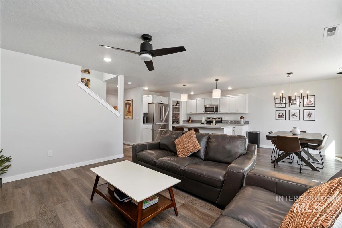 Welcome to this beautiful like new home in Meridian’s desirable Aegean Estates! Take advantage of the backyard landscaping, Fencing and blinds already added. Thoughtfully designed, it features 3 bedrooms, 2.5 baths, and an upstairs bonus room, offering flexible living space for a home office, playroom, or media room. The light-filled great room is the heart of the home, perfect for gathering and entertaining, and flows seamlessly into the kitchen where you’ll find a spacious island, stainless steel appliances, and a corner walk-in pantry. Upstairs, all bedrooms are tucked away for privacy, with the primary suite boasting abundant natural light, an ensuite bath with dual vanities, and a generous walk-in closet. Outside, the fully fenced backyard offers plenty of room to relax, play, or entertain, with garden space along the side of the home and endless opportunities to create your own backyard sanctuary.