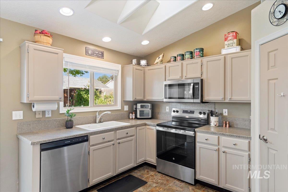 This beautiful 3-bedroom, 2-bath, 1124sf home features an attached 2-car garage, thoughtfully landscaped backyard oasis with vegetable garden and close proximity to schools and shopping. This light and bright home has a split-bedroom floorplan offering both privacy and versatility. Soaring ceilings in family room, spacious eat-in kitchen with pantry. Good sized bedrooms with plenty of closet space. Columbia Village has 4 swimming pools, racquetball court, fitness center, the Simplot ball fields, playground and community gathering spaces. A wonderful place to call home!