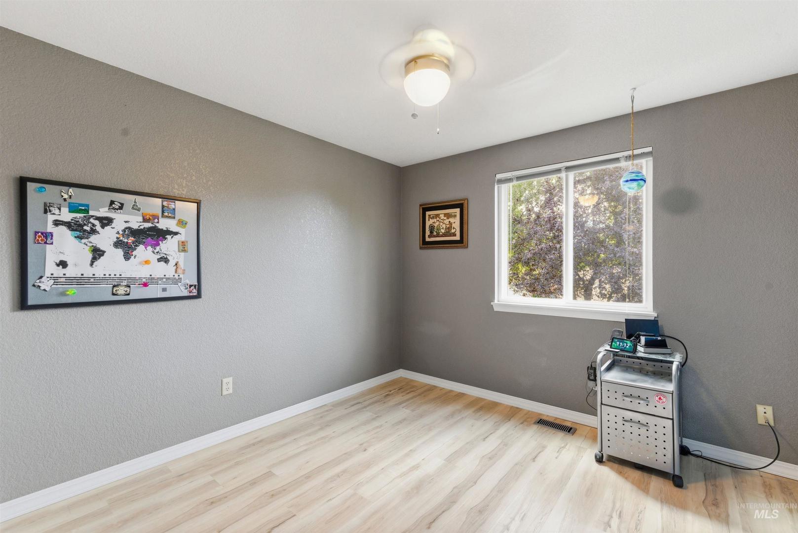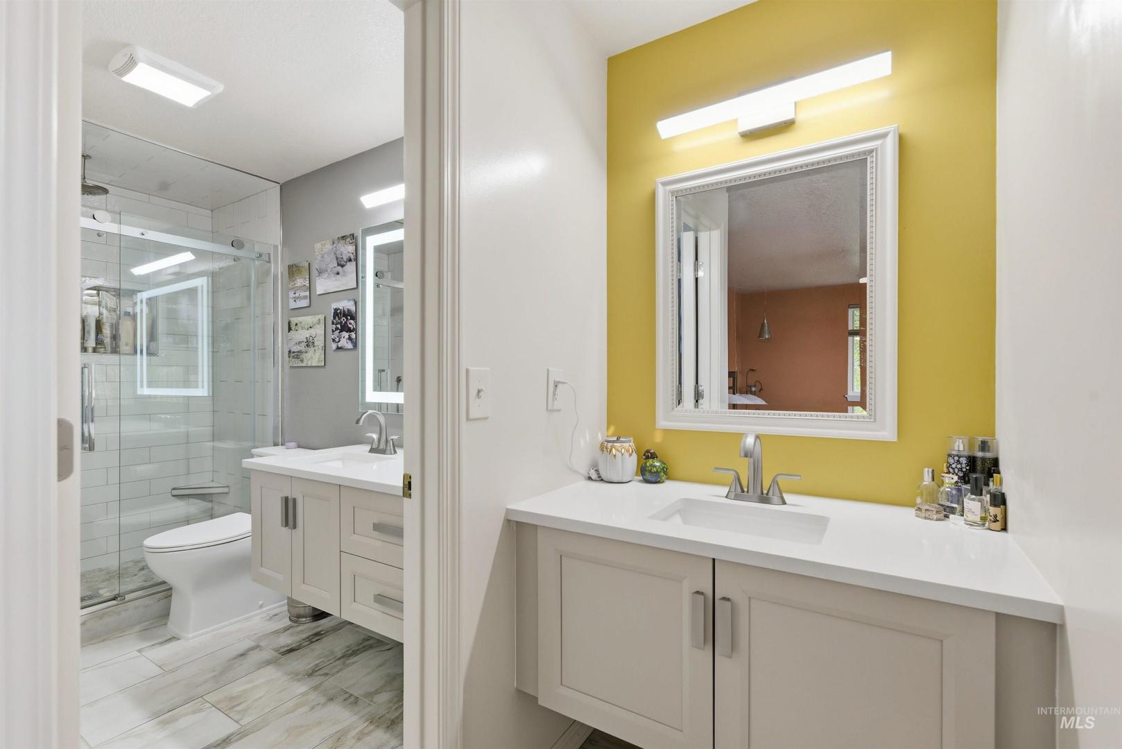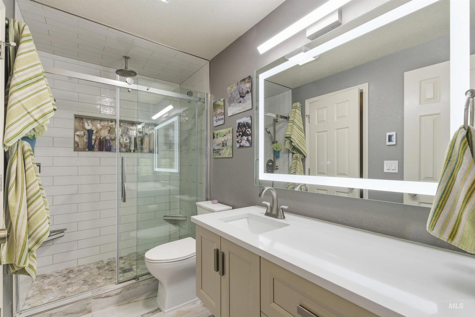Experience the new! This exceptionally updated home looks and feels like a kid again with new siding in 2017, a new roof in 2012, new windows, completely updated bathrooms, appliances, flooring, interior & exterior paint and more! Located at the end of a quiet street but so close to downtown Boise. Hyatt Hidden Lakes Reserve Park area is near by as well as terrific schools. Water is Capital Water District with no water meter, just a fixed monthly rate of $38/month in the summer and $18/month in the winter. New fencing 6 years ago with metal posts and solid construction. Storage shed with power, perfect for those shop projects or a possible man cave. Laundry space under the stairs includes bonus storage. The upstairs continental bath (accessed from the main bedroom or the hallway) is beautifully updated with a large tile shower, quartz countertop, undermount sink, heated & lighter mirror, and a heated tile floor. The two-story floor plan gives you even more space on the large pie shaped lot and provides for a terrific back yard. All with beautiful mature trees and landscaping. This one is definitely worth taking a look at!