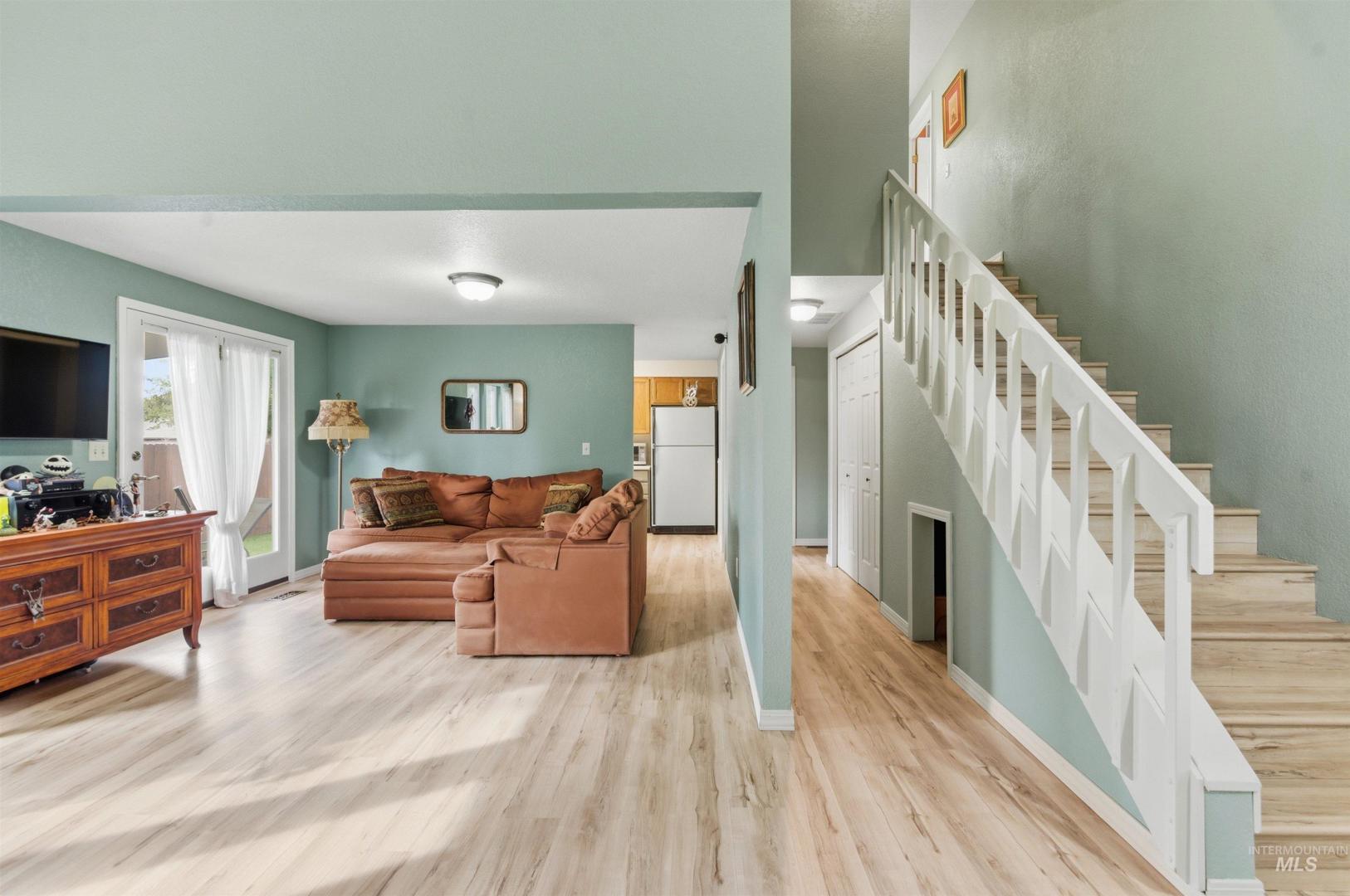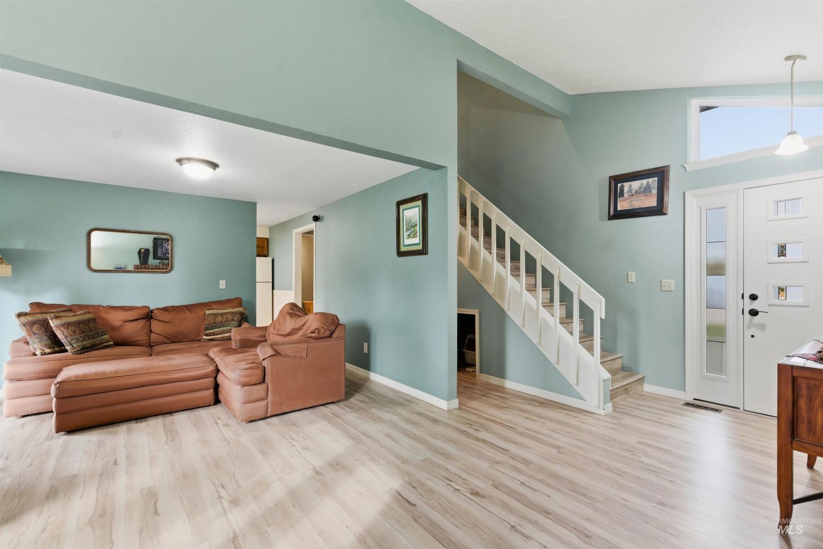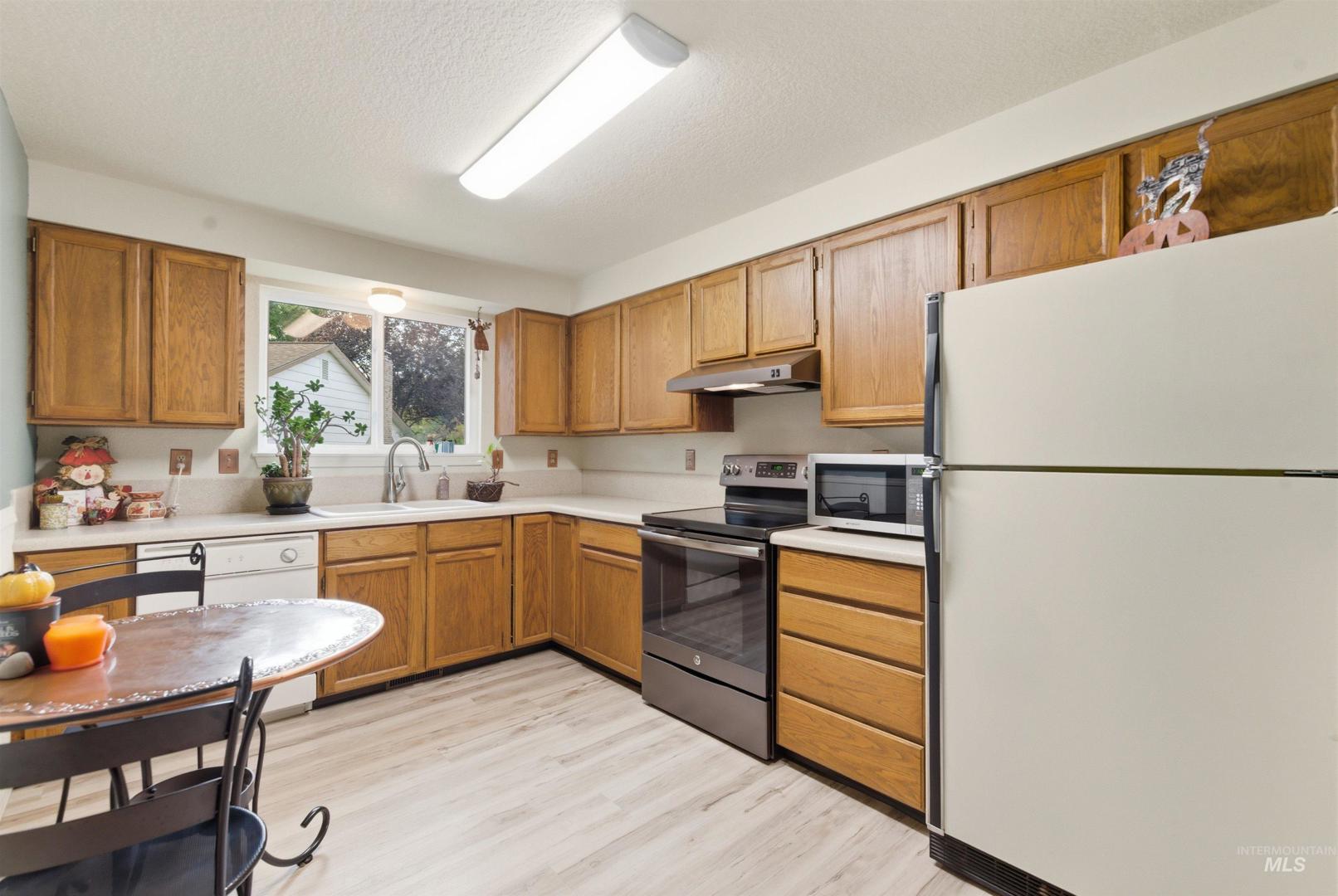 Experience the new! This exceptionally updated home looks and feels like a kid again with new siding in 2017, a new roof in 2012, new windows, completely updated bathrooms, appliances, flooring, interior & exterior paint and more! Located at the end of a quiet street but so close to downtown Boise. Hyatt Hidden Lakes Reserve Park area is near by as well as terrific schools. Water is Capital Water District with no water meter, just a fixed monthly rate of $38/month in the summer and $18/month in the winter. New fencing 6 years ago with metal posts and solid construction. Storage shed with power, perfect for those shop projects or a possible man cave. Laundry space under the stairs includes bonus storage. The upstairs continental bath (accessed from the main bedroom or the hallway) is beautifully updated with a large tile shower, quartz countertop, undermount sink, heated & lighter mirror, and a heated tile floor. The two-story floor plan gives you even more space on the large pie shaped lot and provides for a terrific back yard. All with beautiful mature trees and landscaping. This one is definitely worth taking a look at!