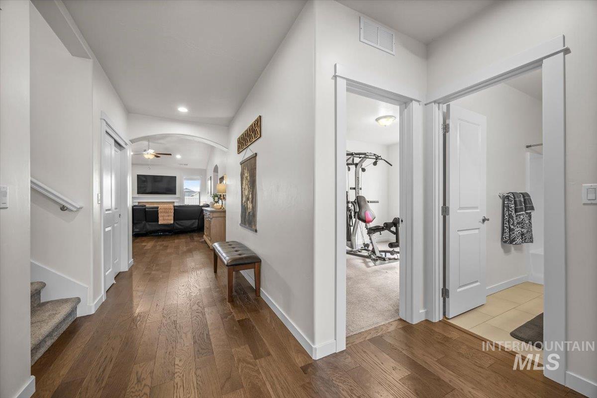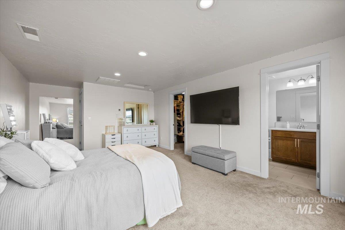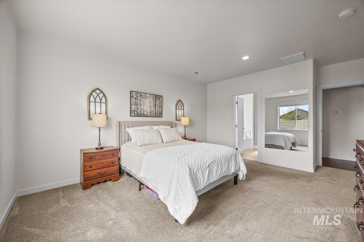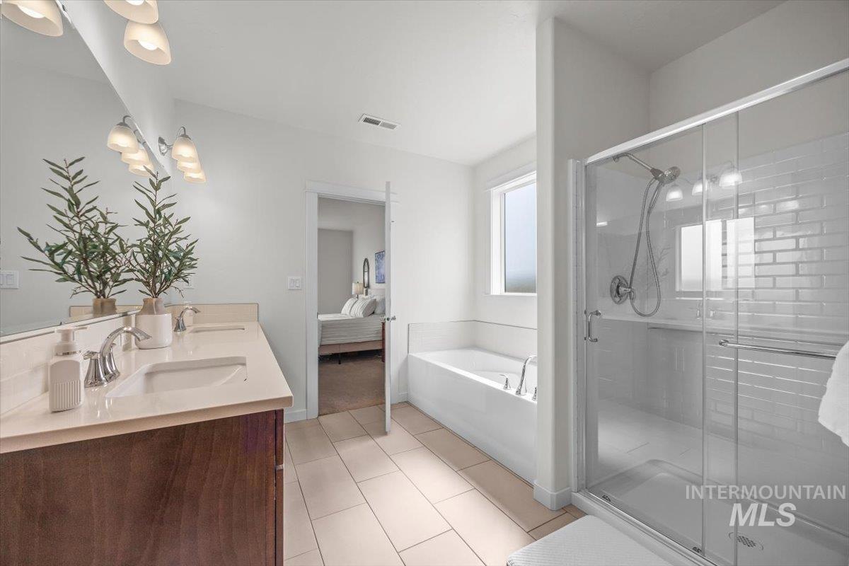 Gorgeous North Meridian home with TWO PRIMARY SUITES in a luxury community with TWO pools! The upgraded kitchen features a walk-in pantry, breakfast bar, quartz counters, gas range & stainless appliances. At the heart of the home is a spacious great room with vaulted ceilings, natural light & gas fireplace. Retreat to your main-floor primary suite—complete with dual vanities, soaker tub & walk-in closet. The downstairs layout thoughtfully separates the primary from two main-floor bedrooms & second full bath. Upstairs you`ll find an oversized Jr. Suite with its own walk-in closet & ensuite bathroom. Dual-zone A/C system ensures comfort for everyone. Upgraded epoxy floors in the garage, perfect for a shop or gym. On your covered front porch, look out onto 1 of 8 community playgrounds. In the back, enjoy the low-maintenance yard & covered patio. Walk or bike to the amenities of your new Oaks community: 2 pools, fishing pond, pickleball, bocce ball, 8 playgrounds & walking paths—all in a prime North Meridian location!