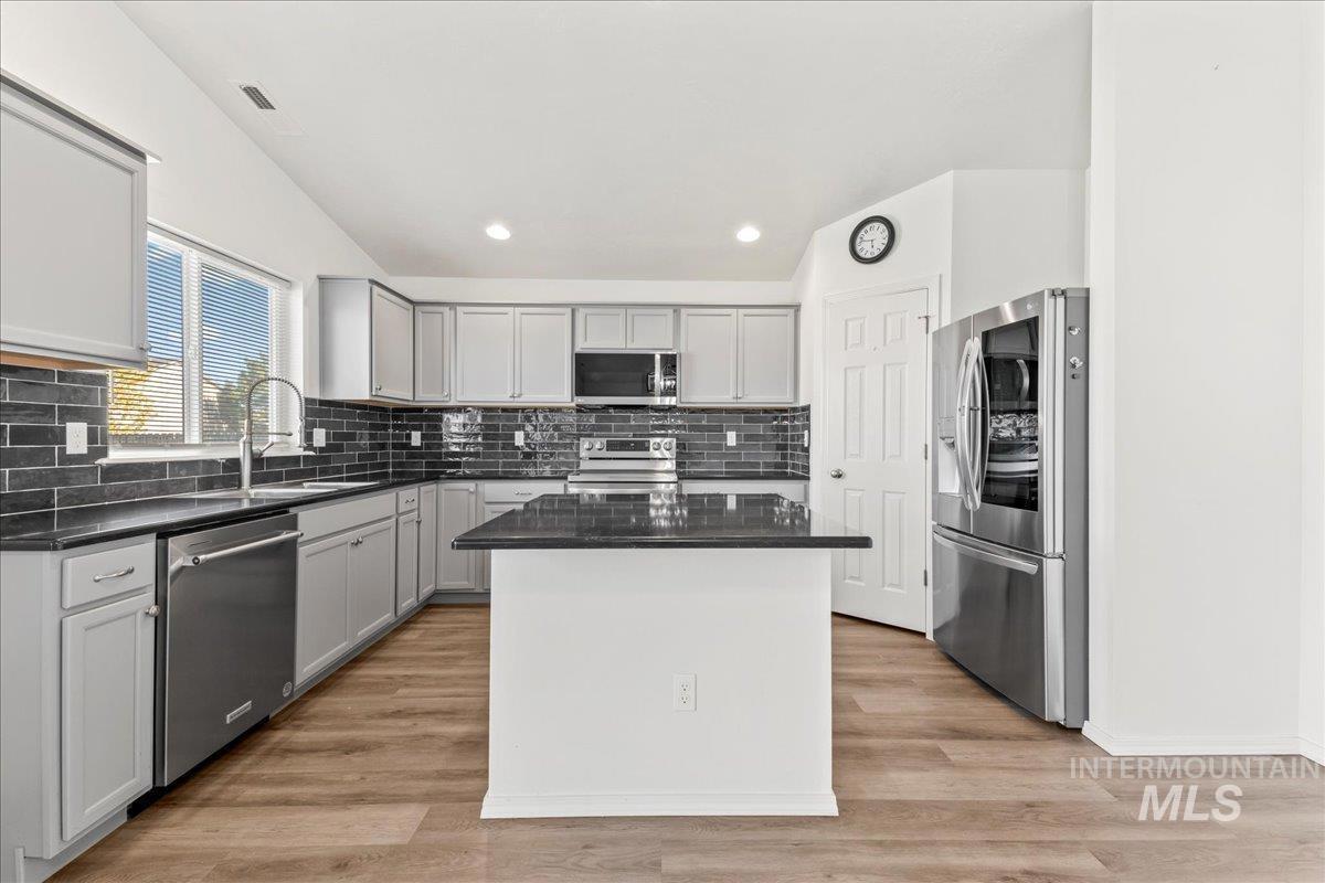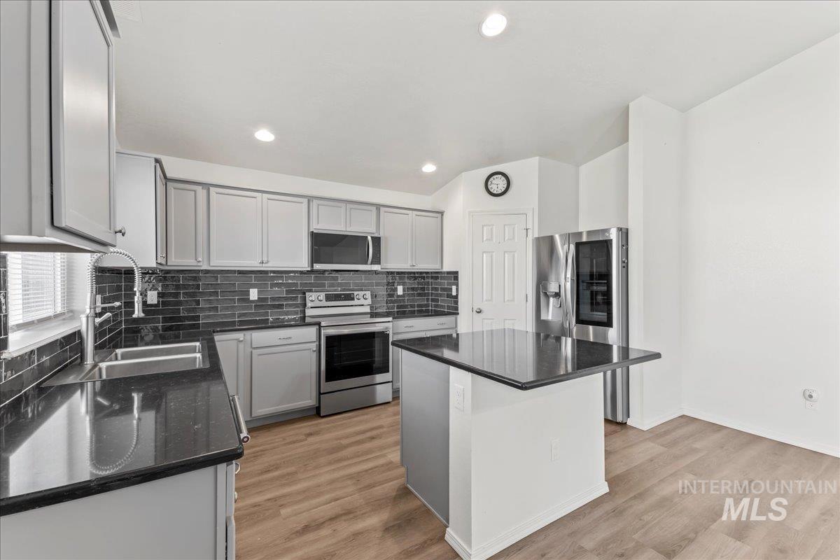 Move-in ready perfection awaits at 890 SW Lago St in Morning View Subdivision! This pristine 2,021 sq ft, 4-bed, 2-bath home on a large corner lot with a fully fenced backyard is ready for your vision. Luxurious upgrades include remodeled bathrooms, quartz countertops, full tile backsplash, high-end appliances, and brand-new carpet/pad throughout. The open layout features a private master suite with dual vanities, oversized shower, and large walk-in closet---perfect for immediate comfort. A 3-car garage fits vehicles or hobbies, with Leaf Filter gutters for low maintenance. Plenty of space to add RV parking. High-speed fiber internet ensures seamless remote work or streaming. Just 10 min from Mountain Home AFB and 45 min to Boise, enjoy Snake River recreation and a vibrant community. A 2.85% assumable VA loan (subject to VA eligibility/equity bridge) could save thousands per year. Energy-efficient build maximizes savings. Explore via virtual tour or set up an in-person tour today—this turnkey gem is waiting for you!
