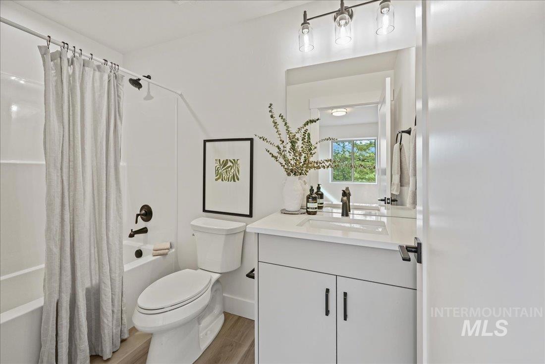 Where elevated design meets flexible, low-maintenance living. A rare end-unit new construction opportunity in a prime Boise Bench location minutes to Boise State University, Micron & Downtown. Framed by added windows & exceptional natural light throughout, this turn-key home is crafted with ample upgrades & 3 spacious bedrooms, each with a dedicated en-suite bath. Tall, airy ceilings fill the space with radiant light, enhancing the open layout with sleek, high-end finishes, including stylish LVP flooring, custom cabinetry & designer-selected details. Anchored by a waterfall-edge quartz island with breakfast bar, the gourmet kitchen is outfitted with a premium KitchenAid® appliance package including a refrigerator & a large walk-in pantry, all overlooking the great room & patio beyond. Tucked away from the main living areas, the lower-level suite is tailor-made for a home-based business, professional studio, or private guest quarters. A spacious two-car garage provides secure parking & extra storage. Offering exceptional versatility as a lock-&-leave home, long-term investment, or flexible short-term rental. Midtown Heights is a collection of 35 newly built residences by Tresidio Homes, a trusted local builder known for detailed design & quality craftsmanship. Designed for easy living, the community offers professionally managed landscaping & exterior upkeep through the HOA.