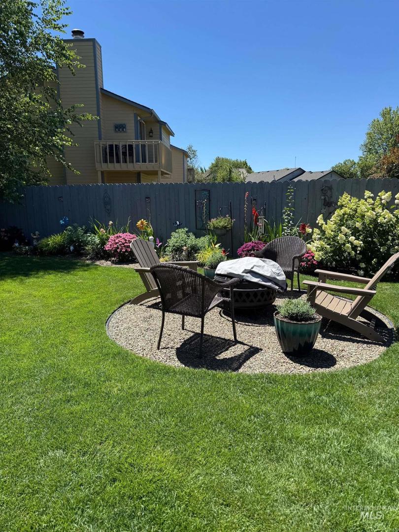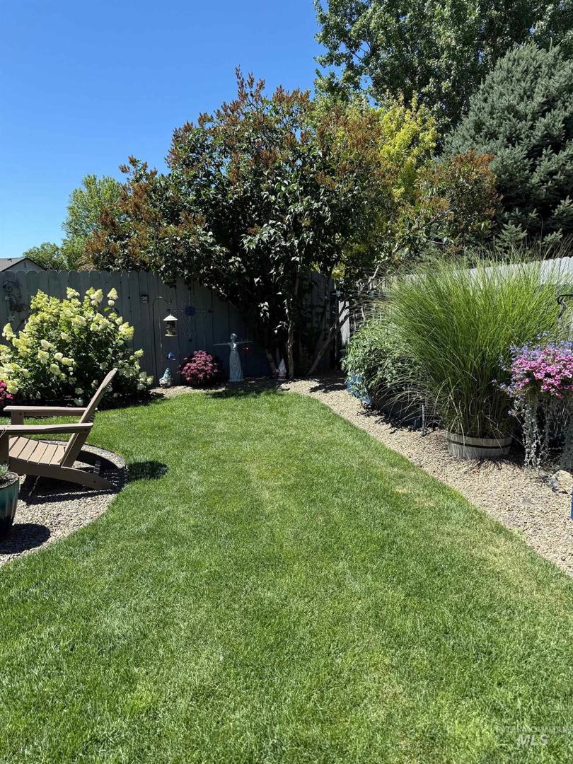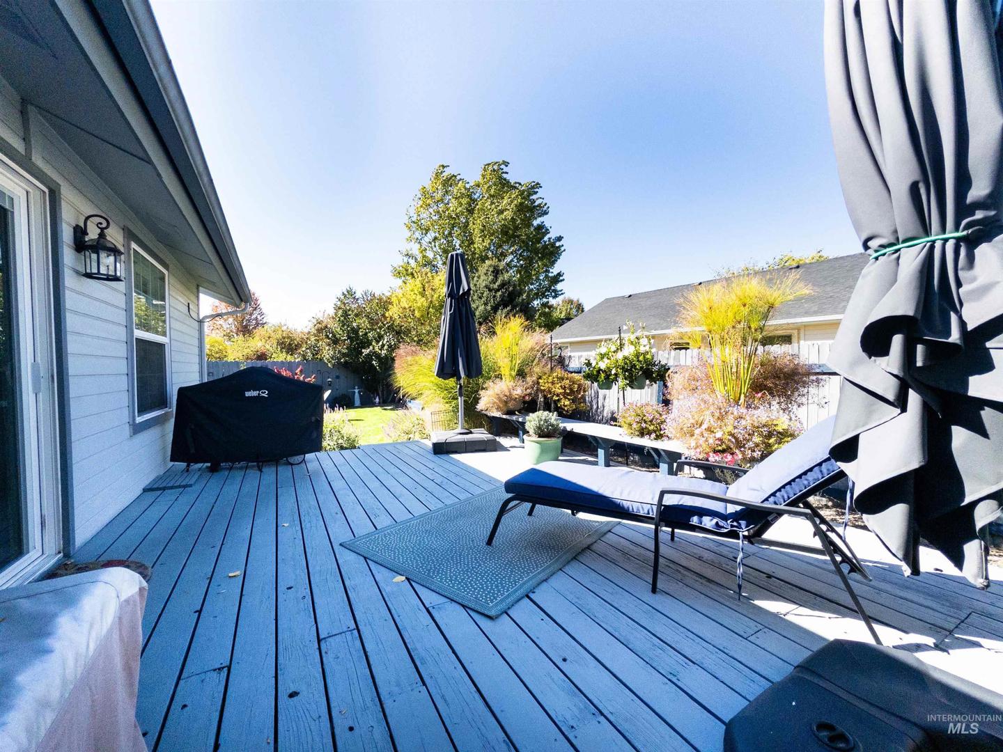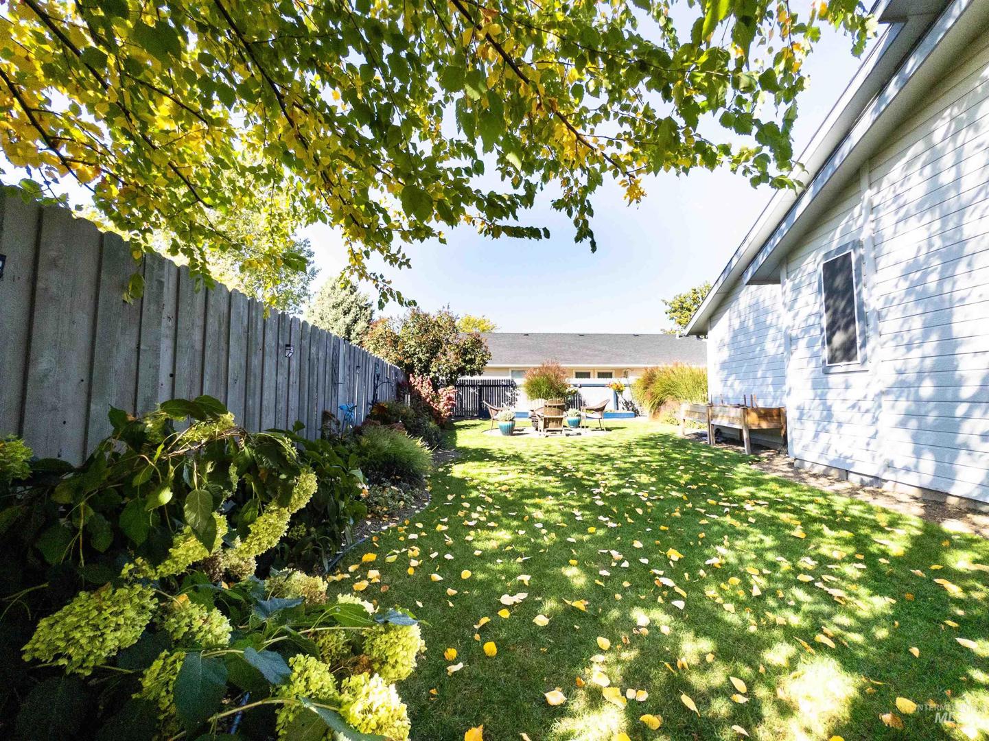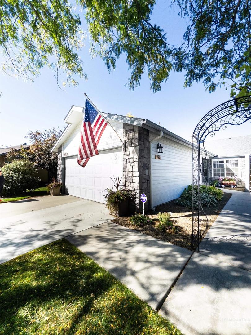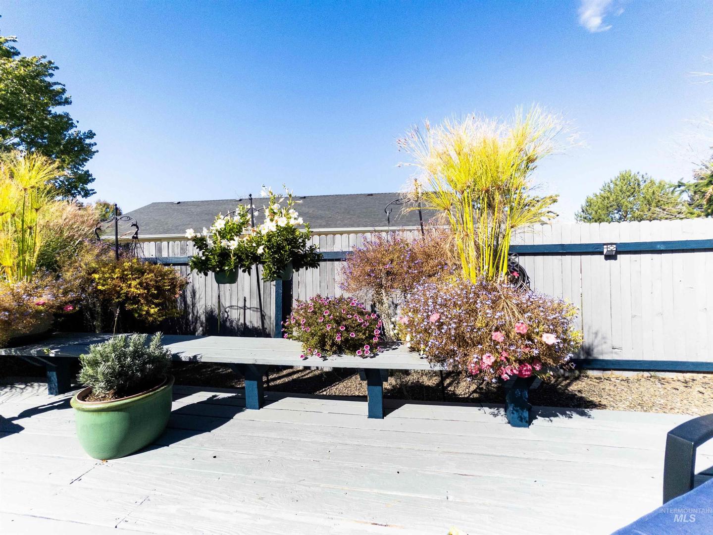Experience effortless living in this beautifully updated single-level townhome tucked within a peaceful, golf cart-friendly neighborhood — and best of all, no HOA! Perfect as a low-maintenance residence, lock-and-leave retreat, or short-term rental, this home blends comfort and style throughout. The stunning kitchen showcases quartz countertops, a custom backsplash, and an eye-catching hammered copper hood, opening seamlessly to the living and dining areas. Enjoy indoor-outdoor living with a fully fenced backyard, refinished deck, and gas hookup ready for summer grilling. Inside, you’ll find durable hard surface flooring, plantation shutters, fresh interior paint, and a luxurious primary suite featuring marble countertops and a walk-in tile shower. The versatile third bedroom easily doubles as an office or guest space (armoire used as closet). Additional upgrades include a new A/C installed in 2022. Conveniently located just minutes from Lakeview Golf Course, local dining, shopping, and top-rated schools, this move-in ready gem offers the perfect balance of style, function, and Meridian convenience.
