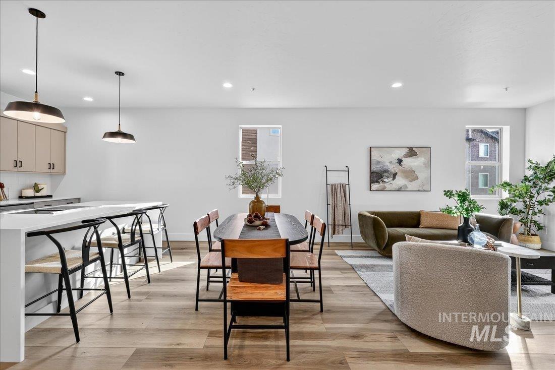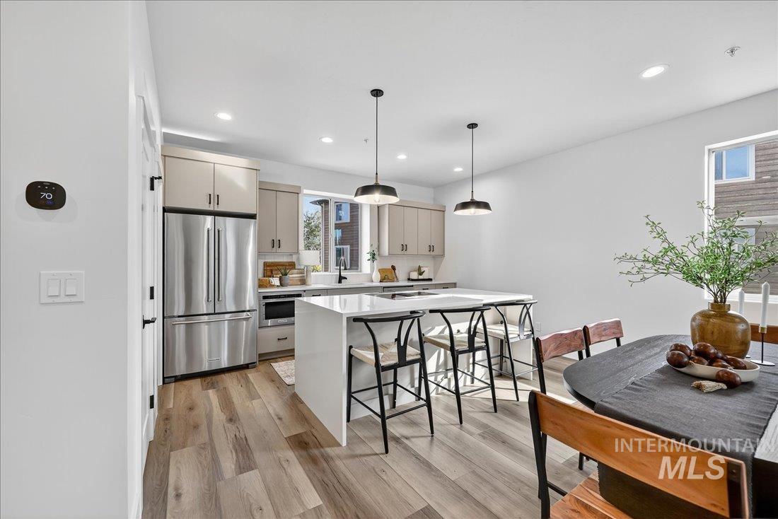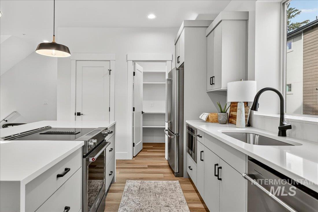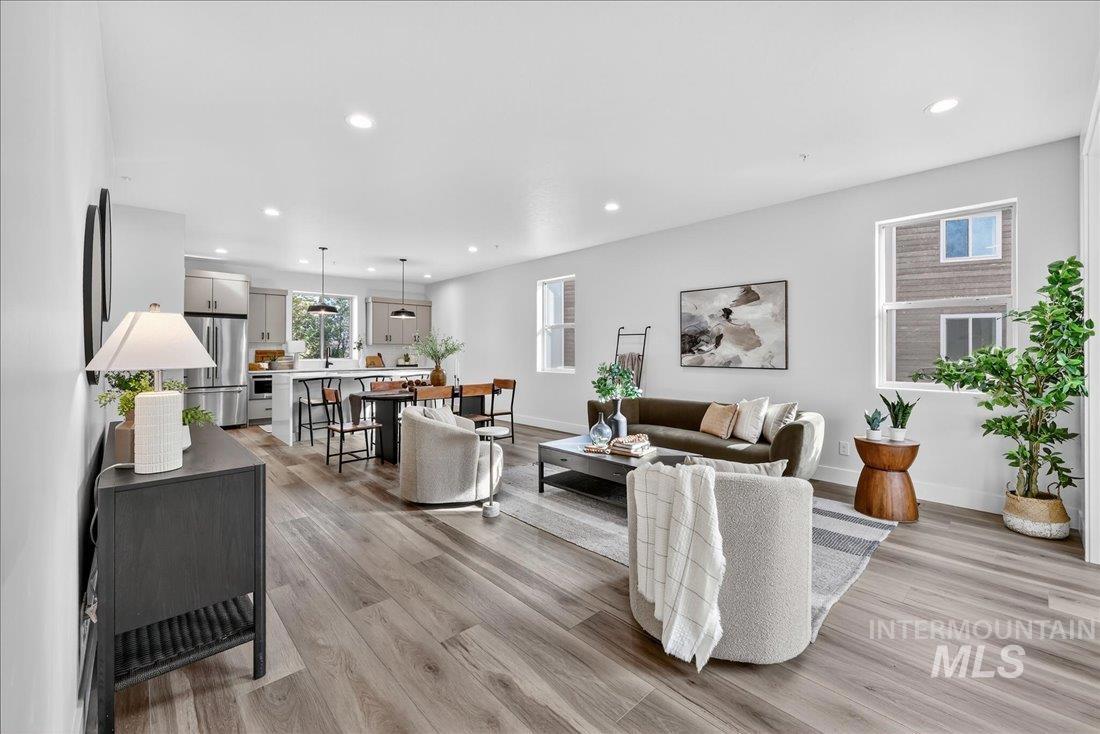 Turnkey townhome in a high-demand Boise Bench location with no rental restrictions. Brand-new construction by Tresidio Homes, minutes to Boise State University, Micron, St. Luke`s & Downtown. Each of the three bedrooms features a private ensuite bath, providing a highly desirable setup for tenants. A private lower-level suite separated from the main living areas is well suited for a home-based business. Long or short term rentals (Airbnb) are allowed. Recently completed with premium upgrades, tall ceilings, oversized windows & durable wide-plank LVP flooring throughout the main level. The upgraded kitchen includes a waterfall-edge quartz island with bar seating, a full KitchenAid® appliance package (refrigerator included). Secure two-car garage parking, ample storage & professionally managed exterior & landscaping through the HOA. Midtown Heights is a newly constructed collection of 35 townhomes. Additional completed units are available for portfolio or multi-property purchase opportunities.