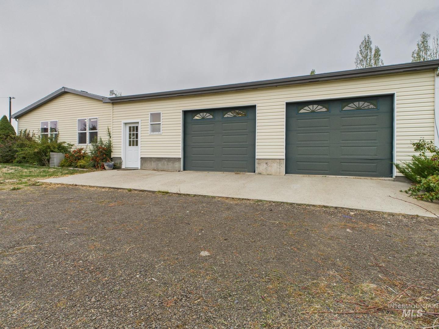 Enjoy small-town country living in this spacious 2,356 sq ft single-level home featuring 3 bedrooms, 2 baths, and a 2-car garage at the end of a quiet road. You’ll love the feeling of privacy while still having city services. The property includes a large barn with stalls, space for chickens, a garden, and room for horses or other livestock—perfect for a mini farm. There’s plenty of parking for your RV and room to spread out. Inside, the home offers a thoughtful floor plan with multiple living spaces, including a designated office (or guest room) and a large den with built-ins ideal for crafts or sewing projects. The cozy living room features a fireplace and abundant natural light through large windows. The open kitchen has a walk-in pantry, ample cabinetry, and a built-in china hutch/coffee nook. Relax on the covered back patio and enjoy the peaceful countryside setting. A private indoor hot tub room lets you soak in comfort year-round. The barn just outside the back door makes feeding animals easy and convenient. Across the street, an additional lot provides excellent pasture space and includes a storage shed for extra equipment or feed. Mature trees and a large garden area complete this inviting rural property.
