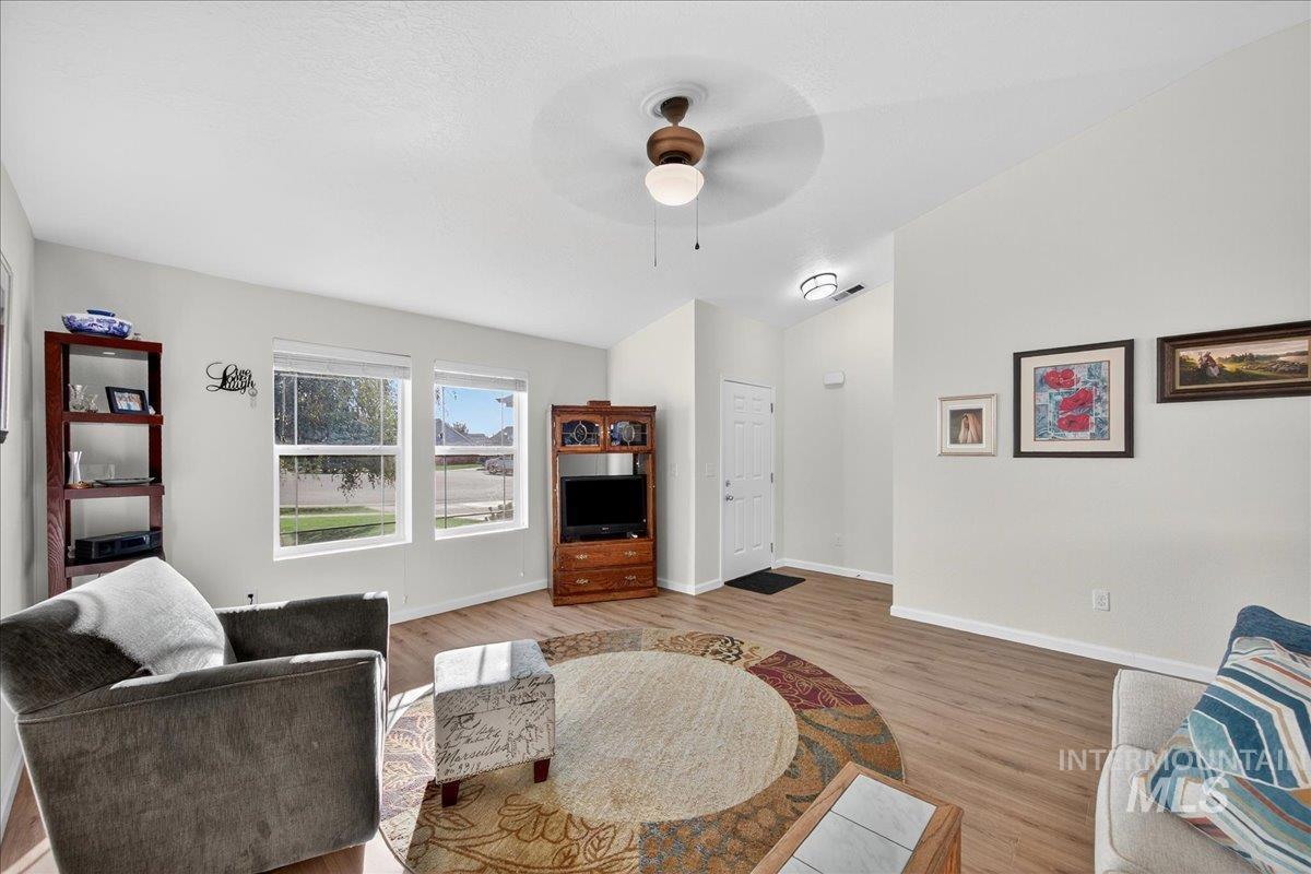 The single level Star, Idaho home you`ve been looking for! From the moment you enter, you`ll notice the fresh interior paint, brand-new flooring throughout, and stylish updated light fixtures that bring a modern, comfortable feel. The open-concept layout makes it easy to entertain or stay connected while cooking in the spacious, well-appointed kitchen. The large primary bedroom offers a peaceful retreat at the end of the day, with plenty of room to relax and unwind. 2 additional bedrooms and 1 full guest bath offer the flexibility for a home office or guest quarters. Step outside and soak up the Idaho sunshine in the expansive fully fenced backyard, offering no rear neighbors for added privacy and a 9X7 storage shed. The exterior has also been refreshed with new paint, new perimeter rock, new gutters and dual side-gate access. Don`t miss the oversized Perma Bark landing area, perfect for creating a cozy fire pit setting or outdoor lounge space. This home combines thoughtful updates with quiet comfort; all tucked into a welcoming neighborhood in Star. Come see it for yourself before it`s gone!