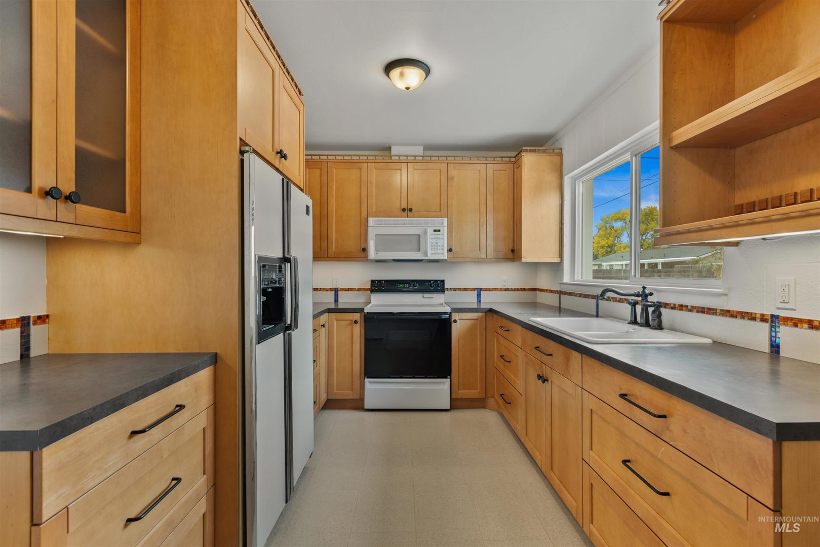 Recently touched up home on the Boise Bench with potential! Fully fenced corner lot with mature landscaping and double gate in back with plenty of room for an RV and toys plus tandem carport off front w/ an attached shed for extra storage. Come see this move-in ready home with recent updates that include interior and exterior paint, new carpet and vinyl tile, remodeled bathroom and updated kitchen. Conveniently located just minutes from BSU, downtown Boise, and the airport -- and with no HOA -- this home offers convenient detached living in a great location.
