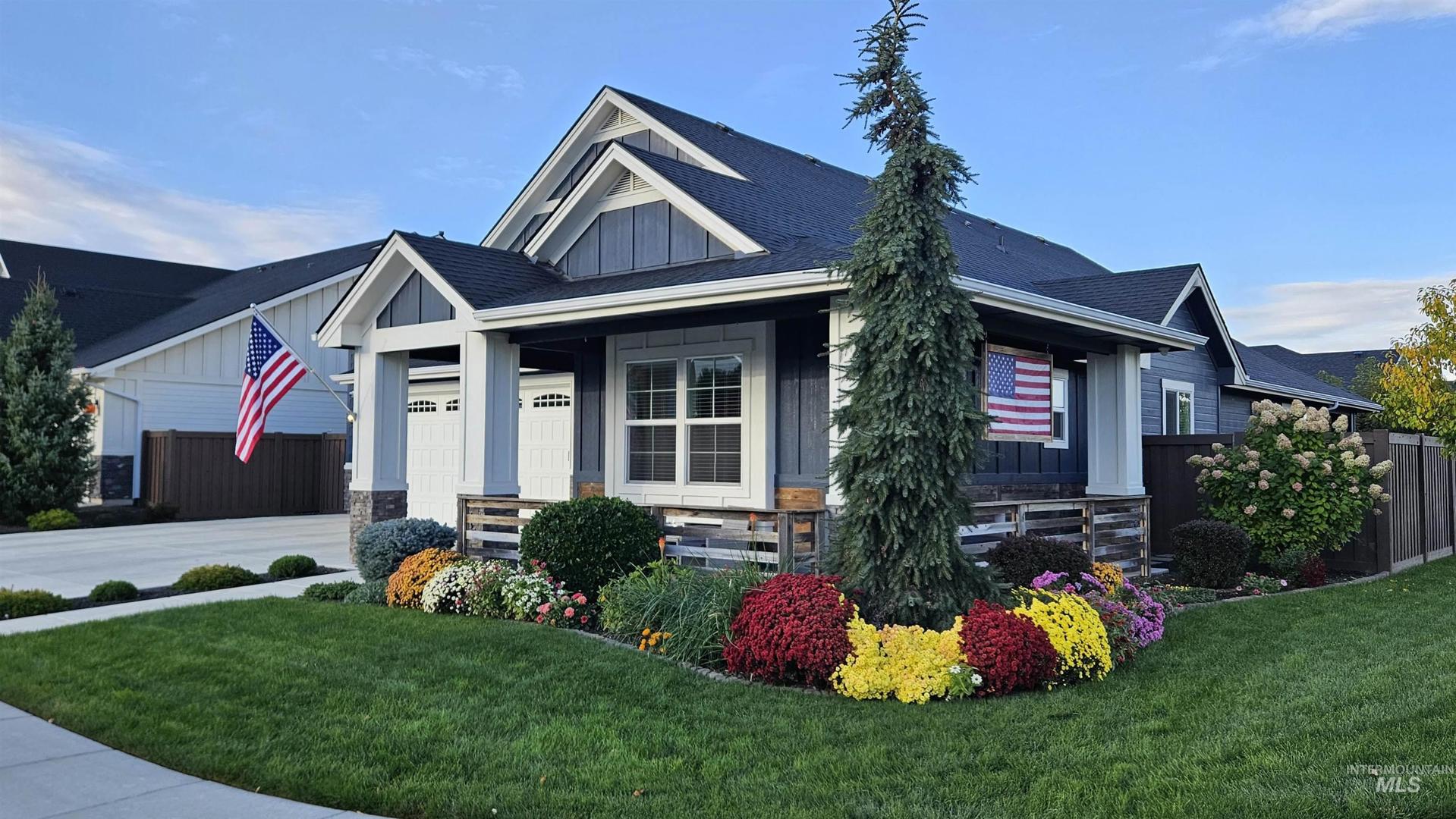 Stunning Semi-Custom Home in Bainbridge Subdivision This one-of-a-kind semi-custom home offers exceptional craftsmanship and thoughtful upgrades throughout. Located on a spacious corner lot, this property features a charming wrap-around front porch enclosed with 50-year-old reclaimed barn wood, a covered back patio, and beautifully landscaped grounds with year-round blooms and raised garden beds. Main floor features M/Bedroom & 2 additional bedrooms. 2nd floor has 2 huge bedrooms & a full bath—perfect for guests, hobbies, or a media space. The open-concept layout features solid wood doors, upgraded finishes, Kohler fixtures, and spacious, X-large bedrooms with ample closets. The fully insulated garage features custom storage, a 12-ft RV door, and an upgraded electrical package with 50A & 30A outlets—ideal for RVs, tools, or EV charging. A detached “Tiny House” in the backyard, complete with full electric service, provides versatile space for an additional play area, office, or studio .**Additional features: Private office with built-in desk and bookshelves, laundry room with sink, cabinets & storage, whole-home water filtration, softener, and RO system, Security system with 8 exterior cameras. upgraded lighting, ceiling fans, and all appliances included. Enjoy community amenities - 2 pools, easy access to shopping, schools parks. Must-see home blending character, function & comfort.