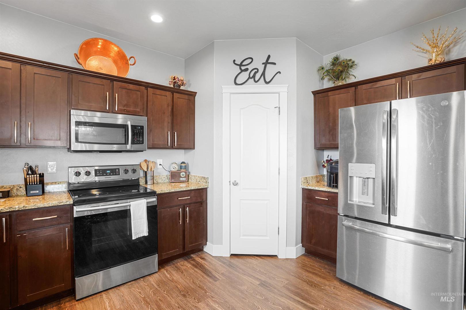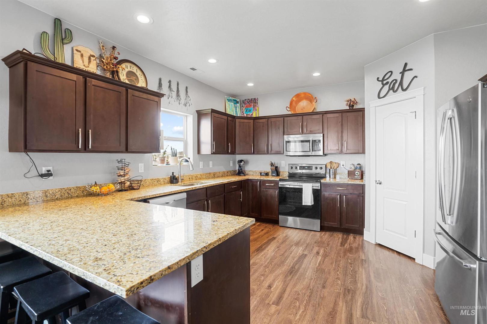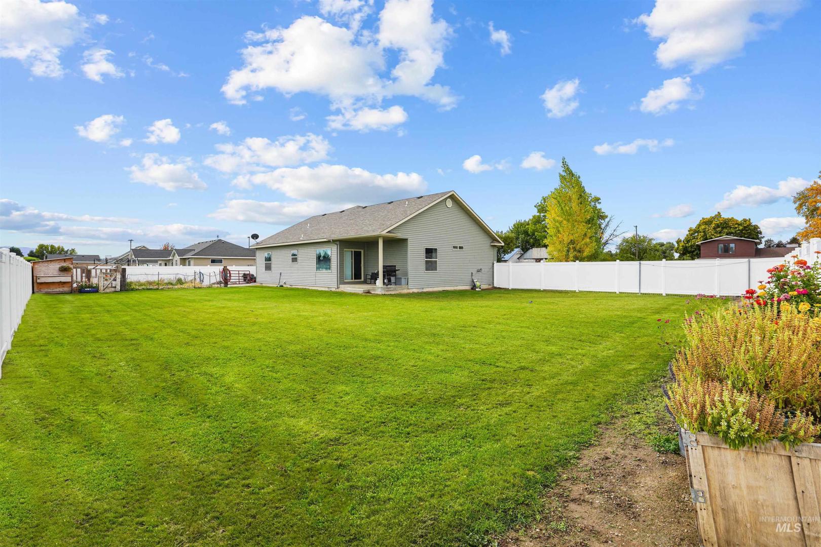 Welcome to this charming 3-bedroom, 2-bathroom home offering 1,502 sq. ft. of comfortable living space on 0.38 acres. Built in 2018, this home combines modern design with thoughtful details throughout. Inside, you’ll love the open-concept layout filled with tons of natural light. Step outside to enjoy covered patios in both the front and back, along with a huge fenced backyard that includes a separate garden area —ideal for those who love outdoor living. There’s also ample parking space along the side of the home with a large double gate for easy access. The oversized 2-car garage provides extra storage, making this property as functional as it is inviting. This home truly offers a perfect blend of comfort, space, and country charm!