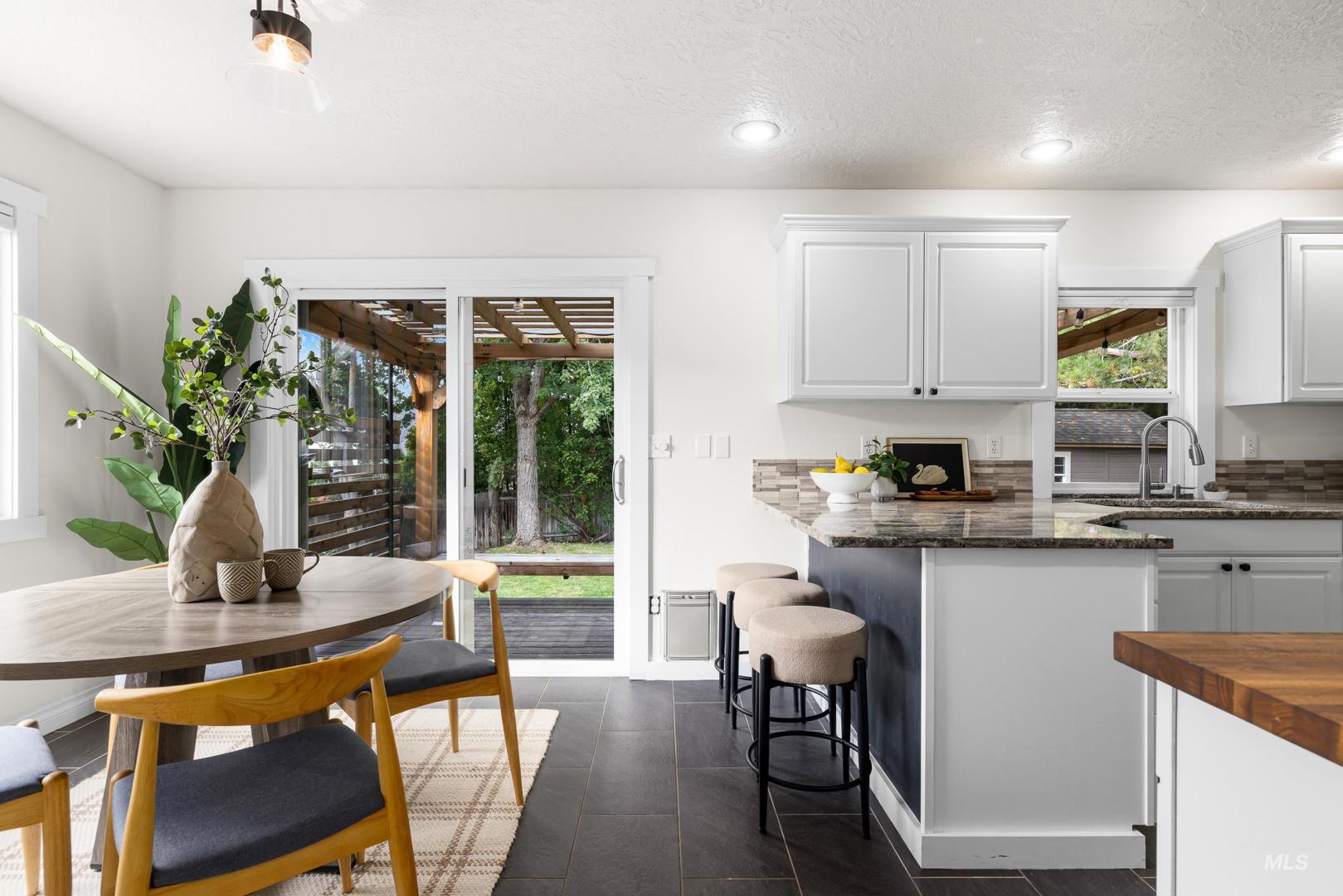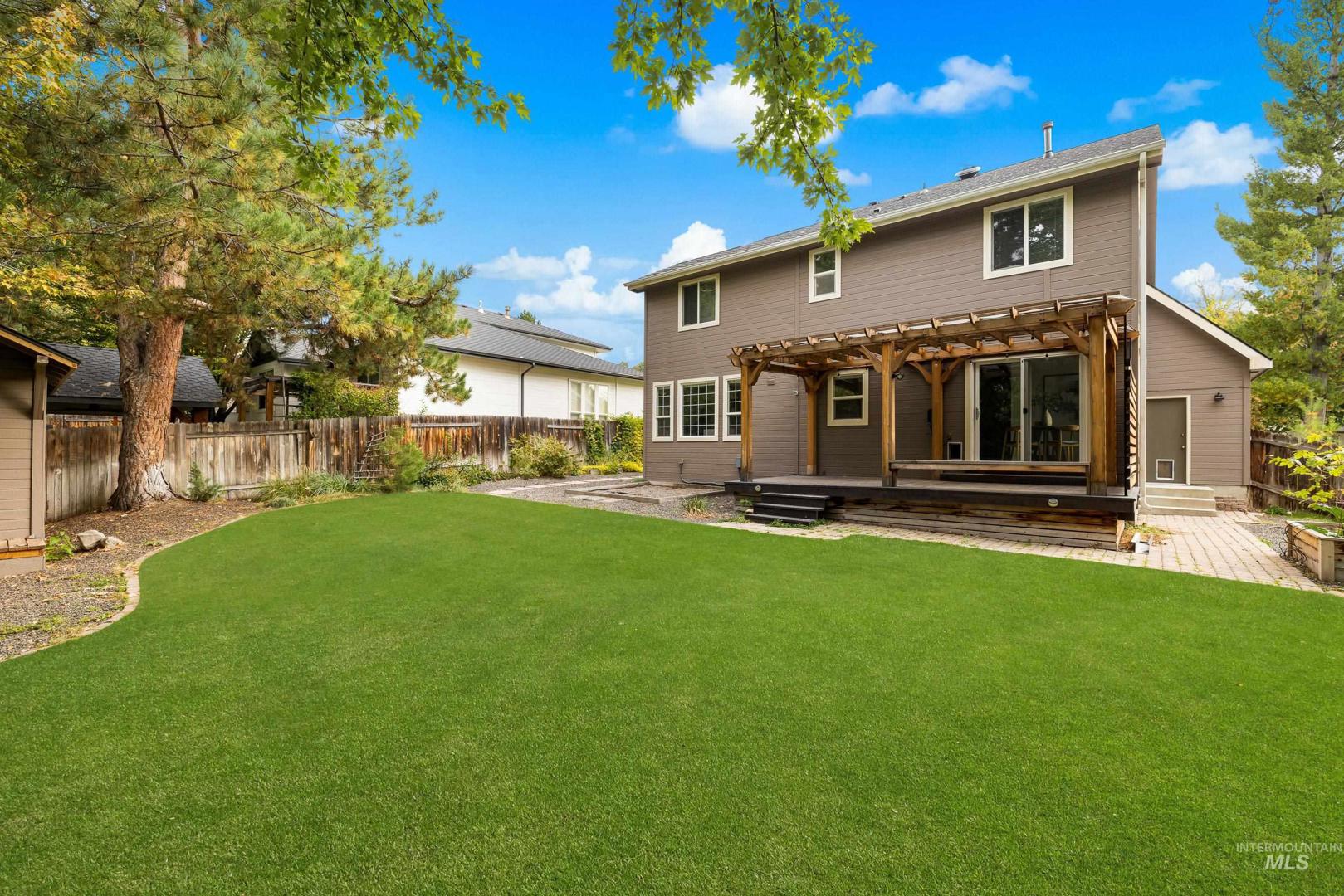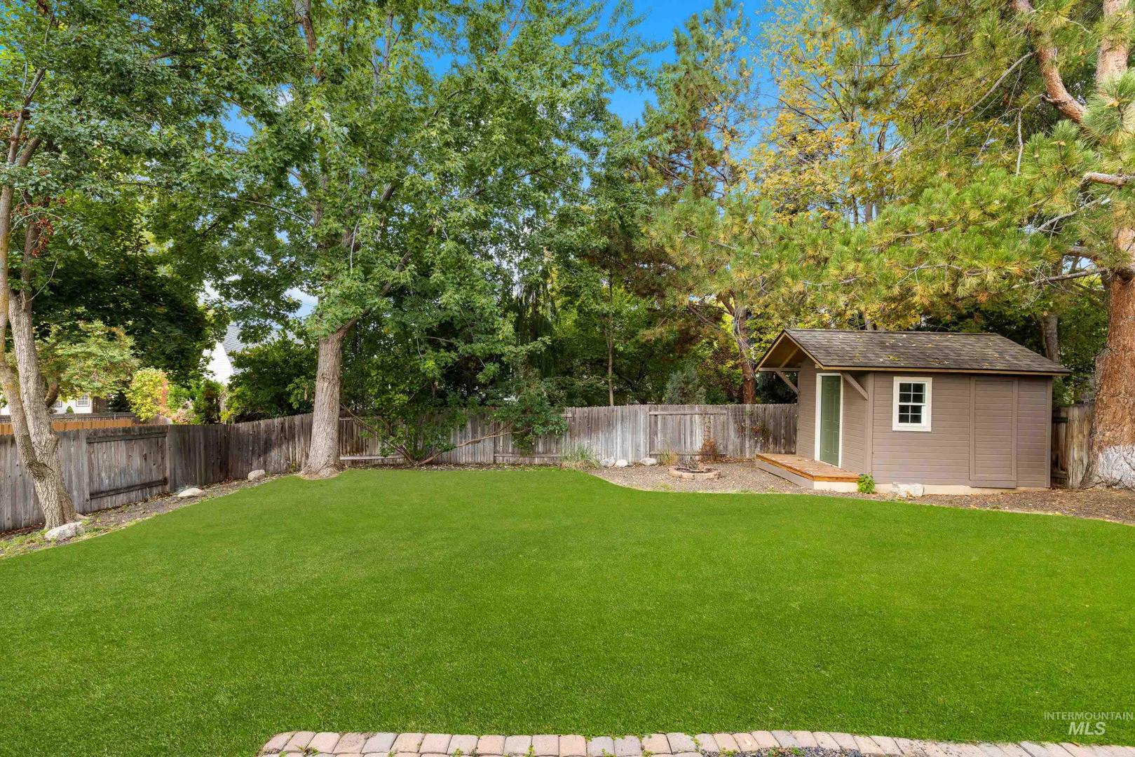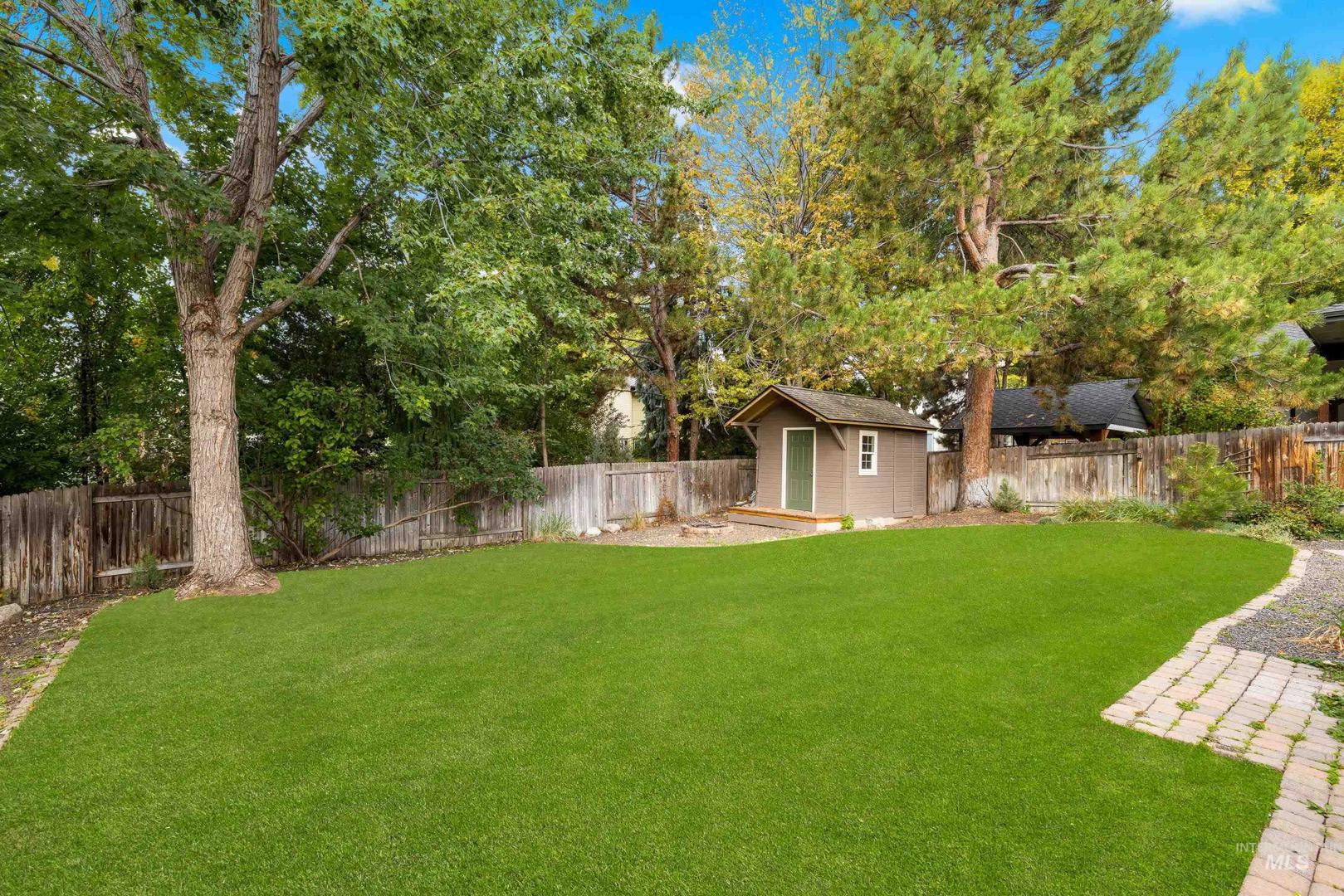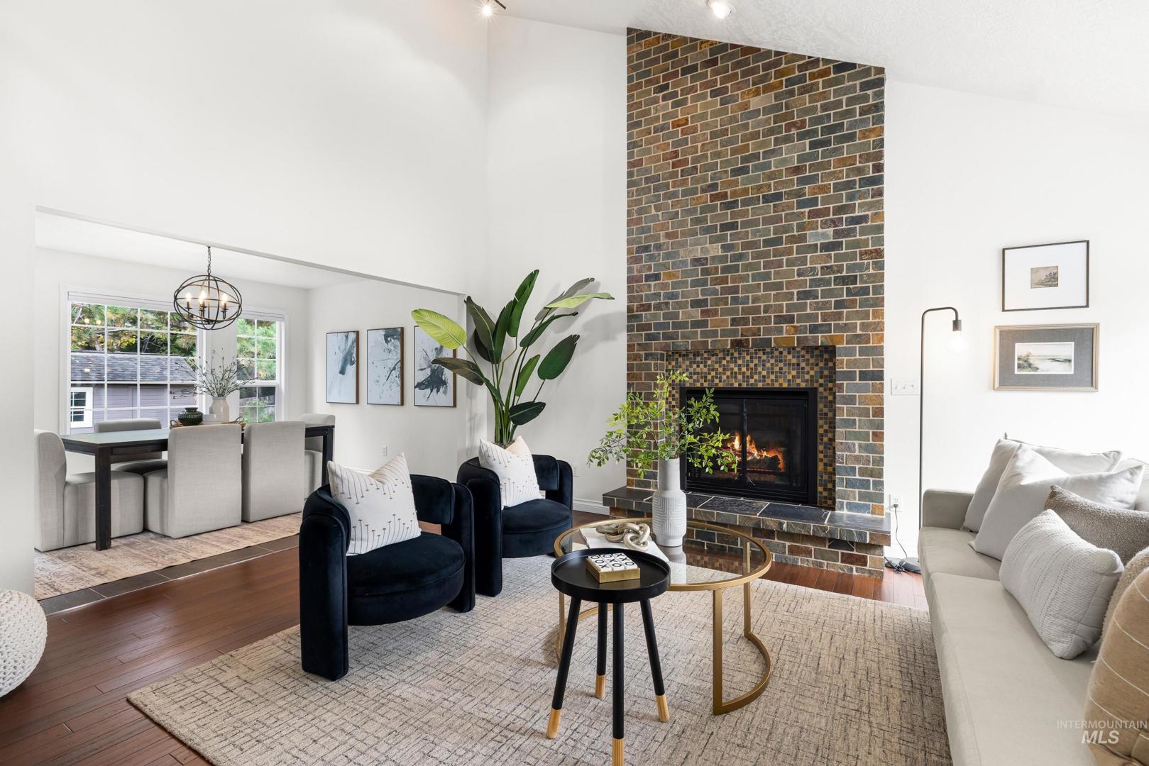 Fresh front landscaping enhances the curb appeal of this thoughtfully updated home, ideally situated near Hyde Park, hiking trails, Boise foothills and a growing mix of trendy restaurants. Step inside to soaring ceilings and an airy great room bathed in natural light, where a stunning floor-to-ceiling brick fireplace serves as the focal point—creating an elegant yet inviting atmosphere. The formal dining room flows effortlessly into a beautifully updated kitchen showcasing stainless steel appliances, a gas range, gleaming granite countertops, and a butcher block prep station designed for both function and style. An additional dining nook opens to the park-like backyard, offering the perfect setting for seamless indoor/outdoor entertaining. Double doors lead to a serene primary suite, featuring an ensuite bath with dual sinks, a separate tub and shower, and a generous walk-in closet with bonus flex space. Two additional bedrooms and a full bath complete the versatile layout. Unwind on the spacious backyard deck, ideal for seasonal gatherings, surrounded by mature landscaping that provides both privacy and shade. Recent upgrades include a brand-new AC unit (2025), Wi-Fi–enabled sprinkler control system, and main-level powder bath refresh with new sink, mirror and light fixture.