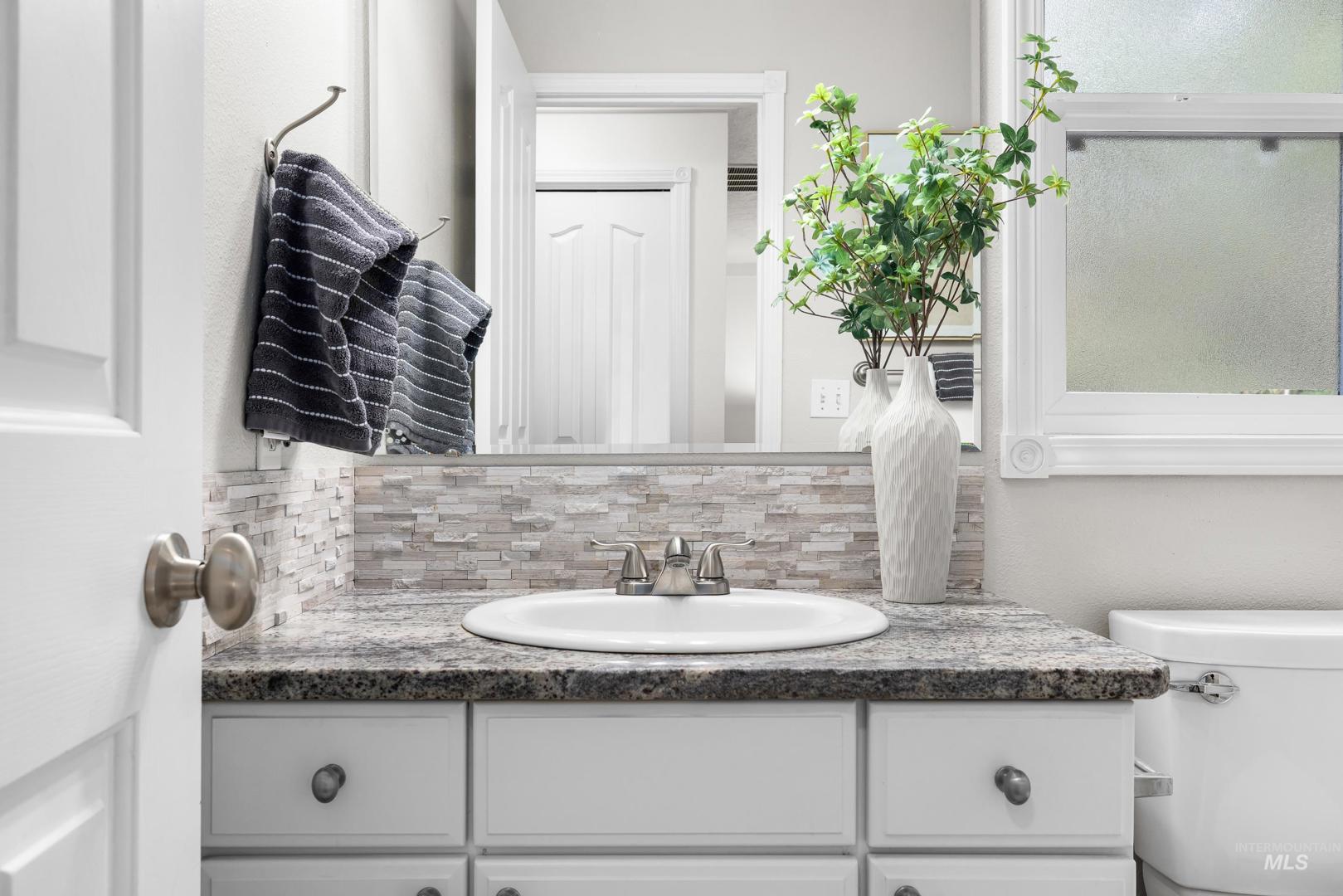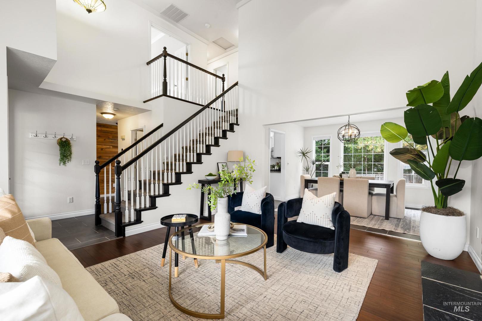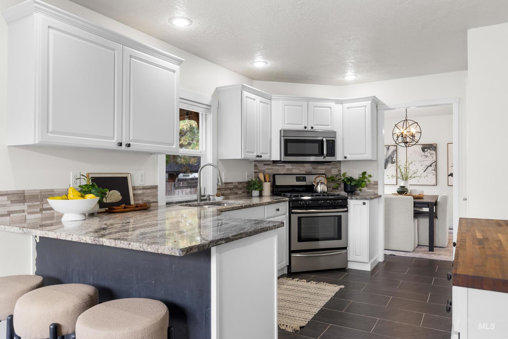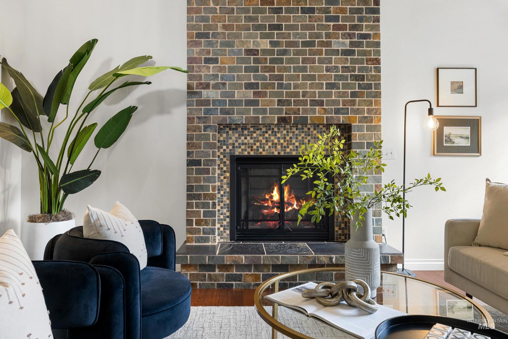 Fresh front landscaping enhances the curb appeal of this thoughtfully updated home, ideally situated near Hyde Park, hiking trails, Boise foothills and a growing mix of trendy restaurants. Step inside to soaring ceilings and an airy great room bathed in natural light, where a stunning floor-to-ceiling brick fireplace serves as the focal point—creating an elegant yet inviting atmosphere. The formal dining room flows effortlessly into a beautifully updated kitchen showcasing stainless steel appliances, a gas range, gleaming granite countertops, and a butcher block prep station designed for both function and style. An additional dining nook opens to the park-like backyard, offering the perfect setting for seamless indoor/outdoor entertaining. Double doors lead to a serene primary suite, featuring an ensuite bath with dual sinks, a separate tub and shower, and a generous walk-in closet with bonus flex space. Two additional bedrooms and a full bath complete the versatile layout. Unwind on the spacious backyard deck, ideal for seasonal gatherings, surrounded by mature landscaping that provides both privacy and shade. Recent upgrades include a brand-new AC unit (2025), Wi-Fi–enabled sprinkler control system, and main-level powder bath refresh with new sink, mirror and light fixture.