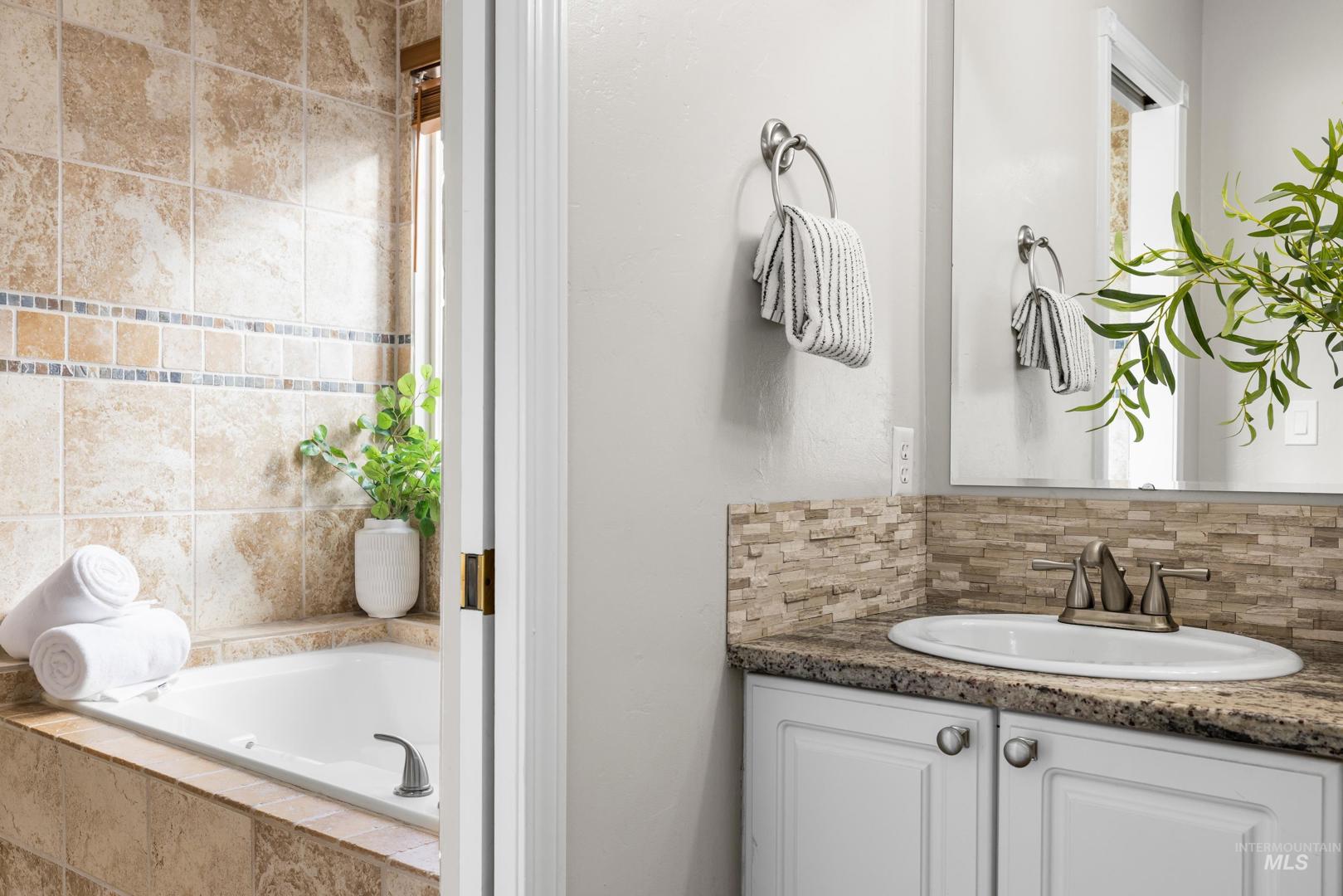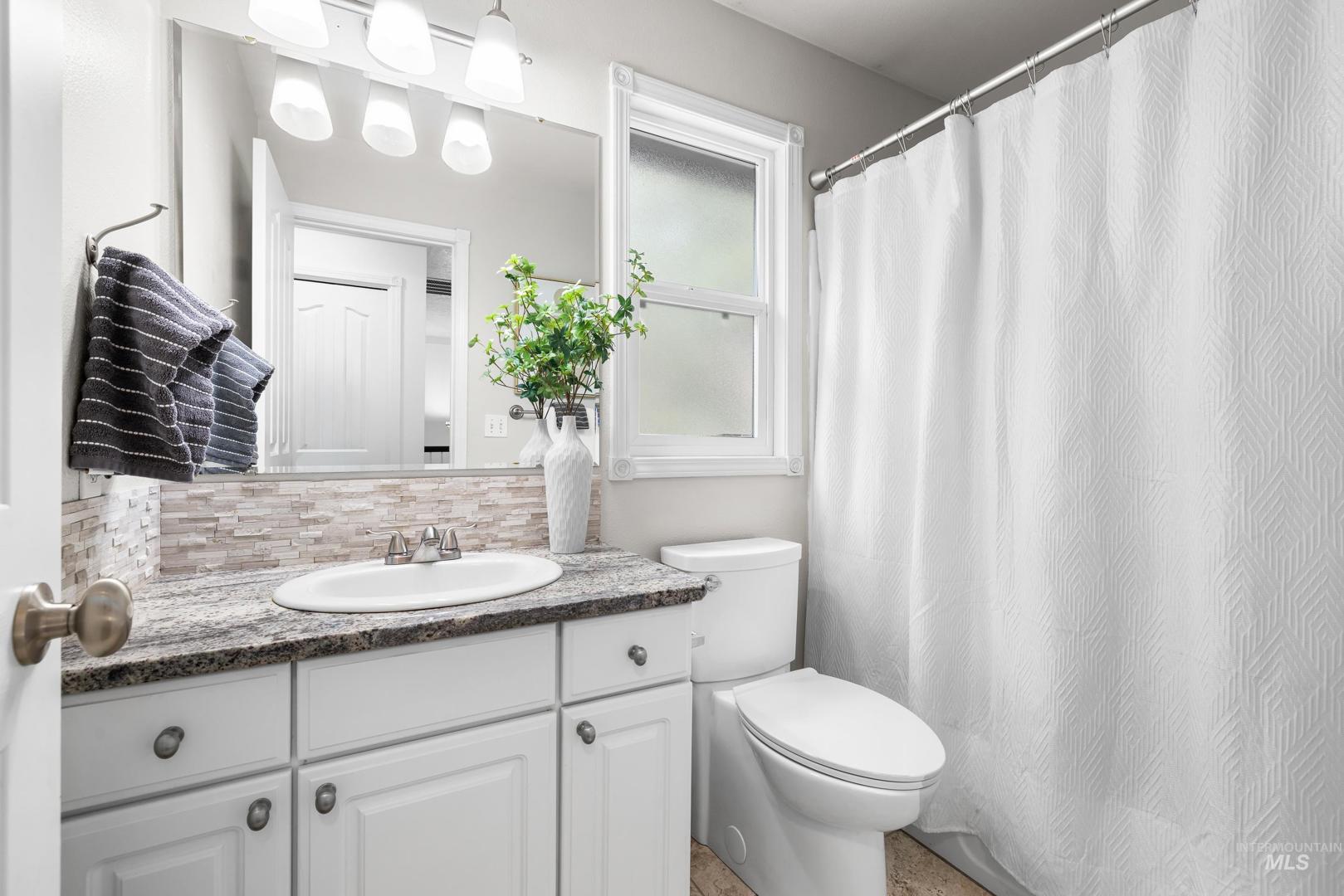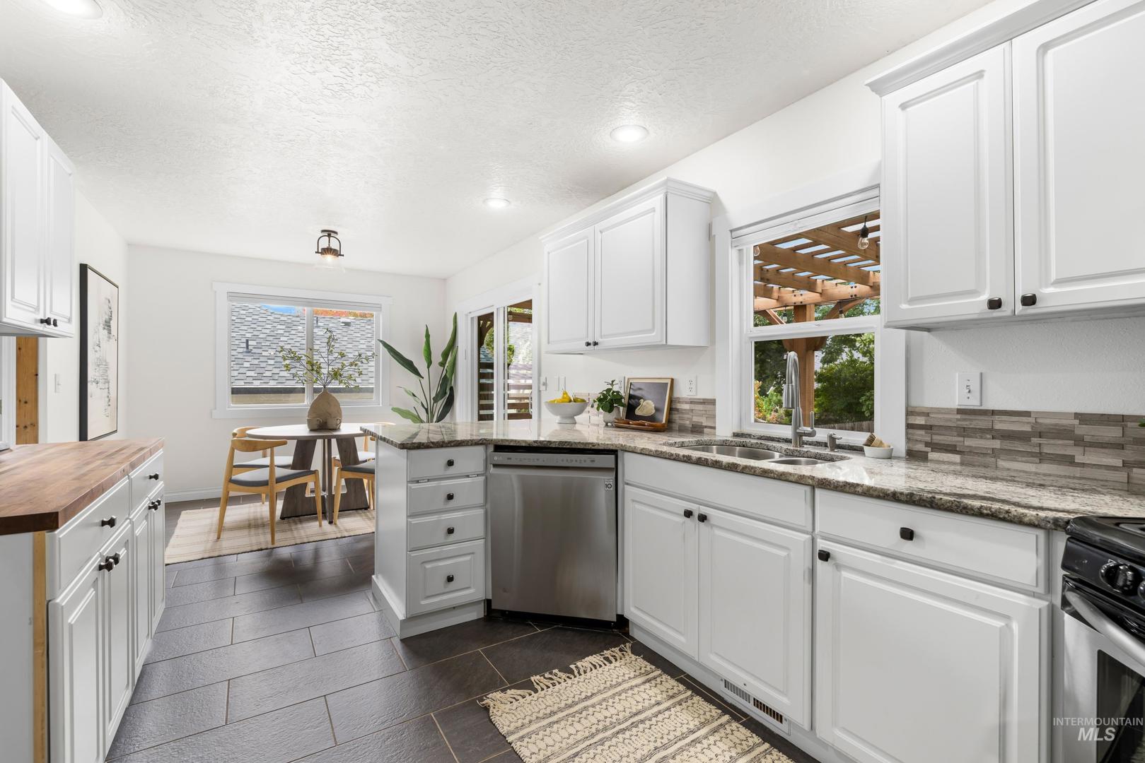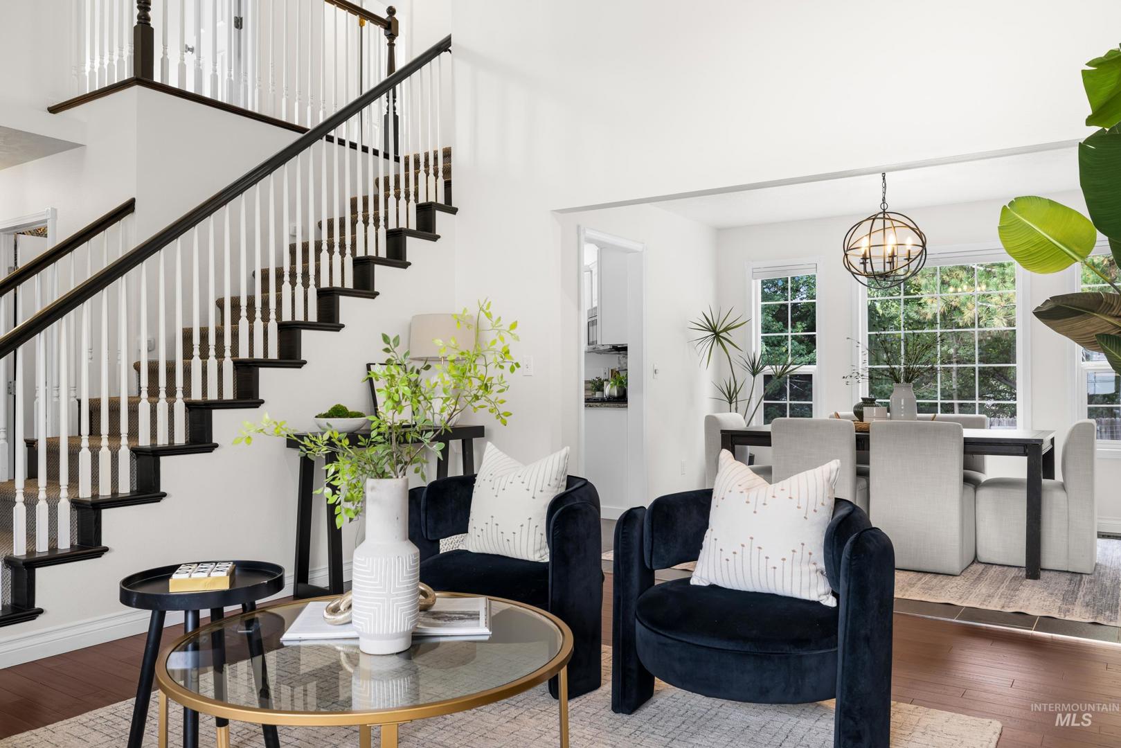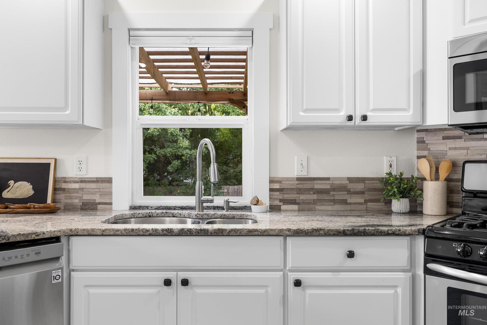 Fresh front landscaping enhances the curb appeal of this thoughtfully updated home, ideally situated near Hyde Park, hiking trails, Boise foothills and a growing mix of trendy restaurants. Step inside to soaring ceilings and an airy great room bathed in natural light, where a stunning floor-to-ceiling brick fireplace serves as the focal point—creating an elegant yet inviting atmosphere. The formal dining room flows effortlessly into a beautifully updated kitchen showcasing stainless steel appliances, a gas range, gleaming granite countertops, and a butcher block prep station designed for both function and style. An additional dining nook opens to the park-like backyard, offering the perfect setting for seamless indoor/outdoor entertaining. Double doors lead to a serene primary suite, featuring an ensuite bath with dual sinks, a separate tub and shower, and a generous walk-in closet with bonus flex space. Two additional bedrooms and a full bath complete the versatile layout. Unwind on the spacious backyard deck, ideal for seasonal gatherings, surrounded by mature landscaping that provides both privacy and shade. Recent upgrades include a brand-new AC unit (2025), Wi-Fi–enabled sprinkler control system, and main-level powder bath refresh with new sink, mirror and light fixture.