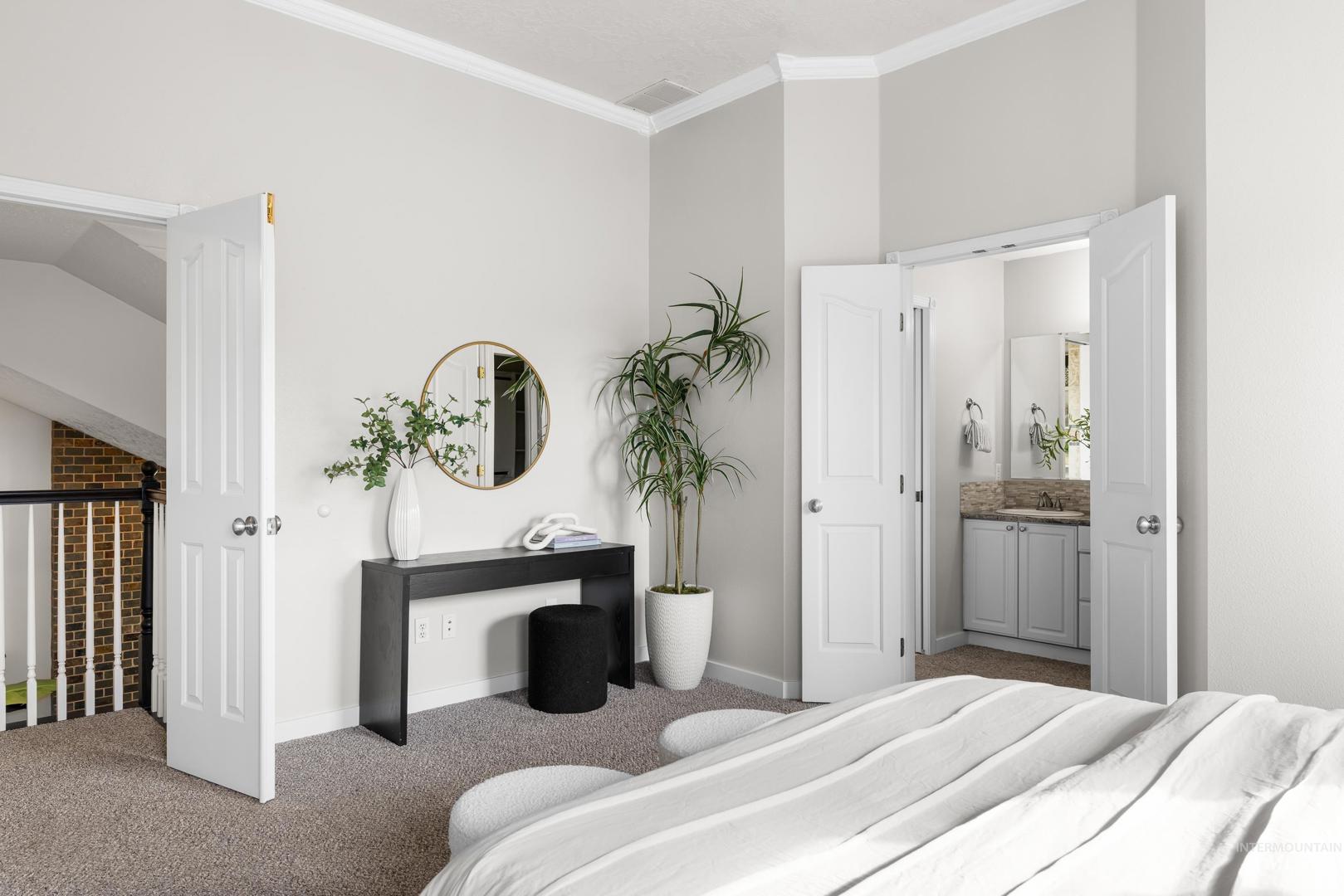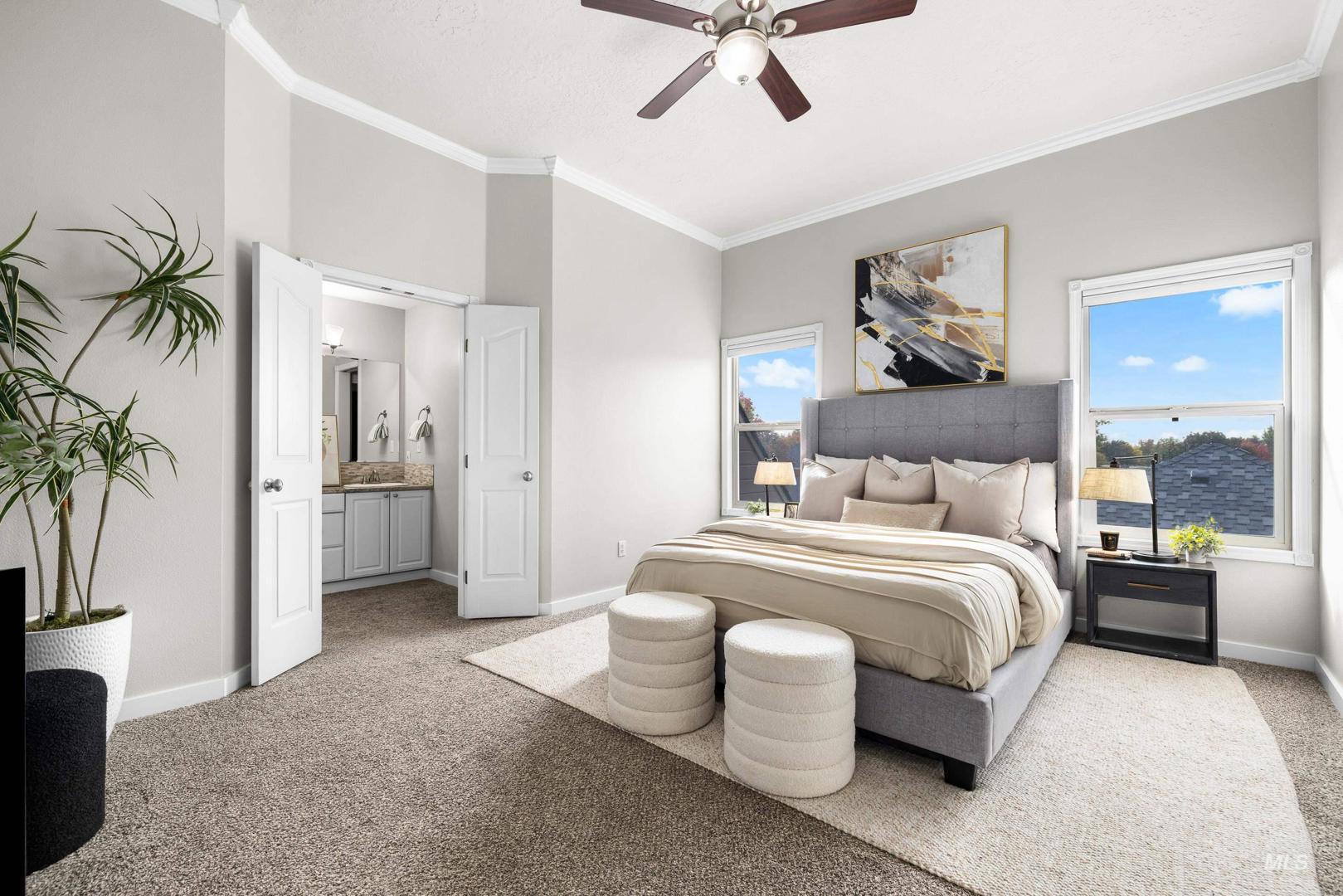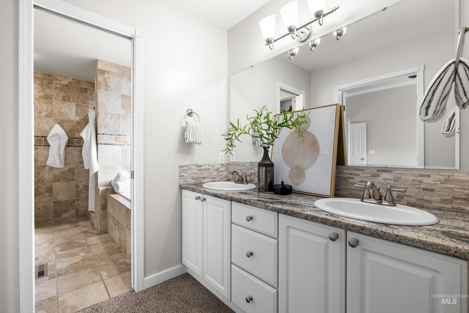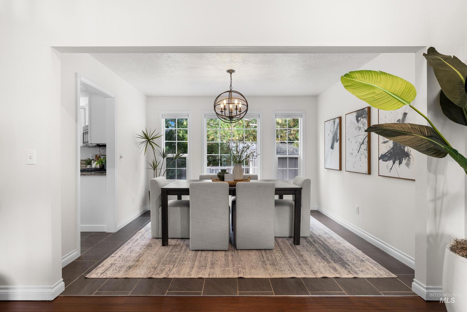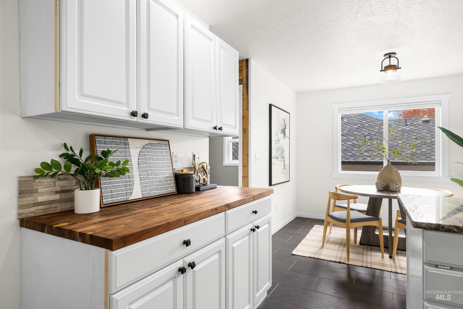 Fresh front landscaping enhances the curb appeal of this thoughtfully updated home, ideally situated near Hyde Park, hiking trails, Boise foothills and a growing mix of trendy restaurants. Step inside to soaring ceilings and an airy great room bathed in natural light, where a stunning floor-to-ceiling brick fireplace serves as the focal point—creating an elegant yet inviting atmosphere. The formal dining room flows effortlessly into a beautifully updated kitchen showcasing stainless steel appliances, a gas range, gleaming granite countertops, and a butcher block prep station designed for both function and style. An additional dining nook opens to the park-like backyard, offering the perfect setting for seamless indoor/outdoor entertaining. Double doors lead to a serene primary suite, featuring an ensuite bath with dual sinks, a separate tub and shower, and a generous walk-in closet with bonus flex space. Two additional bedrooms and a full bath complete the versatile layout. Unwind on the spacious backyard deck, ideal for seasonal gatherings, surrounded by mature landscaping that provides both privacy and shade. Recent upgrades include a brand-new AC unit (2025), Wi-Fi–enabled sprinkler control system, and main-level powder bath refresh with new sink, mirror and light fixture.