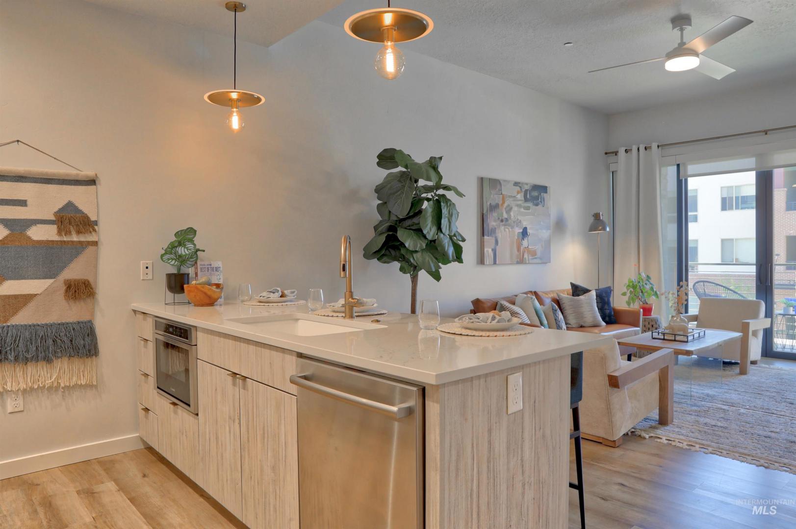 Amazing Condo in the Harris Ranch Lofts. This stylish modern unit was built in 2022 and has it All! Masterfully engineered construction with acoustics in mind and high-end features-finishes. Full Bosch appliance package makes this condo turn-key. Take in foothills & neighborhood views from your private patio. Just minutes from hiking trails, the Boise Greenbelt, Lucky Peak Reservoir and Downtown Boise & BSU. Incredible list of included features: Designated unit storage, bike storage w/cleaning station, and dog washing facility. There is a community rooftop deck with outdoor BBQ & lounge area perfect for parties & entertaining while enjoying panoramic views. Social gathering room offers billiards, big-screen TV & Kitchen. The resort-style community pool is just steps away. HOA dues include water, sewer, trash, all community amenities, snow removal, window washing, landscaping & EV charging. BTVA.