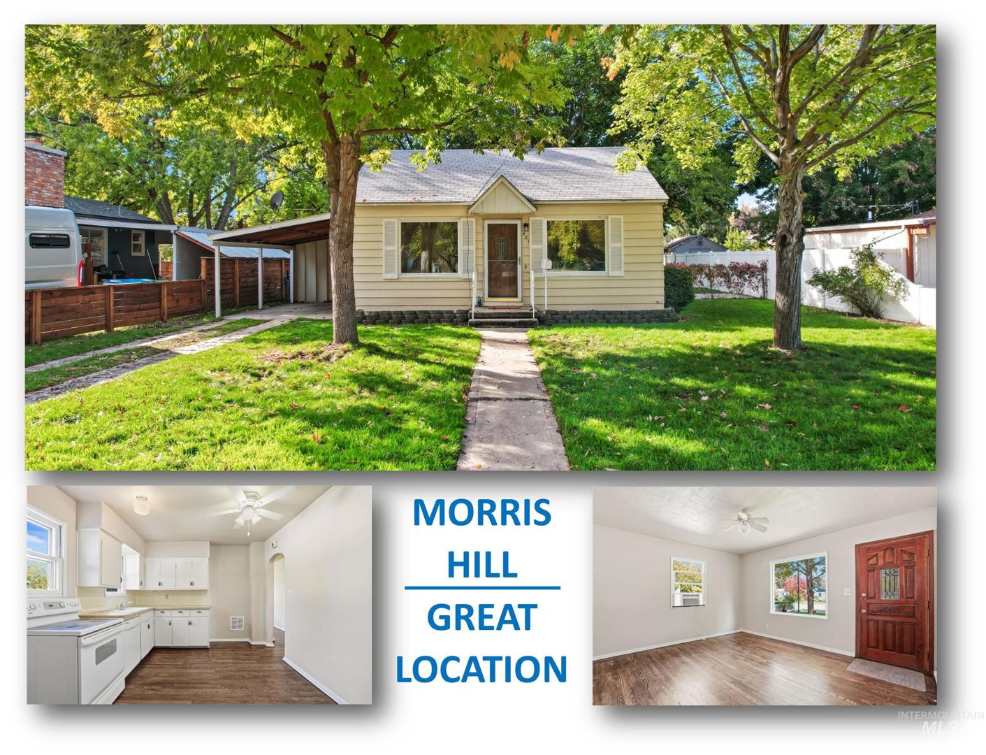 Phenomenal Morris Hill Bench Location! Walking distance to Morris Hill Park & less than 1 mile to Ann Morrison & Kathryn Albertson Parks. 2.4 miles to Boise State University & approx. 2 Miles to Downtown! Also close to shopping, hospitals, schools, freeway, bus routes, bike paths, Zoo, Garden City Water Park, etc. Charming 2 bed/1 bath 1950`s home with beautiful & professionally refinished hardwood Oak flooring throughout! Light & bright primary & 14x12 living room. Home also features, ceiling fans, two toned paint, panoramic windows in the front of the home, crystal doorknobs, newer water heater, built-in hall storage & utility room w/shelving & doggy door w/built in privacy window w/access to back patio. Bathroom features wainscoting, newer vanity & flooring, medicine cabinet, shower/tub combo w/newer privacy glass window. Gorgeous mature tree lined street. Spacious lot with no immediate back neighbors, room to garden, RV potential, 20x12 Carport, lots of parking, sidewalks, storage shed, fully fenced, outdoor firepit & majestic trees! Washer & Dryer included & new ductless mini split being installed. No HOA. See Tour!
