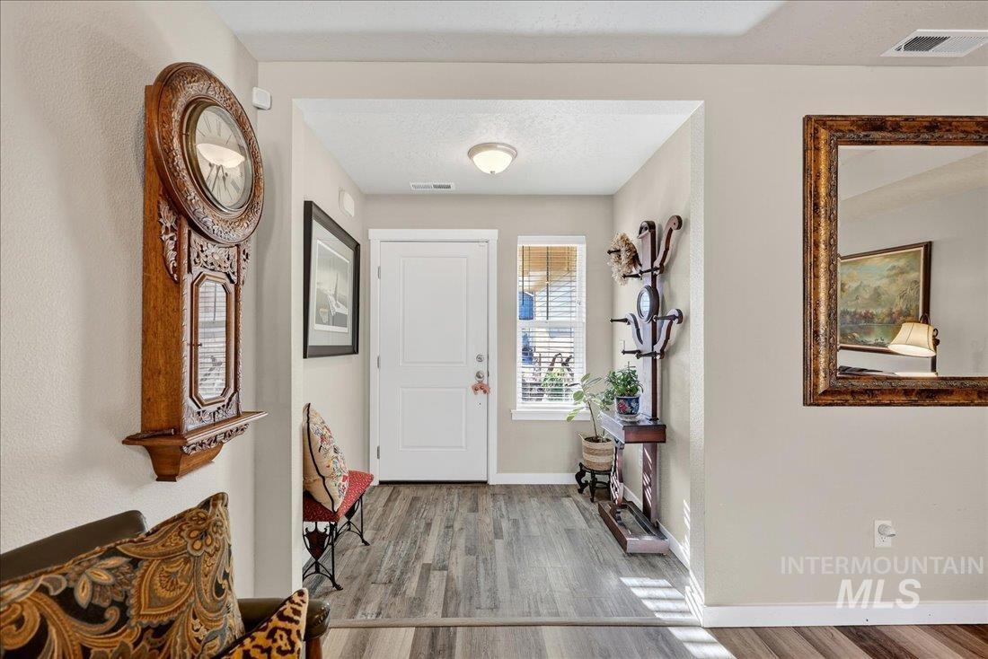 Discover this remarkable home featuring a three-car garage and a split bedroom layout, ideally situated on a spacious corner lot at the entrance of a cul-de-sac. This thoughtfully designed residence includes three generously sized bedrooms and two bathrooms. The open concept living room and kitchen create a welcoming atmosphere perfect for entertaining or culinary adventures. The kitchen is equipped with granite countertops, a spacious island, upgraded cabinets, and stainless-steel appliances, including a gas range. Additional highlights encompass a tray ceiling in the great room, luxury vinyl plank flooring, windowsills and skirting throughout, two-tone paint, and more. Don`t miss the expansive backyard, which offers ample space for a play area, garden, parking for your boat or trailer, or all three. This home is HERS and Energy Star rated, ensuring excellent energy efficiency. Experience the best of both worlds with serene country living and city conveniences at your fingertips. Leave the daily hustle and unwind in the tranquil community of Greendale Grove in beautiful Star, Idaho. Relish the charm of small-town living while being just minutes from Eagle and Meridian. Whether you enjoy cycling, peaceful strolls, or golfing at the nearby River Birch Golf Course— this home and community will cater to your lifestyle.