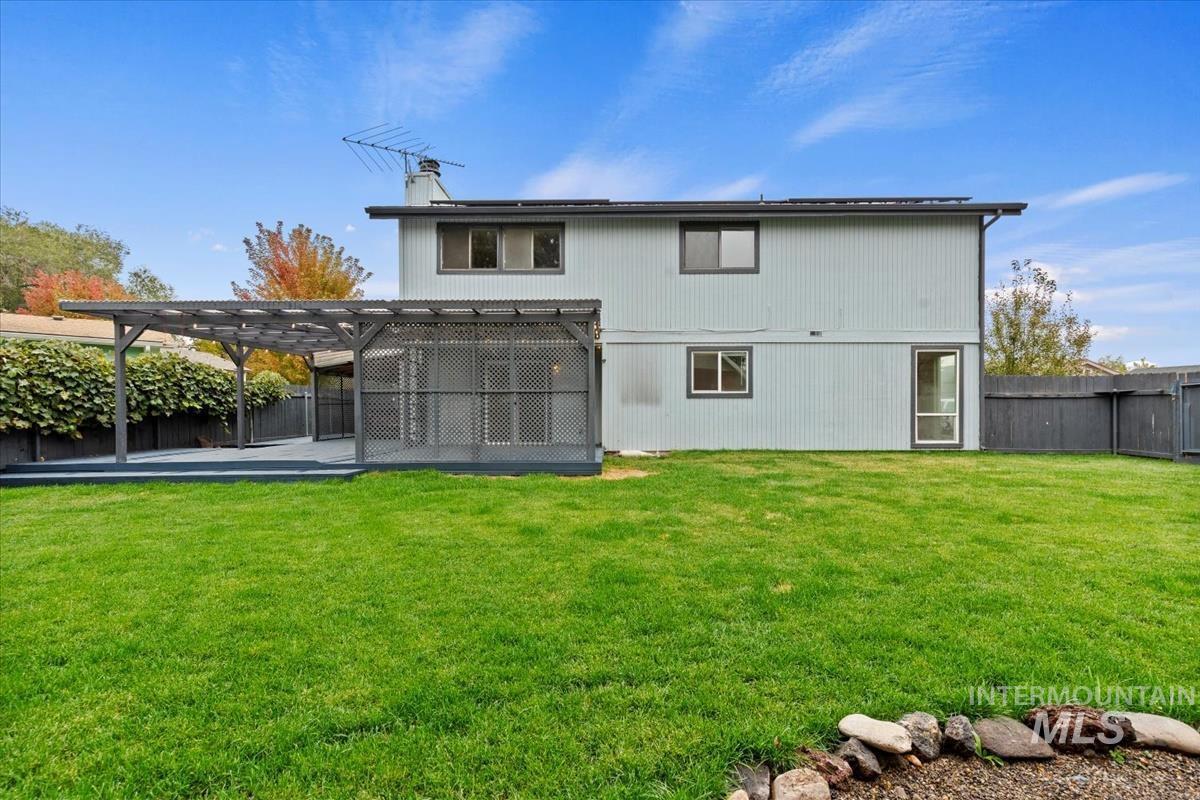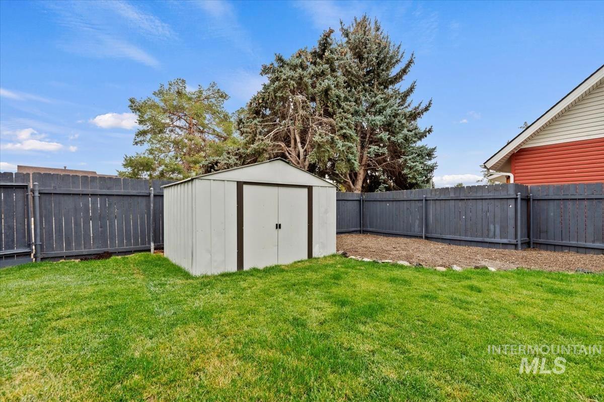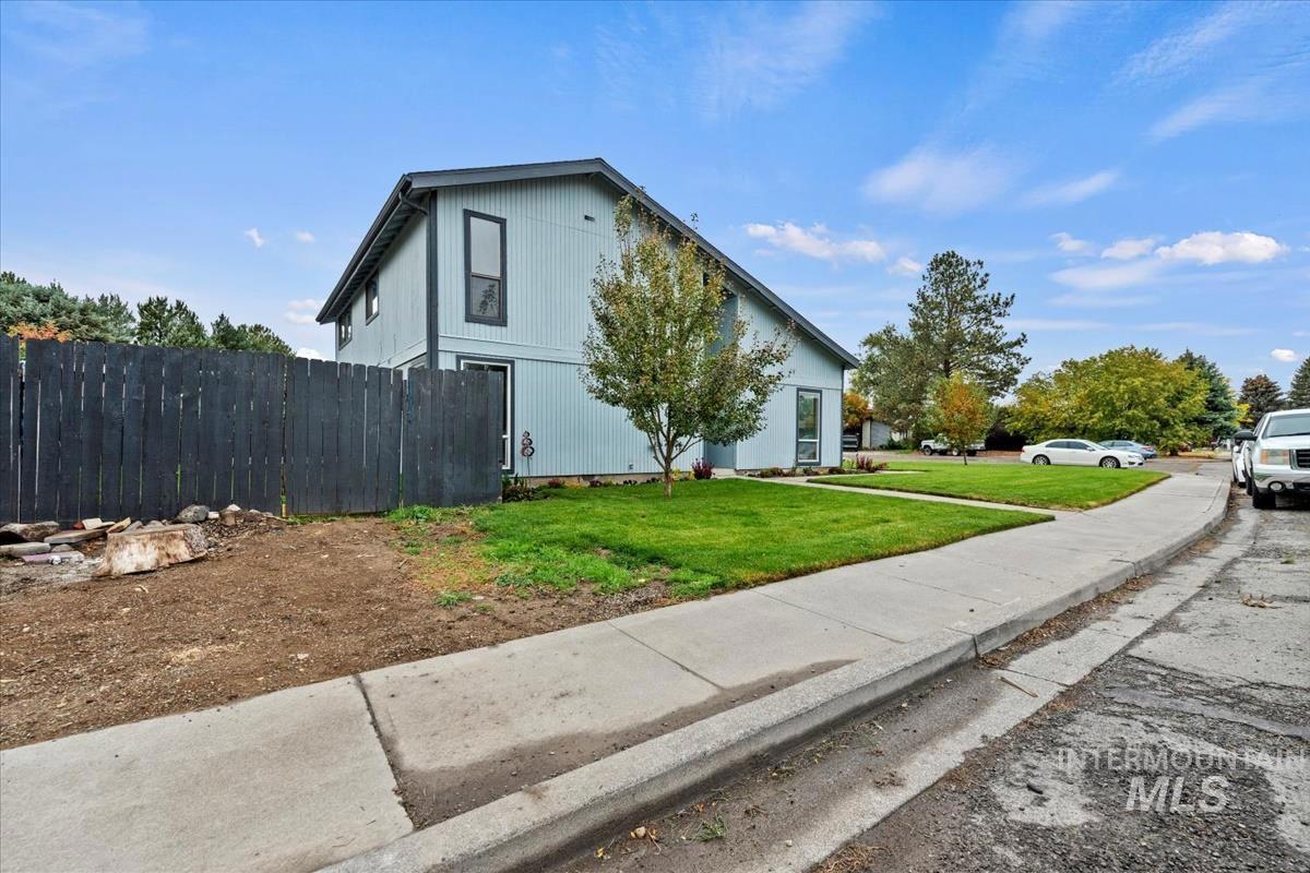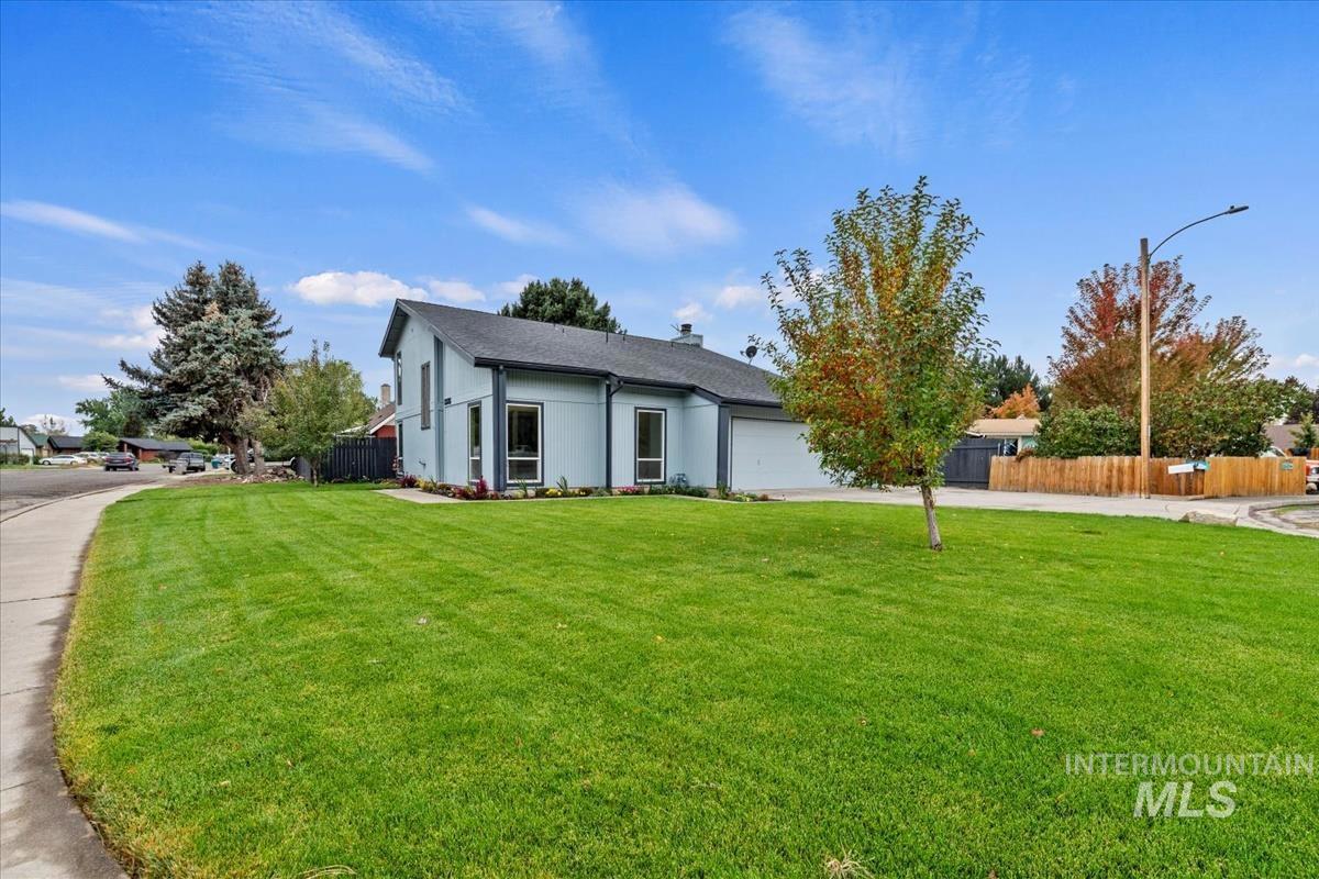 Welcome to this exceptional home, perfectly situated on a spacious corner lot with access from a quiet cul-de-sac! Conveniently located near all amenities and just minutes from Mountain Home Air Force Base, this property offers easy commutes — only 38 minutes to the Boise Airport and 35 minutes to Micron. Enjoy peace of mind with a newer roof (approx. 2022) and a brand-new solar system, providing super low power bills for years to come! The home sits on a beautifully landscaped, fully sodded lot and includes RV parking, no HOA, and a unique high-ceiling garage—ideal for adding a loft or extra storage. Inside, the versatile layout features multiple living areas, including a cozy family room with a wood-burning fireplace that opens to the kitchen, and a welcoming living room with vaulted ceilings just off the entry. A flexible corner office can easily serve as a dining room, craft room, or playroom. Step outside to your private backyard oasis, complete with an expansive covered deck, nearly new hot tub, and immaculate lawn—perfect for entertaining or relaxing year-round.