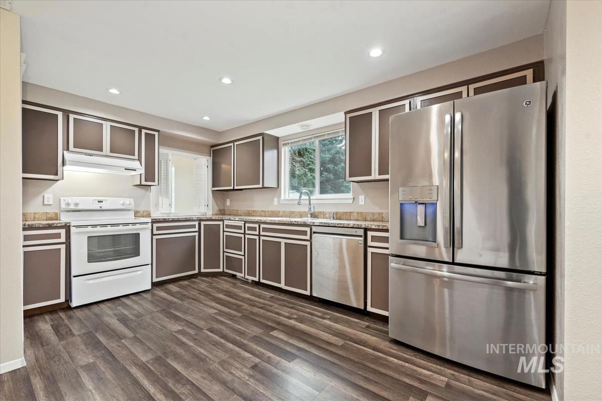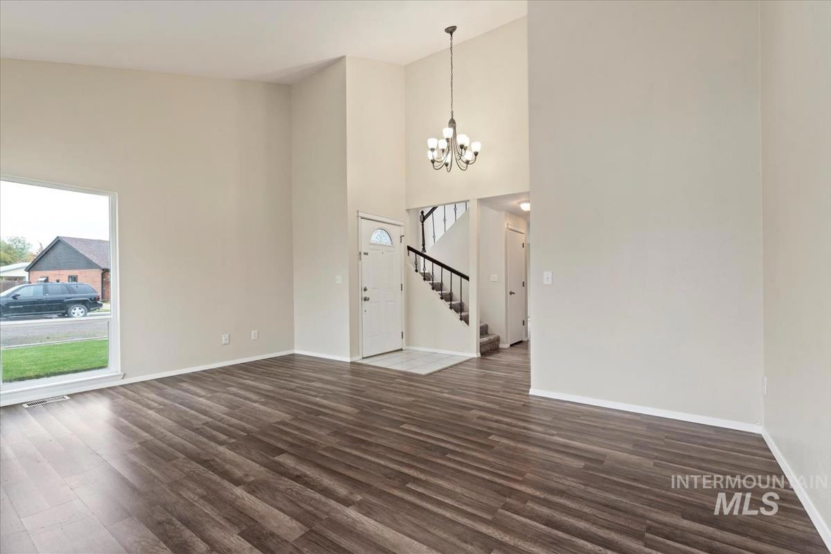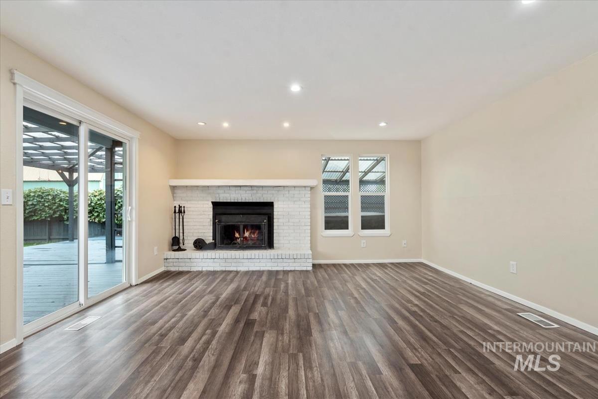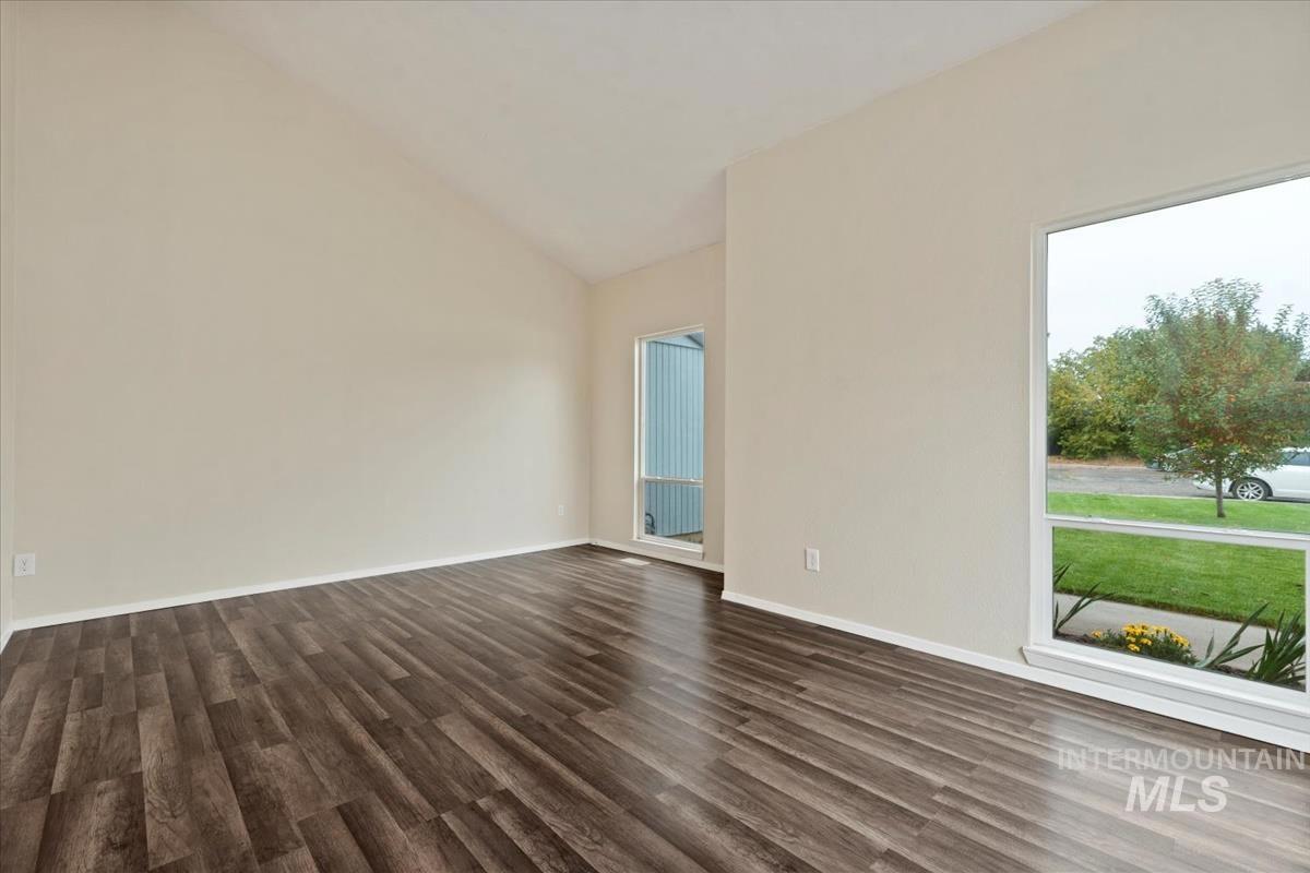 Welcome to this exceptional home, perfectly situated on a spacious corner lot with access from a quiet cul-de-sac! Conveniently located near all amenities and just minutes from Mountain Home Air Force Base, this property offers easy commutes — only 38 minutes to the Boise Airport and 35 minutes to Micron. Enjoy peace of mind with a newer roof (approx. 2022) and a brand-new solar system, providing super low power bills for years to come! The home sits on a beautifully landscaped, fully sodded lot and includes RV parking, no HOA, and a unique high-ceiling garage—ideal for adding a loft or extra storage. Inside, the versatile layout features multiple living areas, including a cozy family room with a wood-burning fireplace that opens to the kitchen, and a welcoming living room with vaulted ceilings just off the entry. A flexible corner office can easily serve as a dining room, craft room, or playroom. Step outside to your private backyard oasis, complete with an expansive covered deck, nearly new hot tub, and immaculate lawn—perfect for entertaining or relaxing year-round.