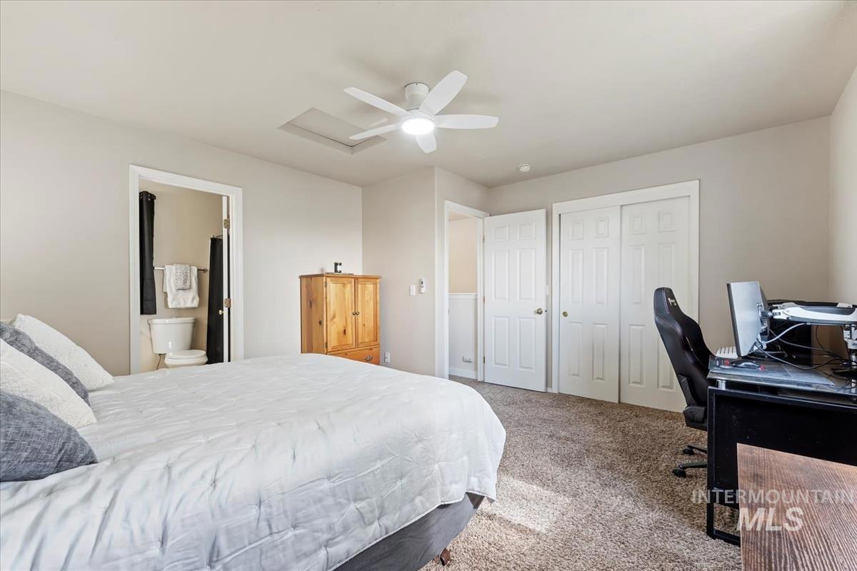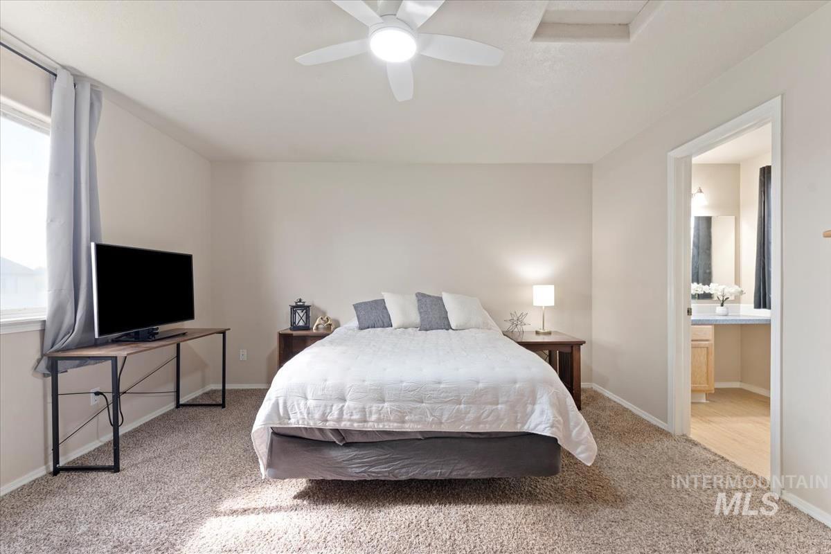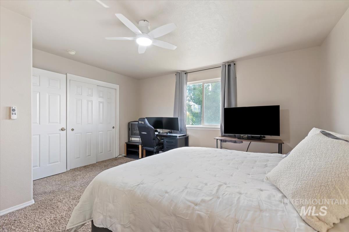 Welcome home to Royal Meadows! This charming home is perfectly located within easy walking distance to Osborne Park and nestled in a highly convenient neighborhood with miles of walking paths. Ideally positioned between Ronald Reagan Elementary and East Valley Middle School, this location offers everyday convenience for families and commuters alike—just an 11-minute drive to the hospital, I-84, shopping, and more! Sitting on an extra-large .28-acre lot, this property features mature shade trees, freshly planted grass, and ample space for RV parking or outdoor activities. Inside, you’ll find a smart, versatile layout with two bedrooms and a full bath on the main level, plus a spacious private master suite oasis upstairs—your perfect retreat. Additional highlights include a newer A/C unit (approx. 2022) and a bright, welcoming feel throughout. Come experience all that Royal Meadows and this beautiful home have to offer!
