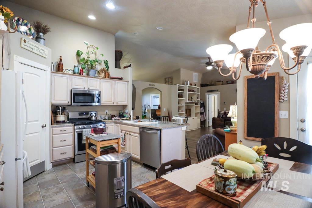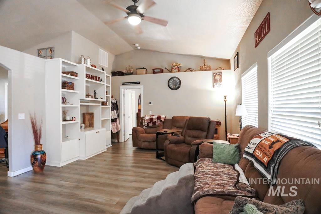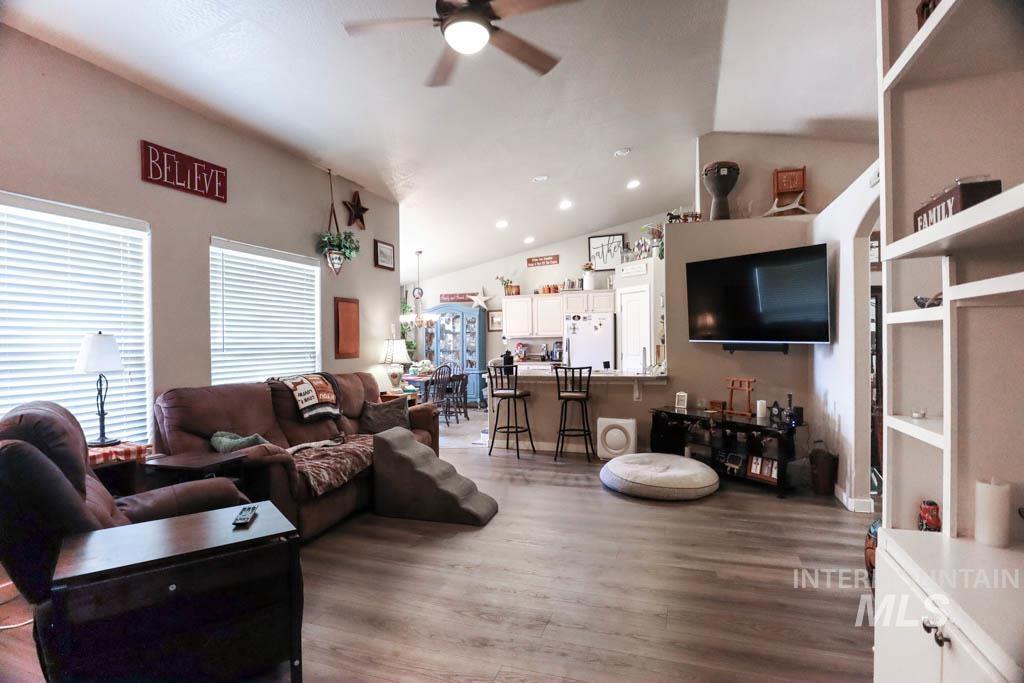 Step inside this wonderfully kept up home! When you approach the front door you`ll hear the soothing sounds of the cutest water feature and notice the cute curb appeal as well a great corner lot with a double gate for easy RV parking and road access. Inside you`ll notice quality LVP flooring, an open floor plan, and vaulted ceilings! The kitchen faces the main living area so entertainment is easy and seamless. There is easy access to the covered back patio for summer breezes and fresh air. The home has split bedrooms and each is a good size. The master bedroom has a walk in closet and feels cozy and efficient. The kitchen has stainless appliances, a pantry, and plenty of space for a table and chairs. There is a large bonus room off of the garage that can be used as a man cave, office, workout room, movie room, or as an attached she shed. The yard is landscaped and has a separate garden area and a place for RV parking. This home was built by a local builder and has been maintained well. Close to I-84 access, all schools, stores, and amenities. If you`re looking for a turn key home that offers space both inside and outside as well as a great location then check this place out!